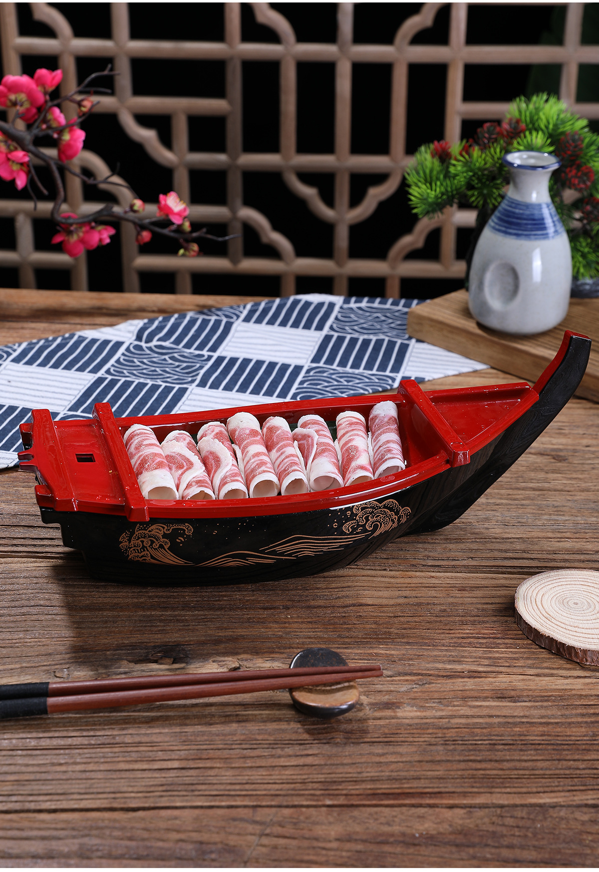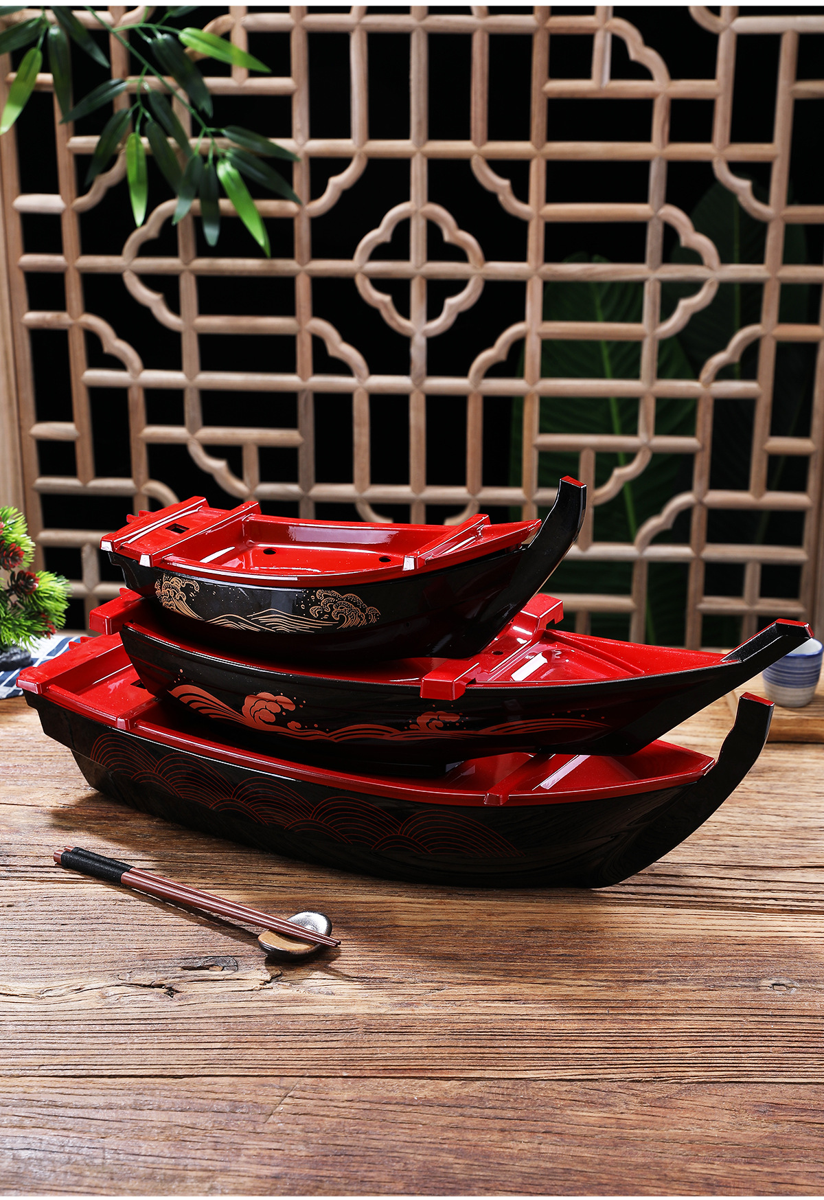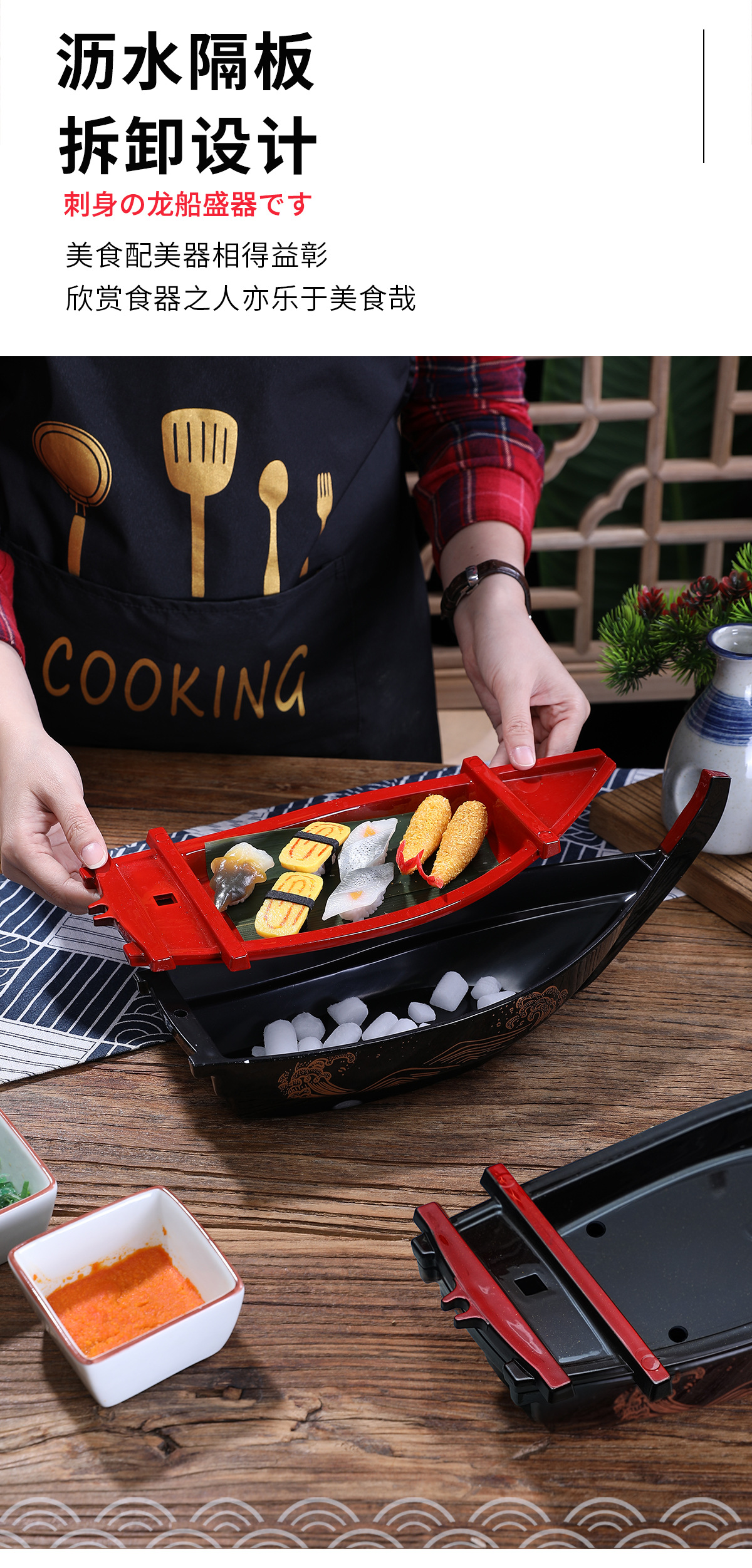 供应时尚特色日料龙舟寿司盛器 特色精致餐盘餐具