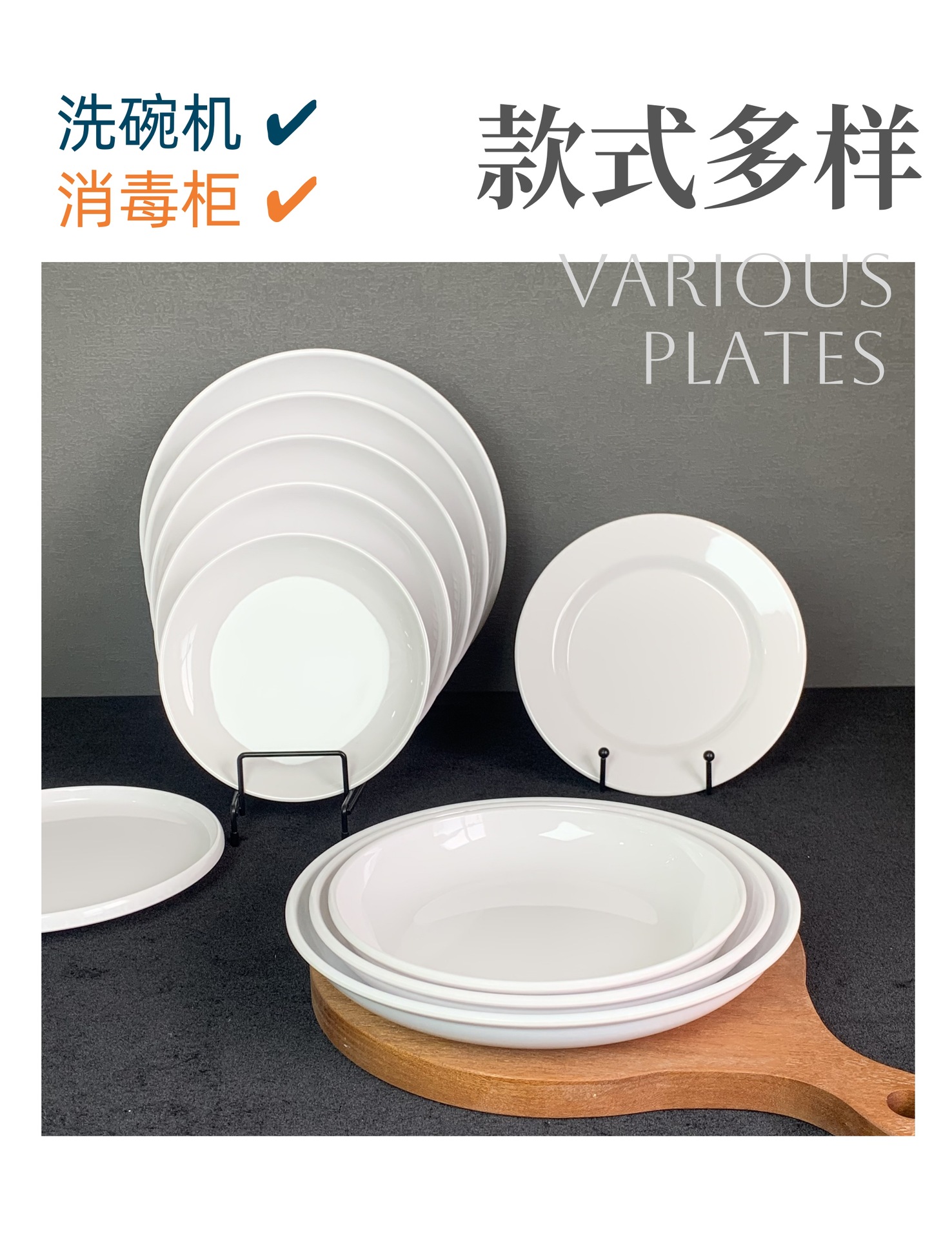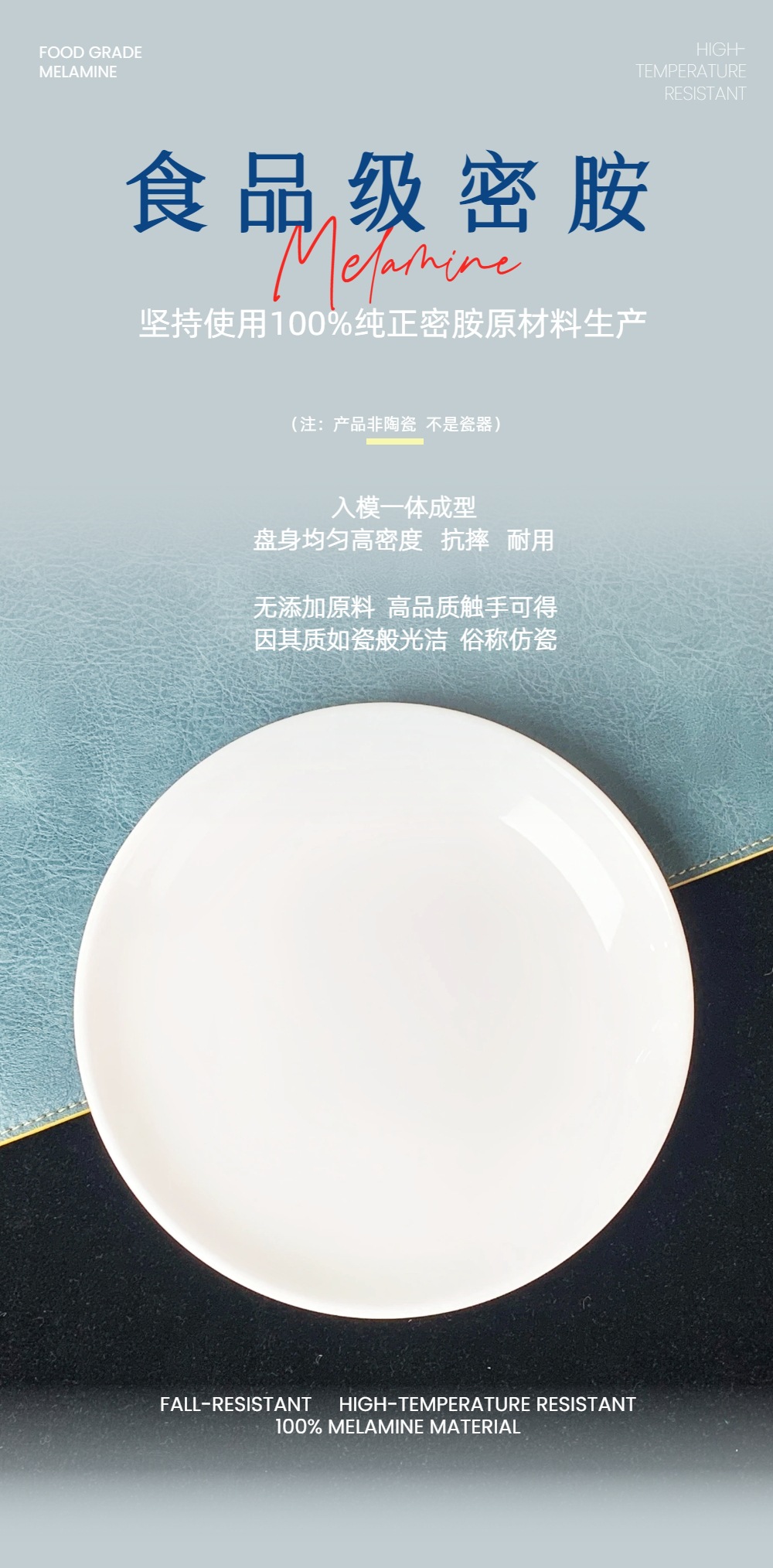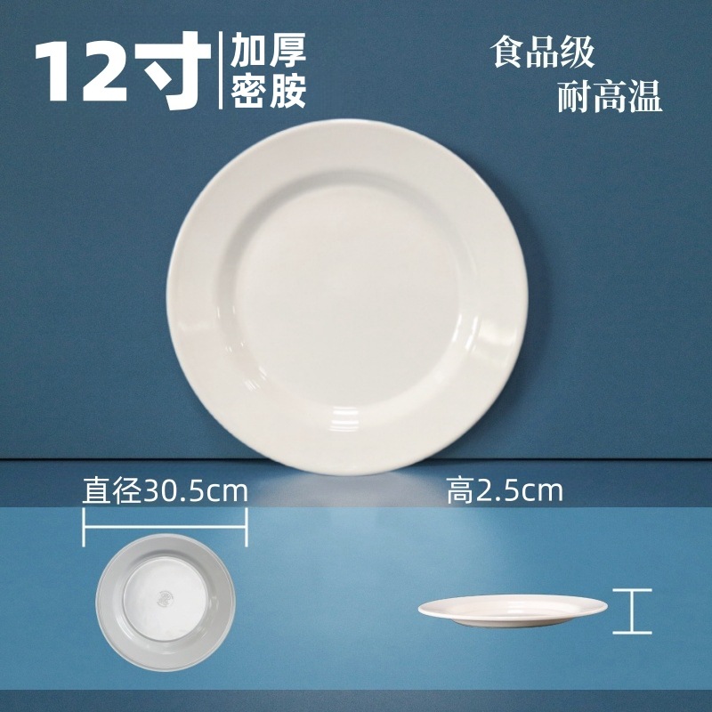 白色盘子密胺餐具圆盘平盘密胺餐盘商用快餐盘圆形西餐盘圆碟批发