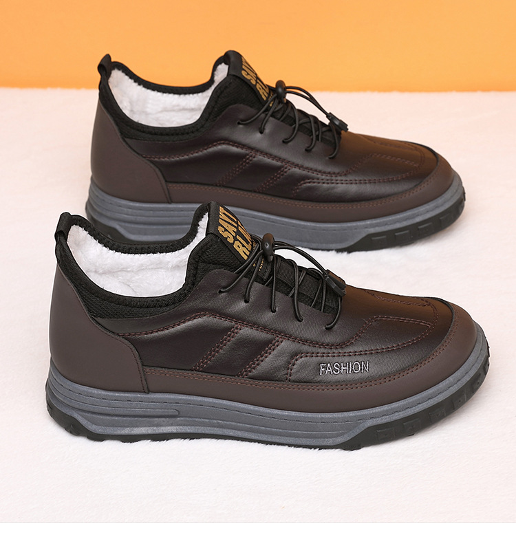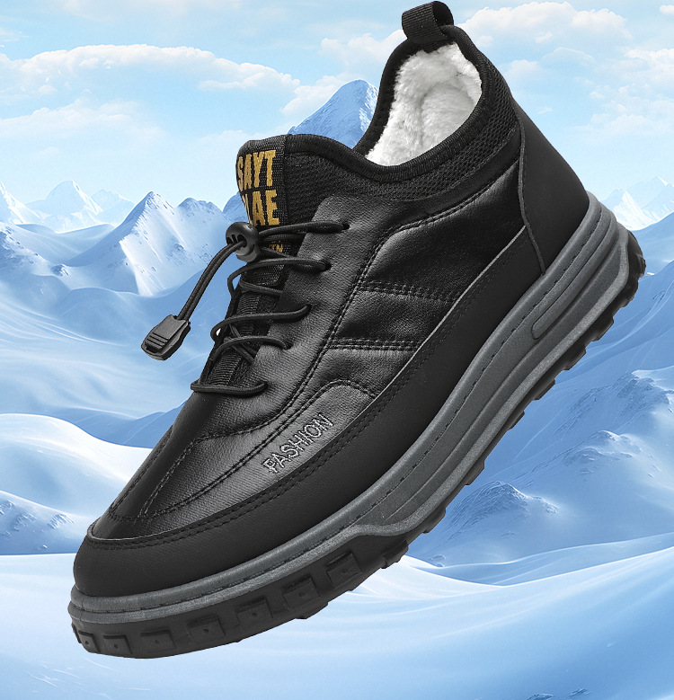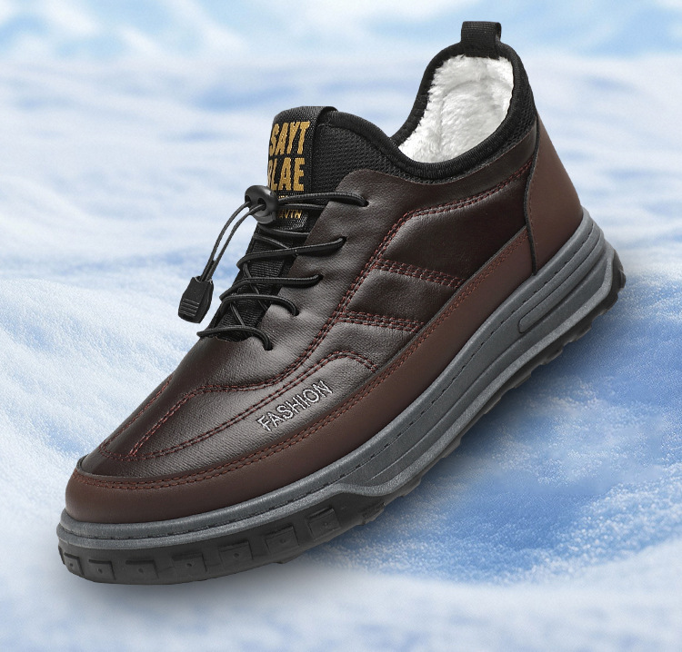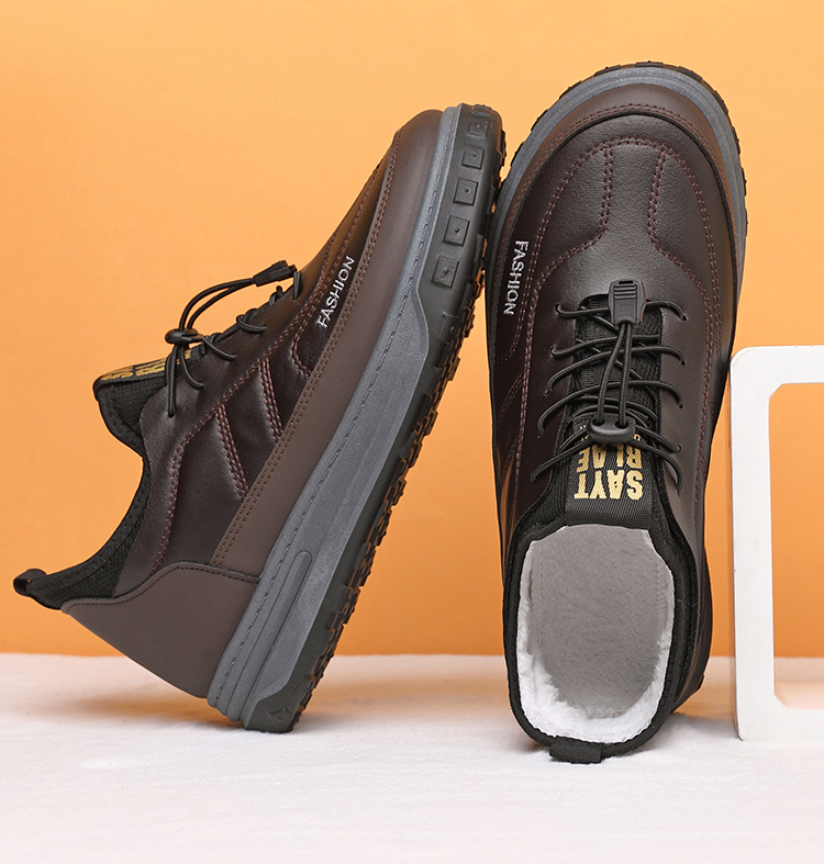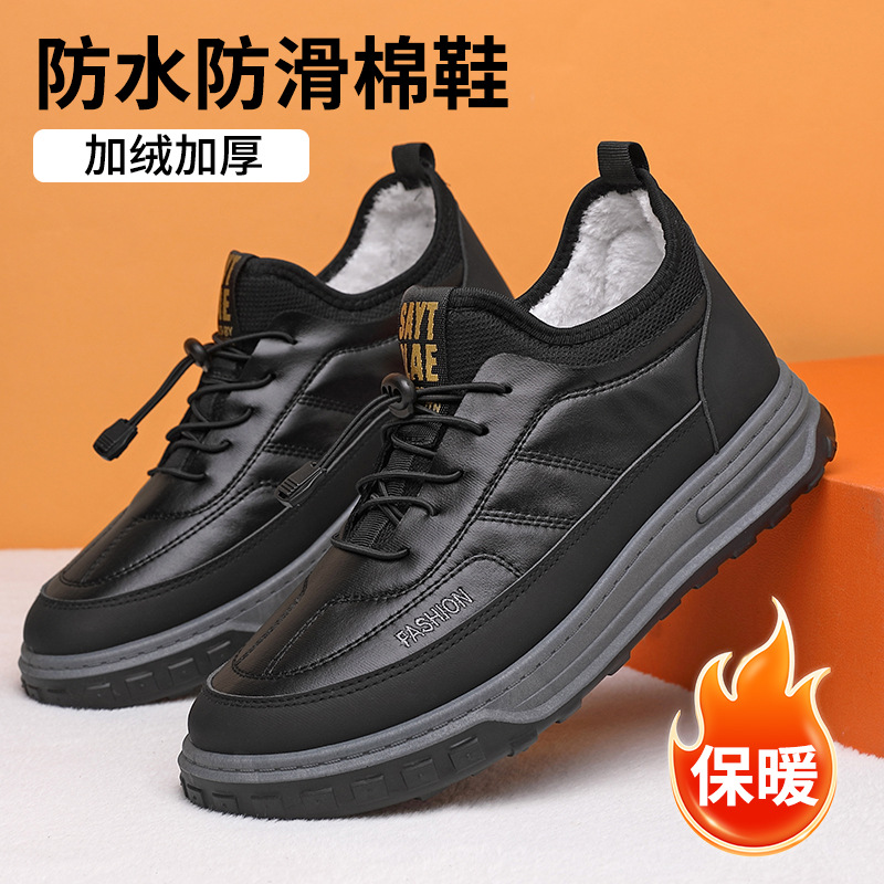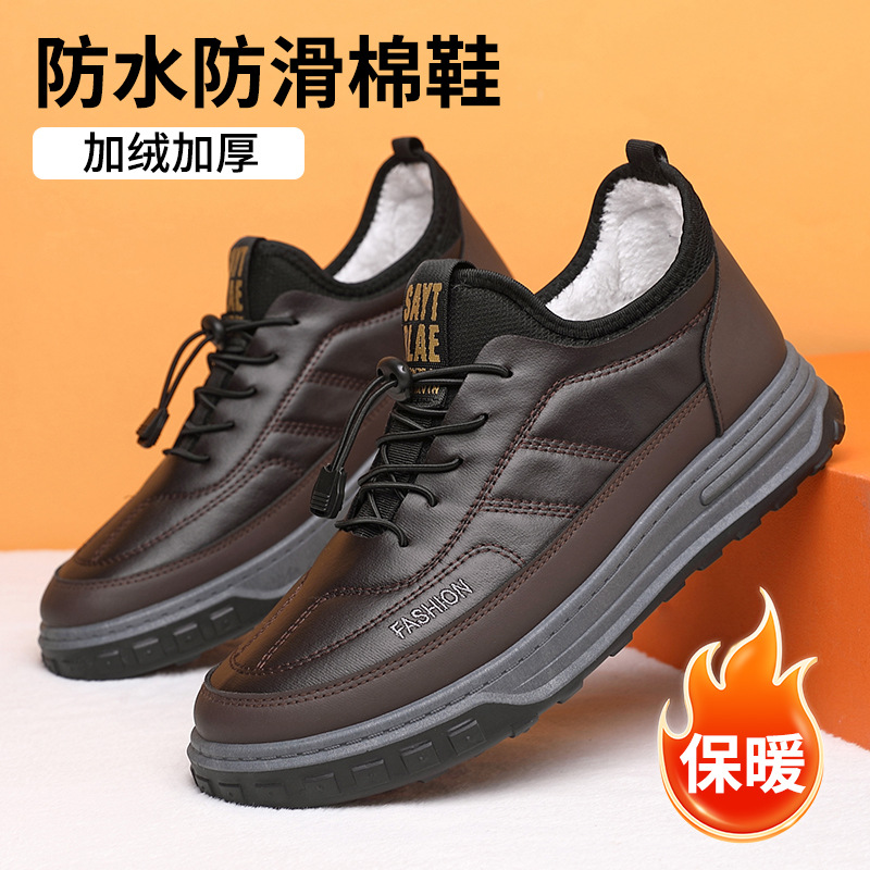 2025老北京棉鞋男款冬季加绒加厚防滑爸爸皮鞋中老年人保暖皮面鞋