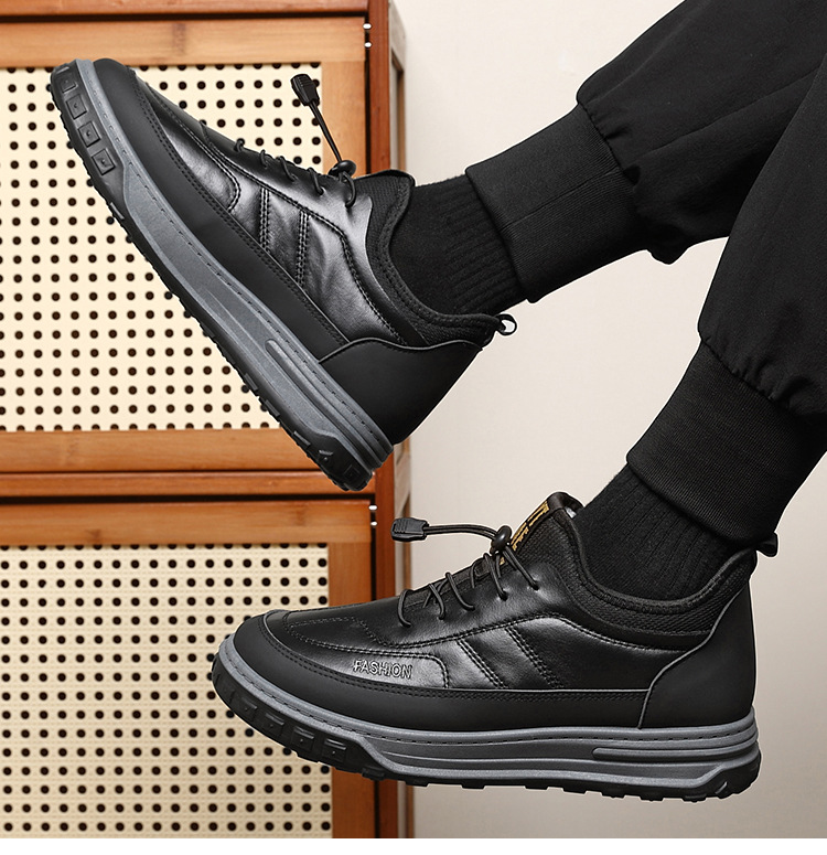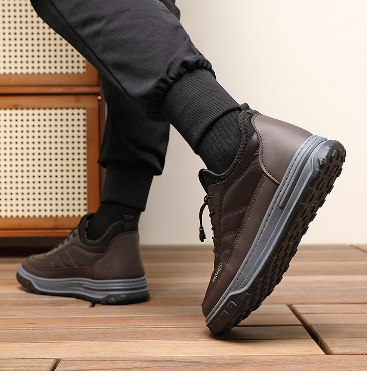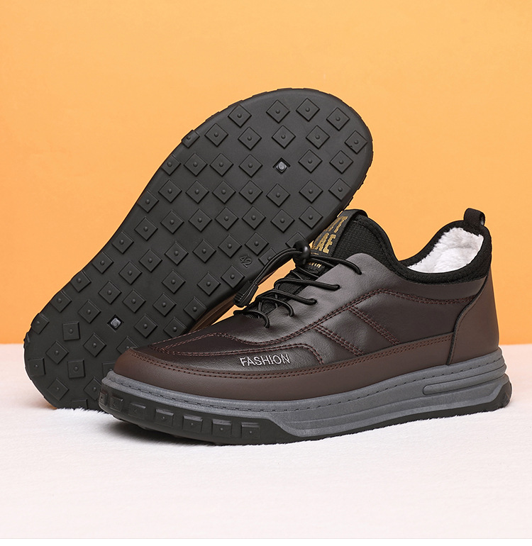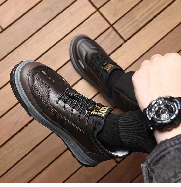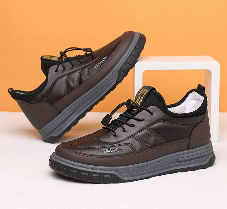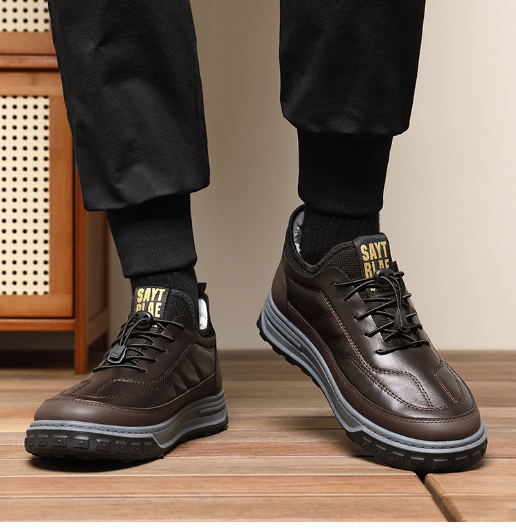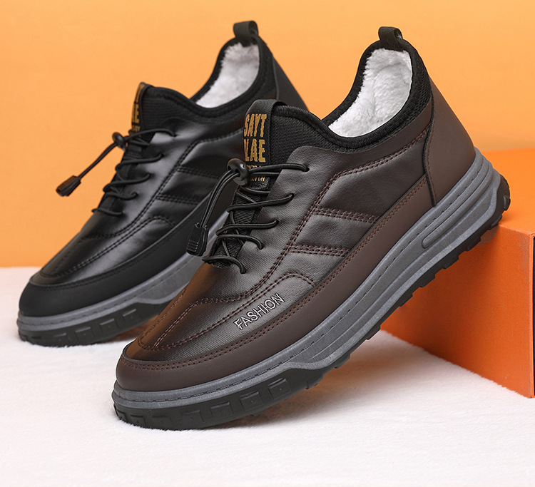 2025老北京棉鞋男款冬季加绒加厚防滑爸爸皮鞋中老年人保暖皮面鞋