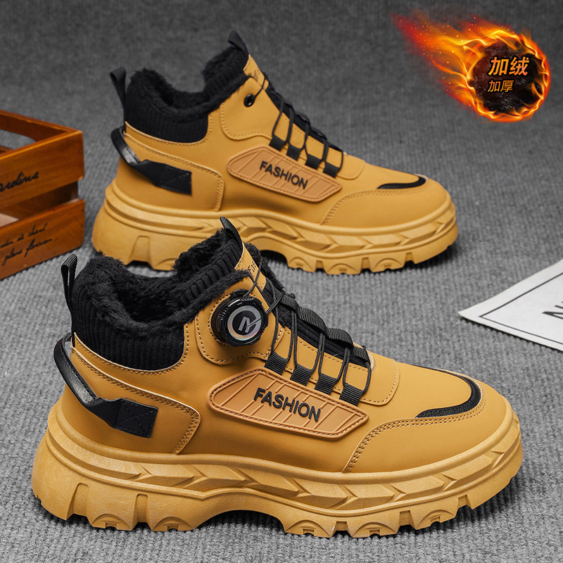 秋冬季棉鞋男鞋高帮工装鞋子男士英伦风复古马丁靴男短靴厚底防滑