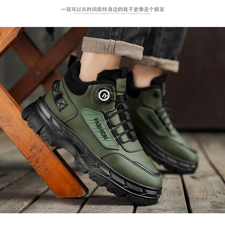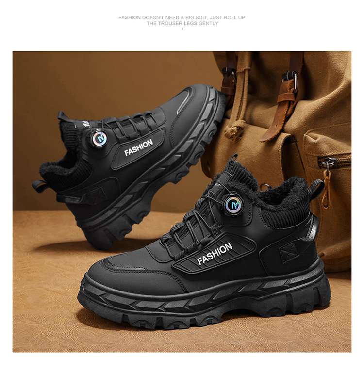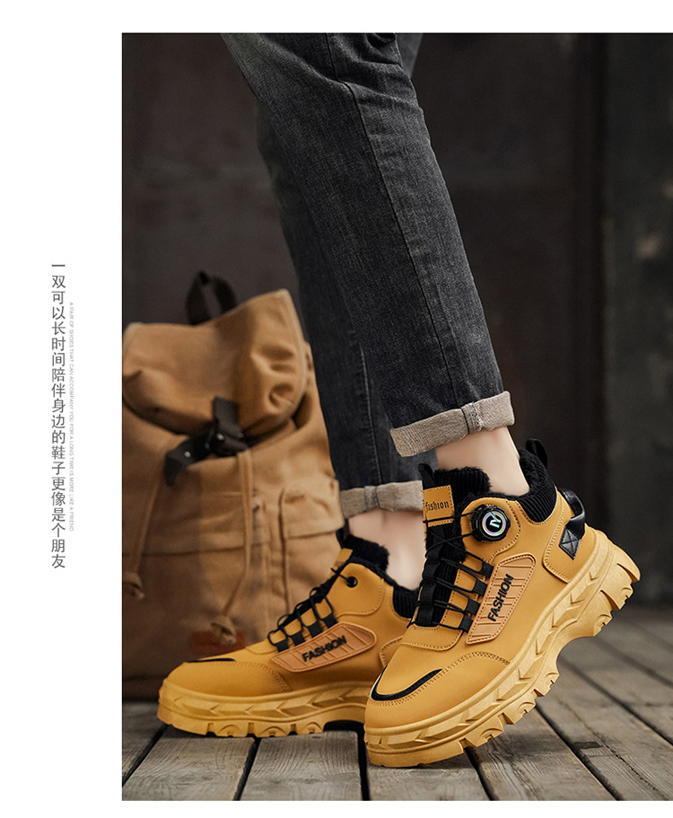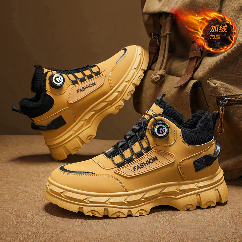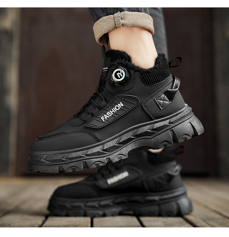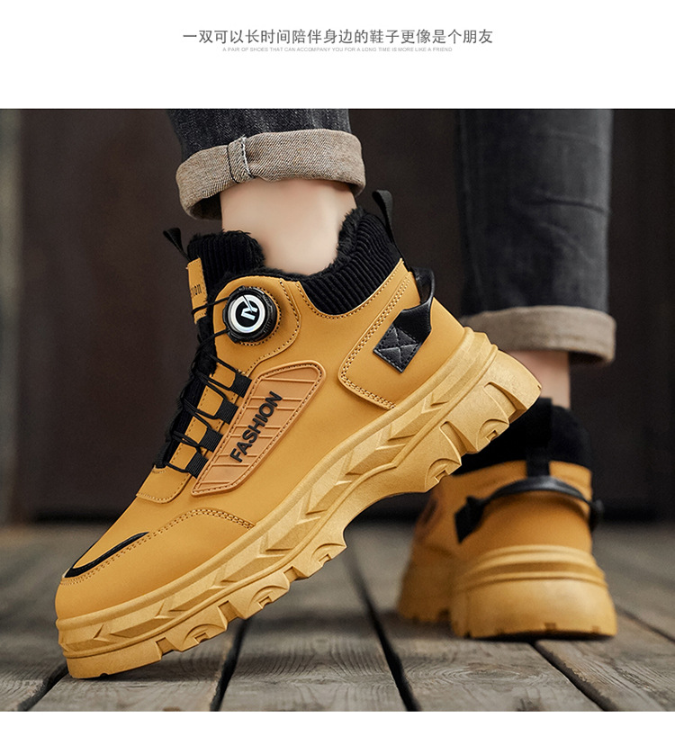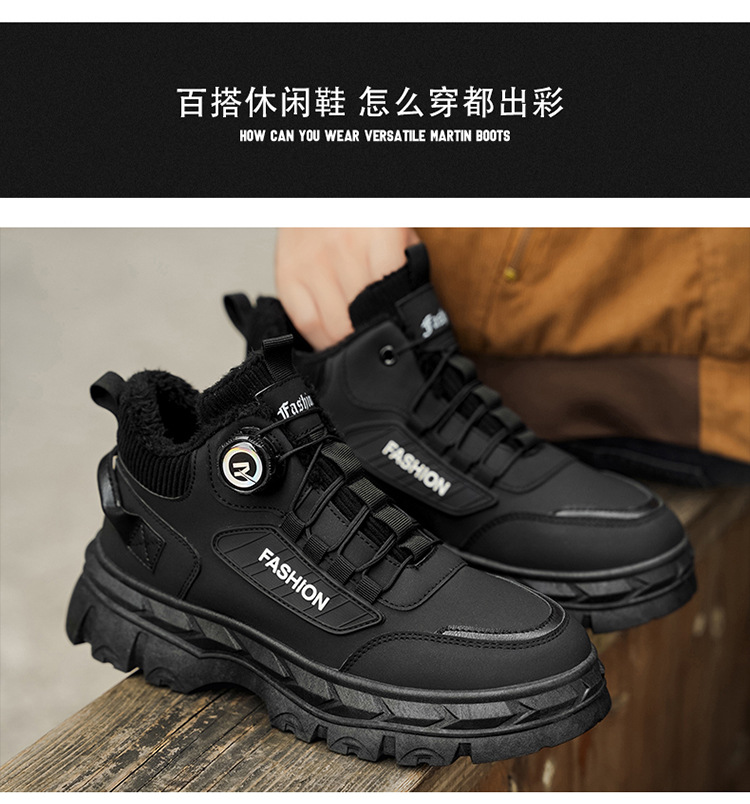 秋冬季男鞋棉鞋高帮工装鞋子男士英伦风复古短靴厚底防滑马丁靴男