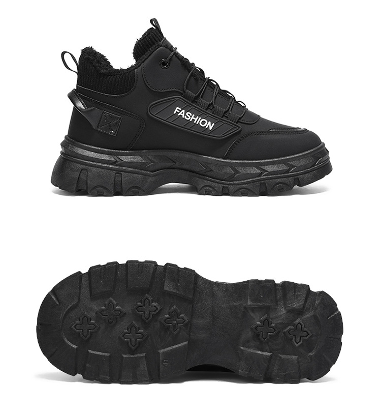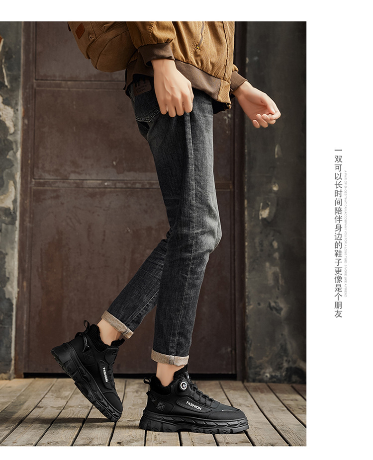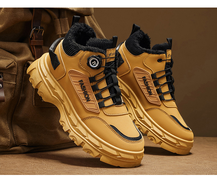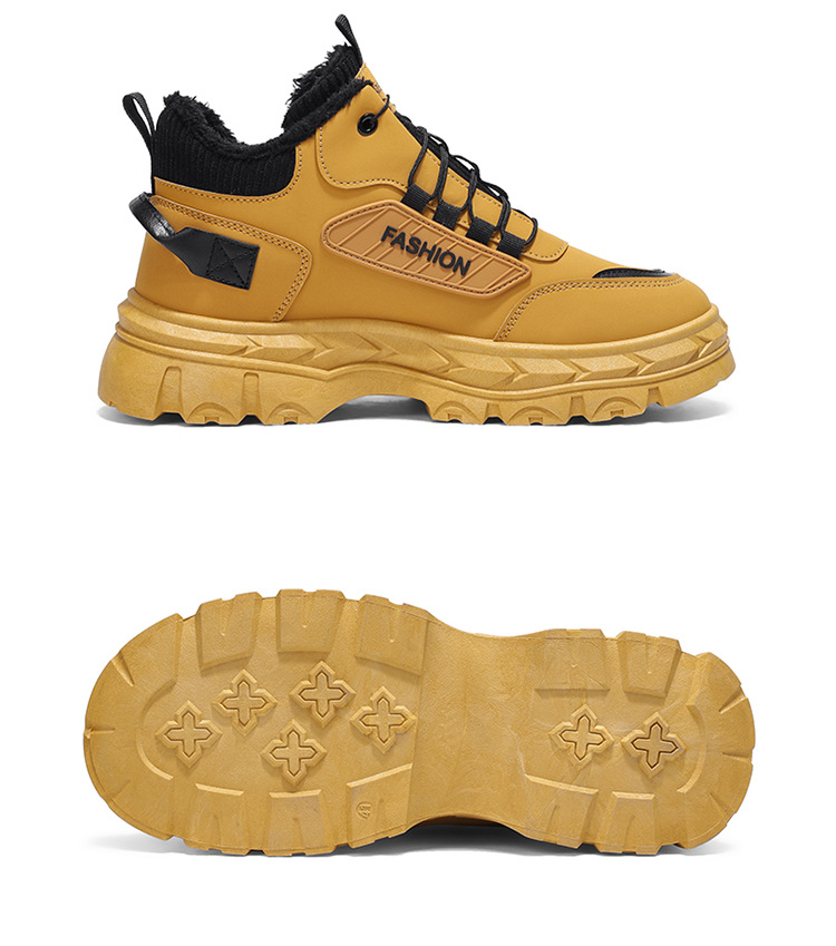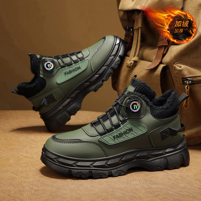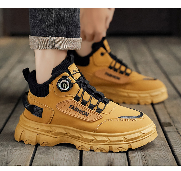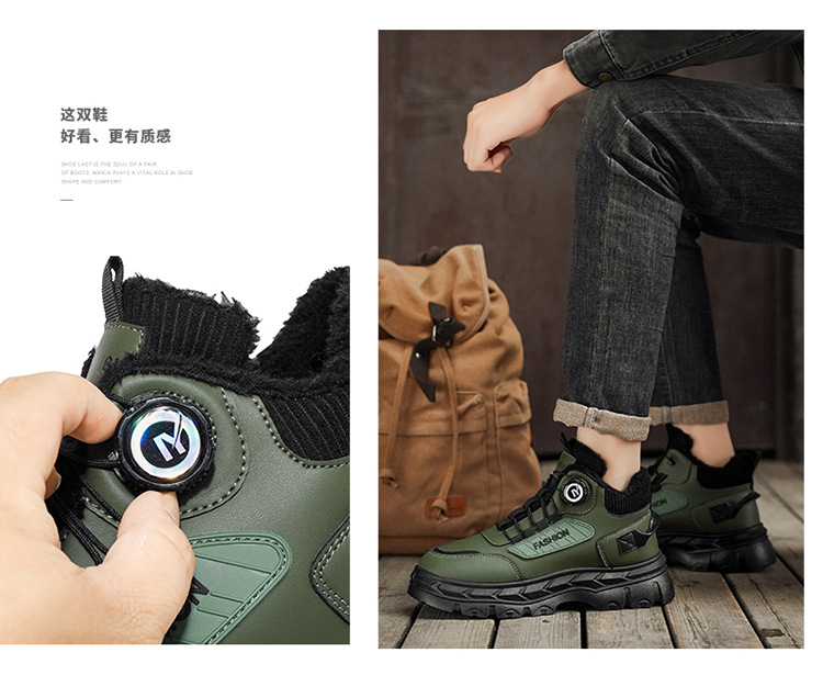 秋冬季男鞋棉鞋高帮工装鞋子男士英伦风复古短靴厚底防滑马丁靴男