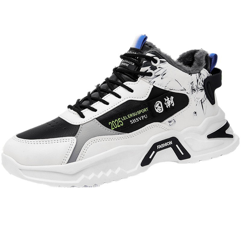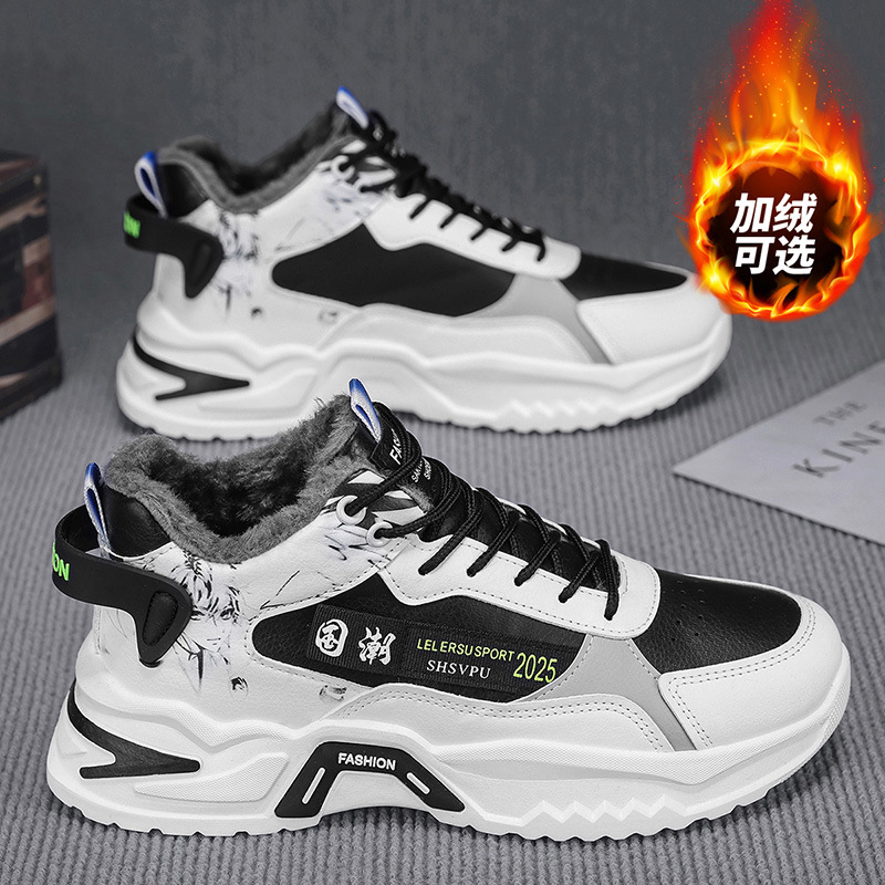 冬季2025新款韩版潮流休闲运动加绒棉鞋潮鞋高帮男鞋老爹板鞋潮鞋