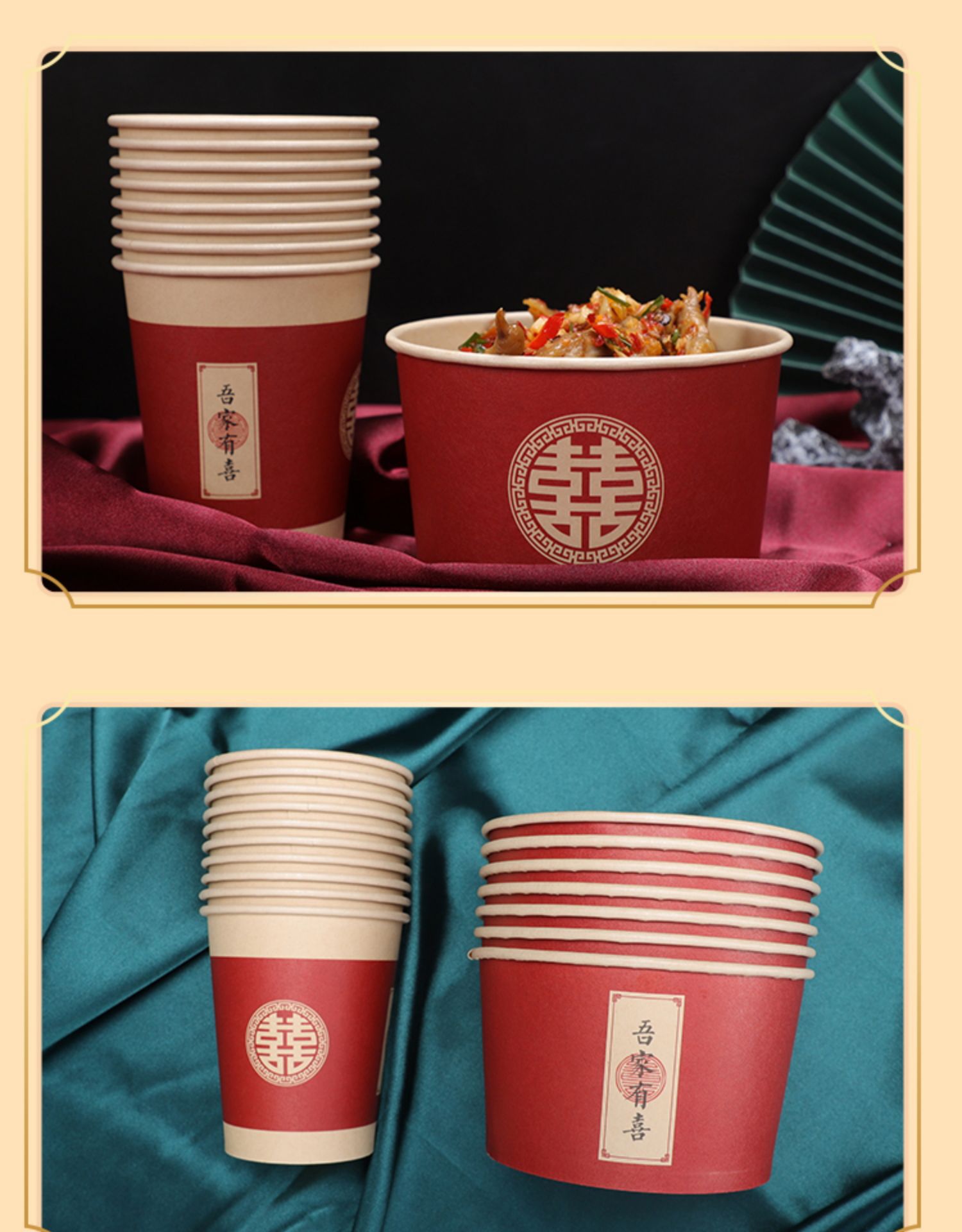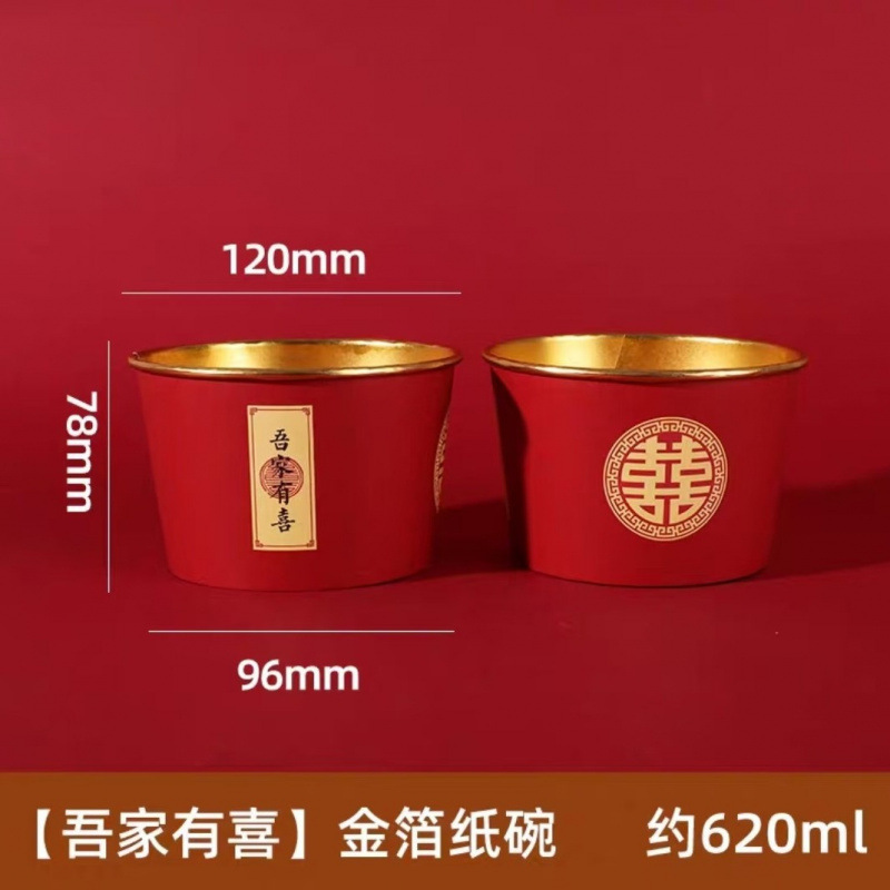 一次性碗结婚纸碗筷套装食品级餐具喜事红色喜碗婚宴婚礼加厚
