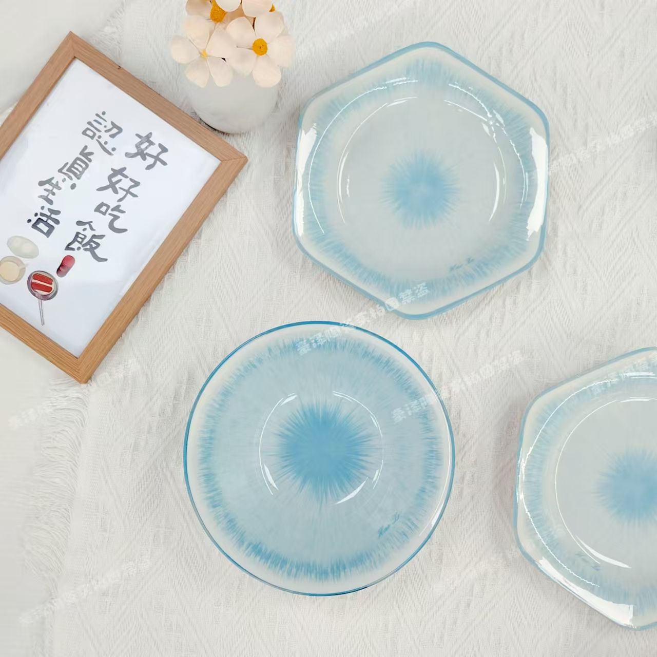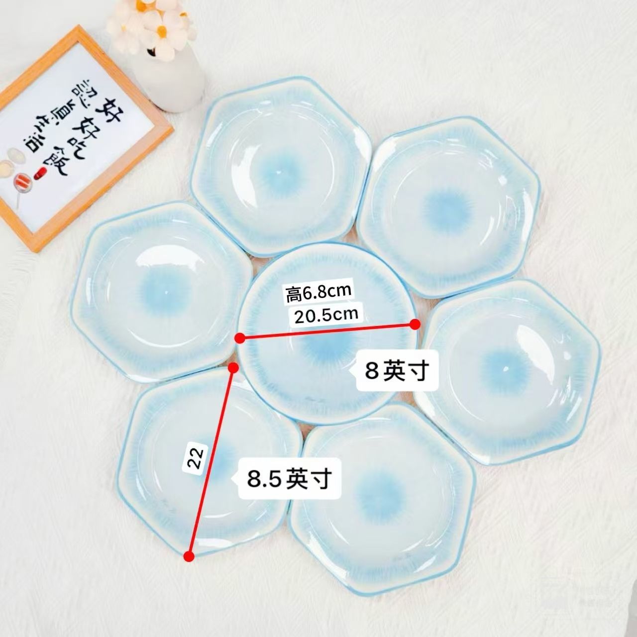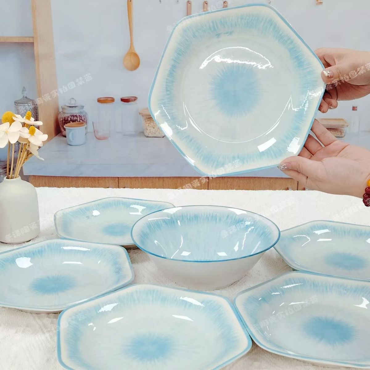 海洋恋六角套装盘子七件套餐具7件套家用陶瓷简约高颜值素雅餐具