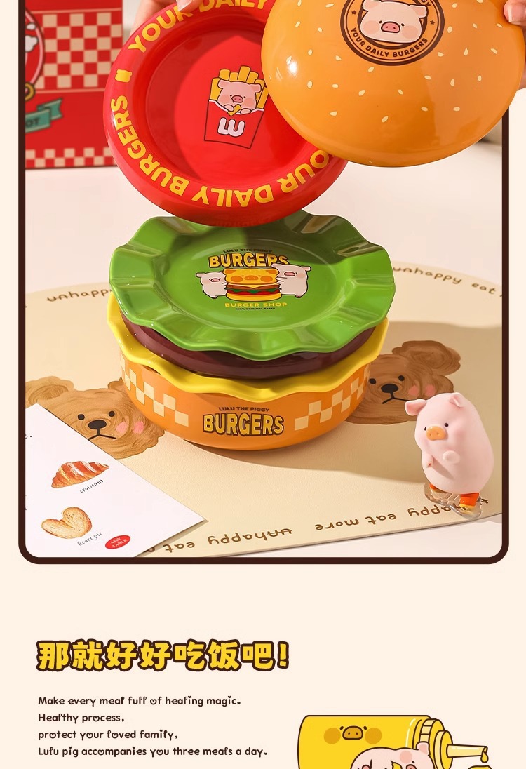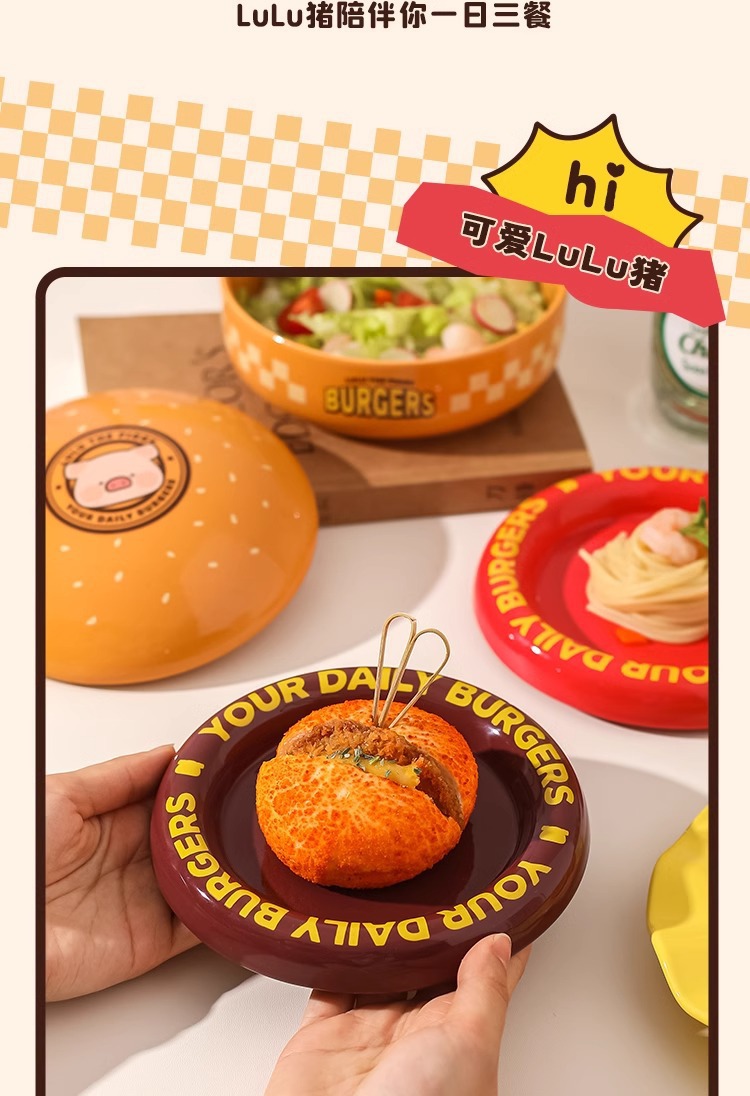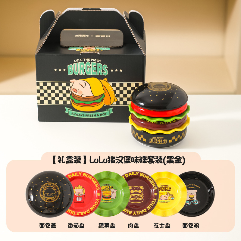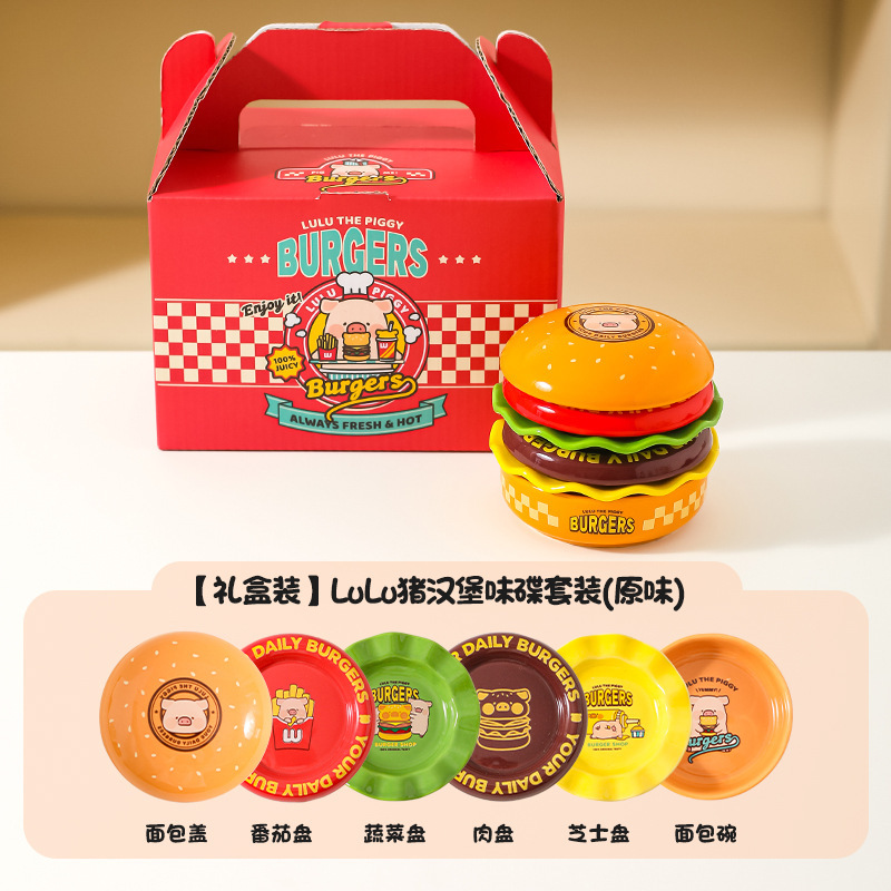 粉色lulu猪汉堡吐骨碟餐具套装家用可爱叠叠乐调料碟高颜值小盘子