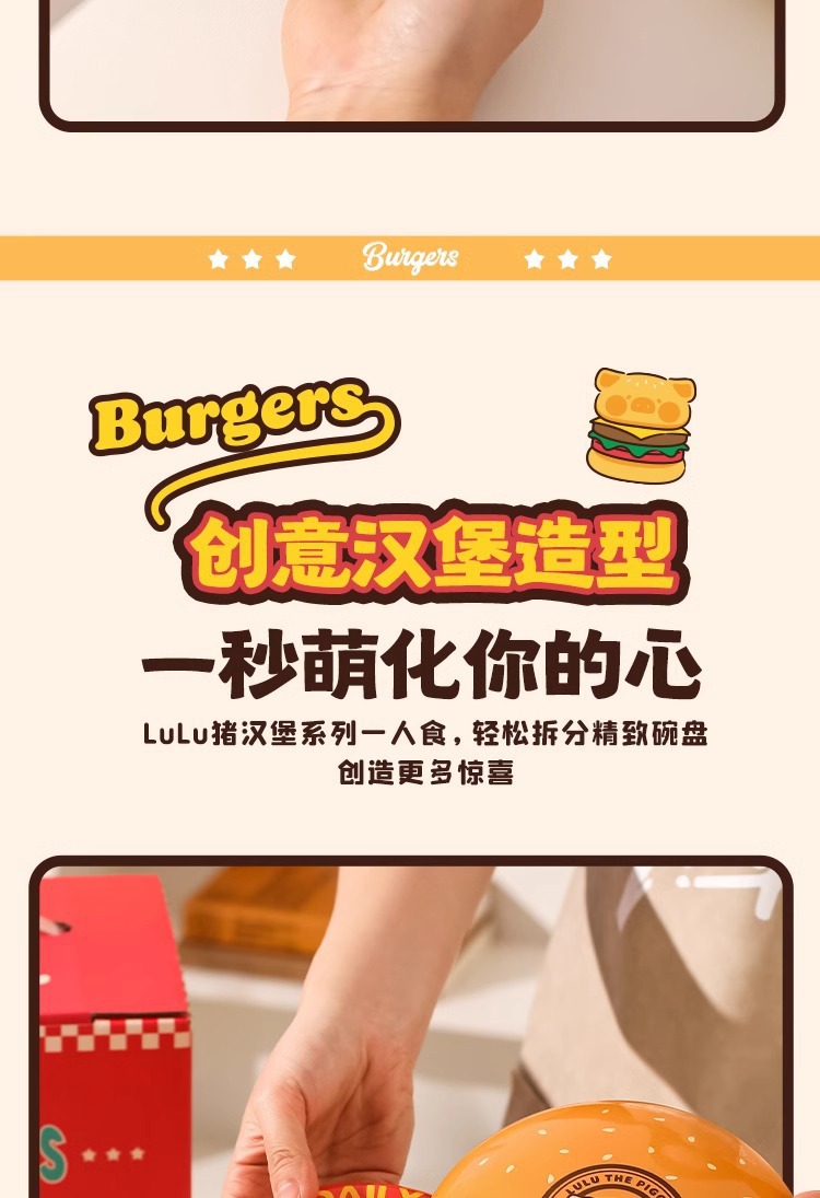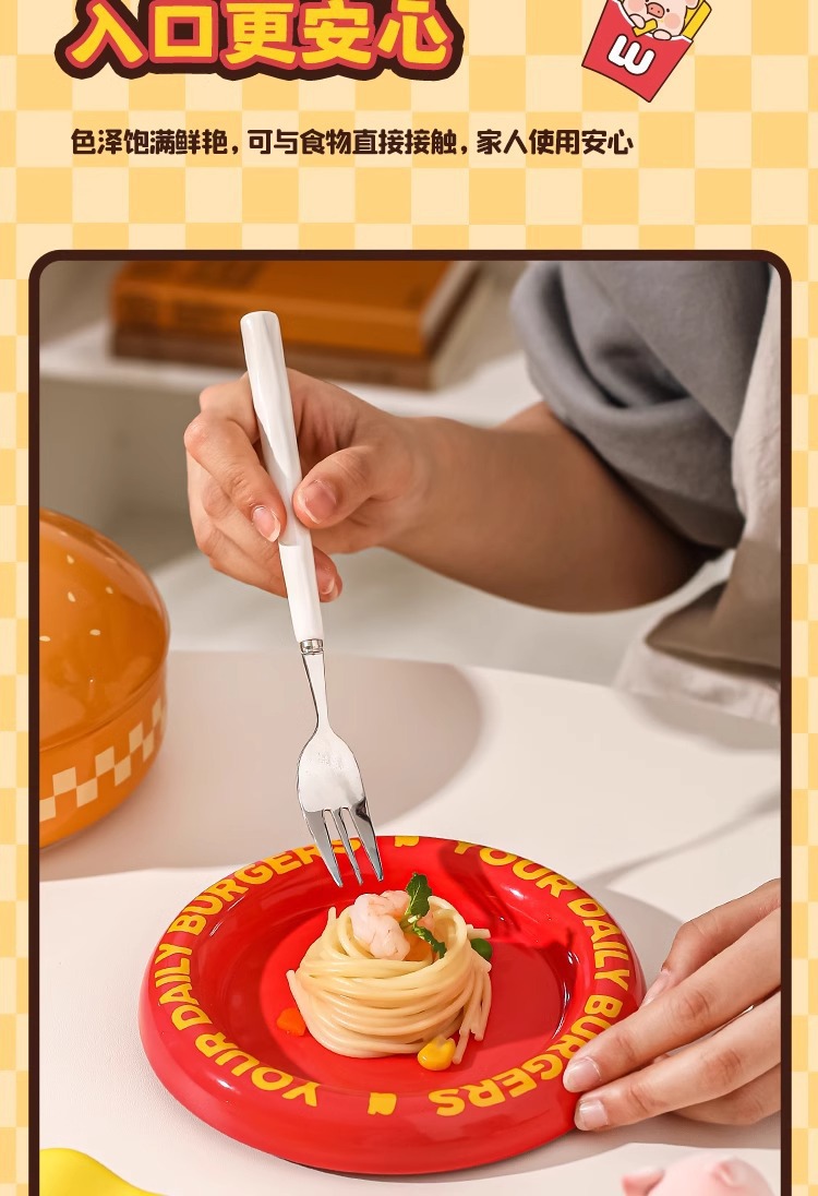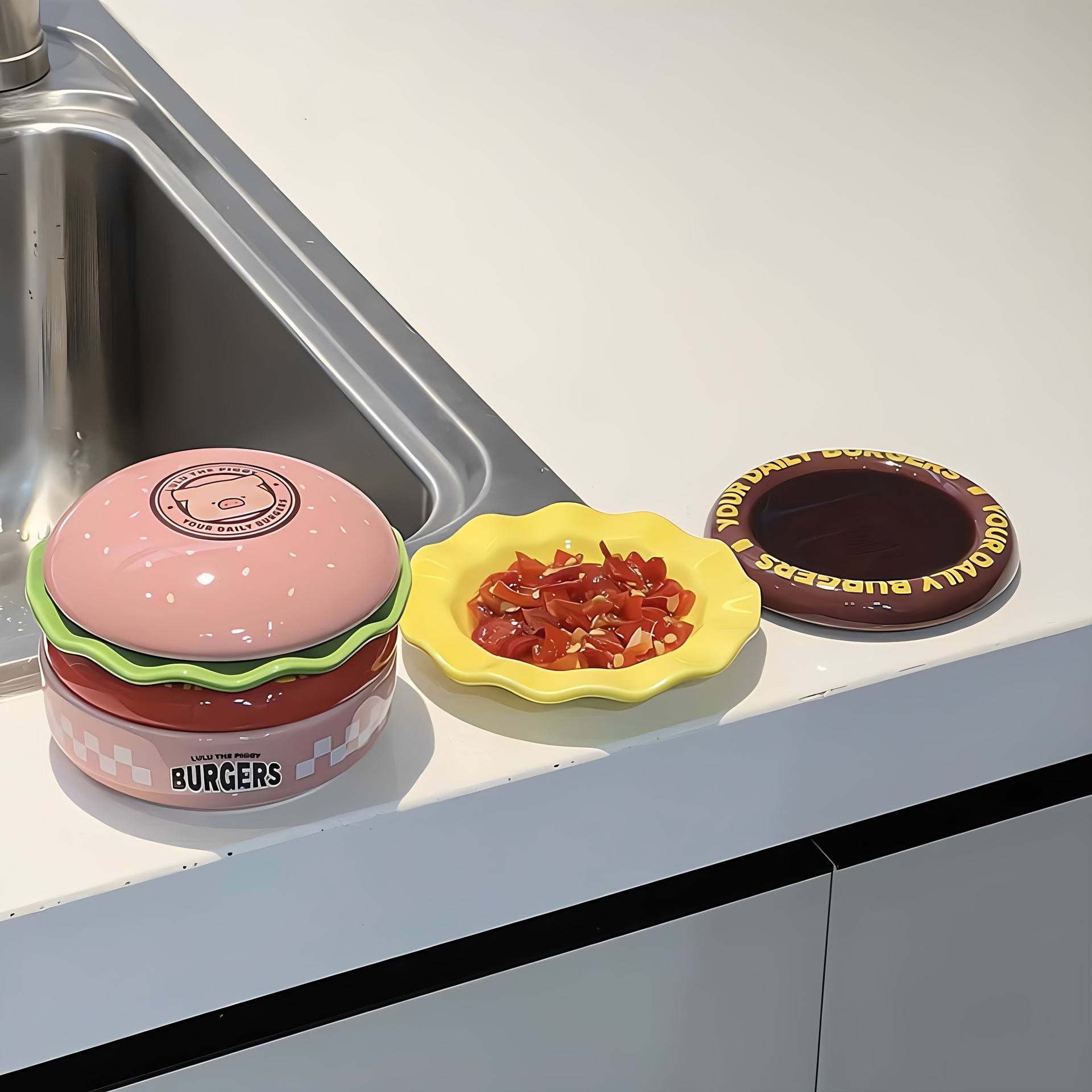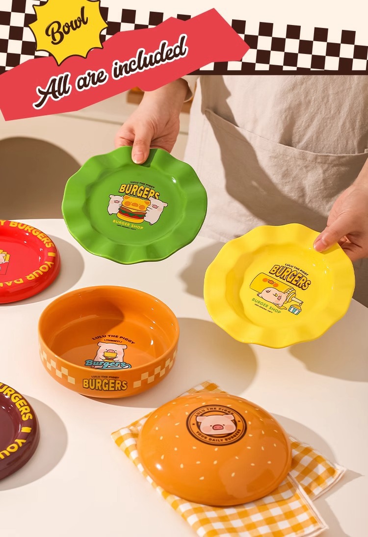 粉色lulu猪汉堡吐骨碟餐具套装家用可爱叠叠乐调料碟高颜值小盘子