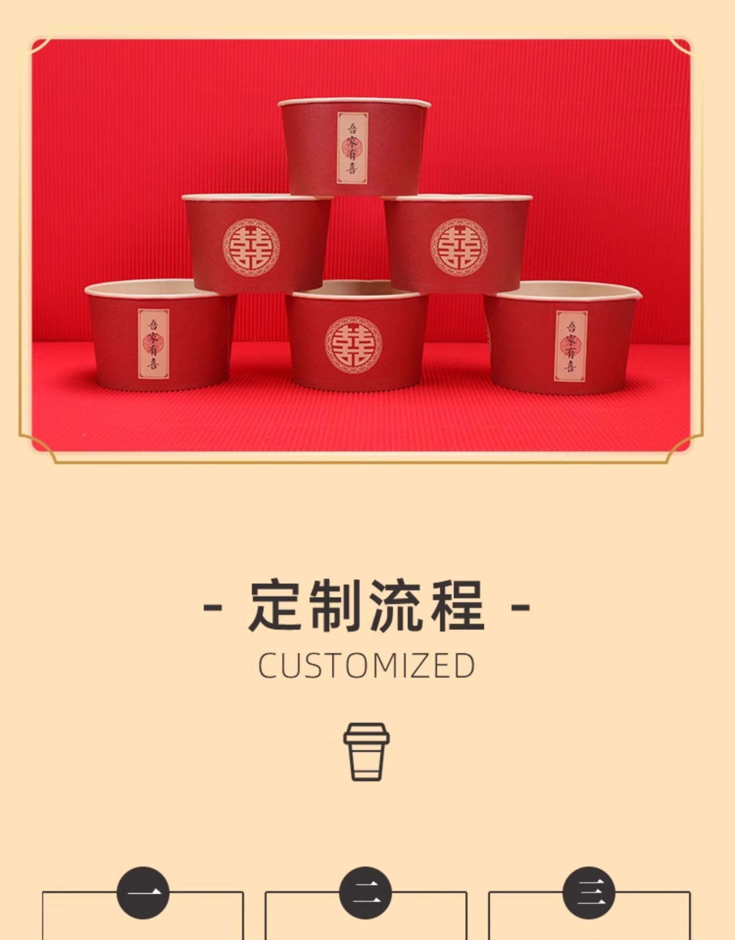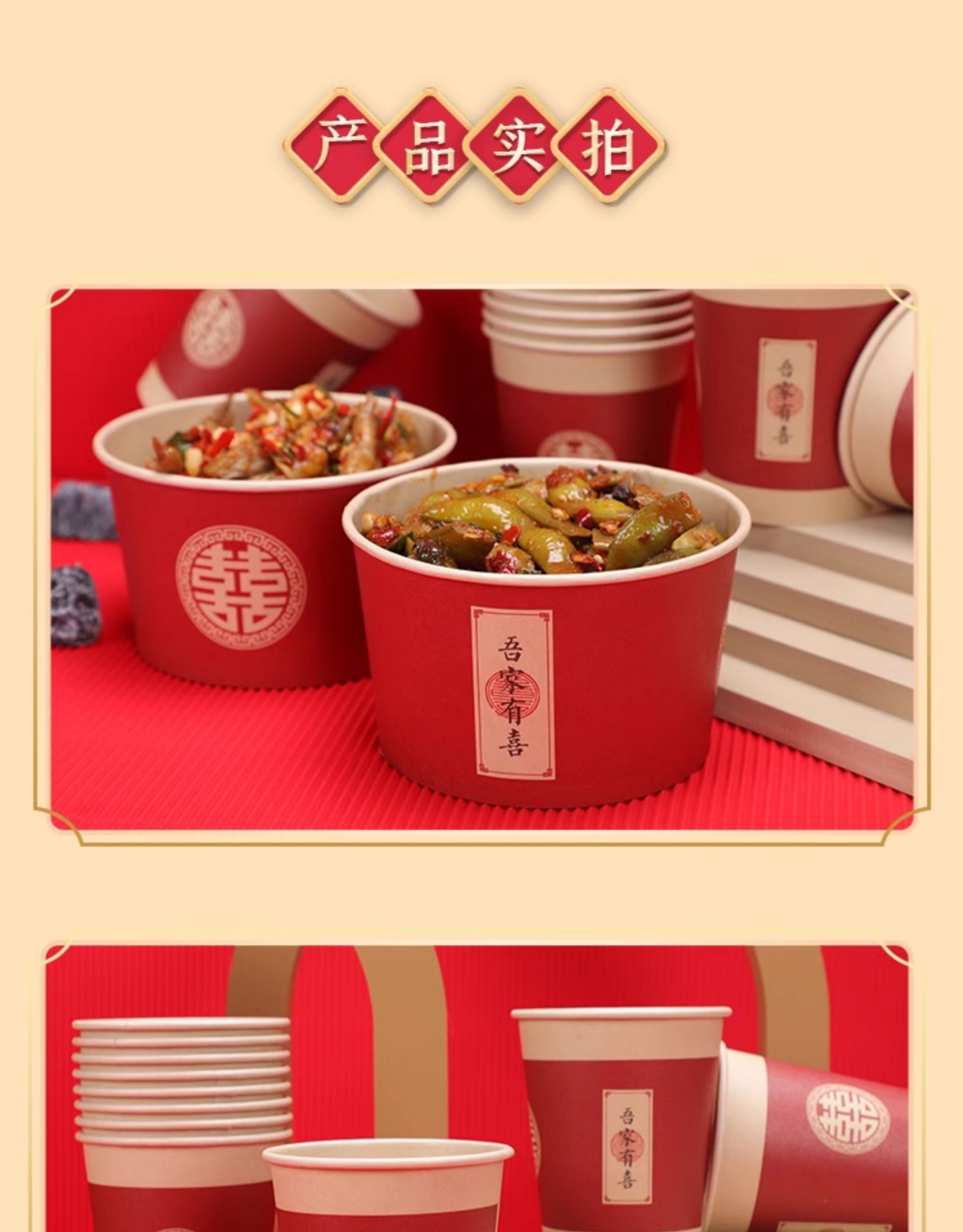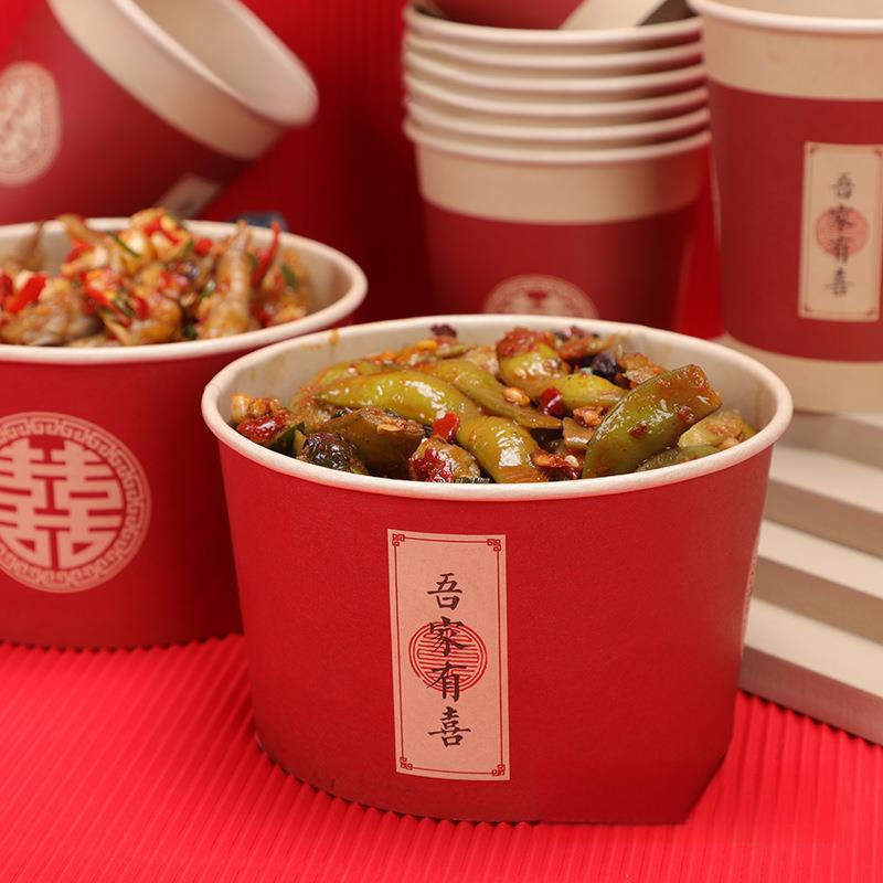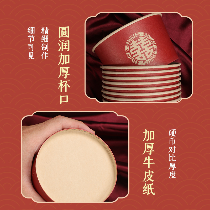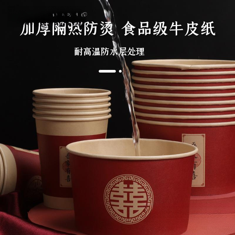 一次性碗结婚纸碗筷套装食品级餐具喜事红色喜碗婚宴婚礼加厚