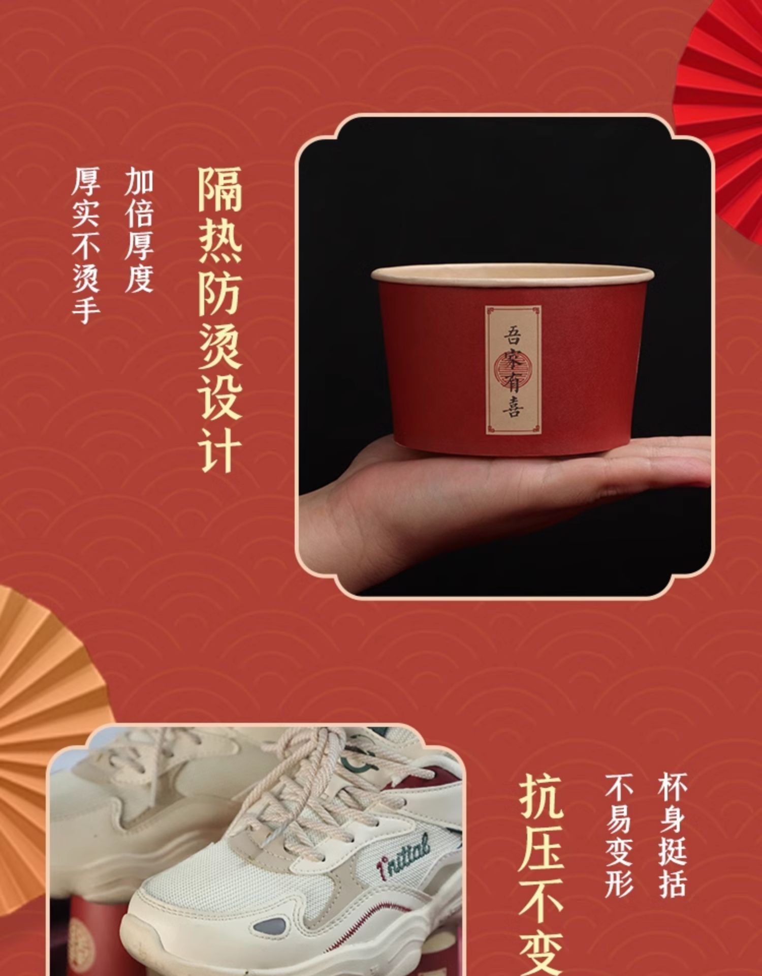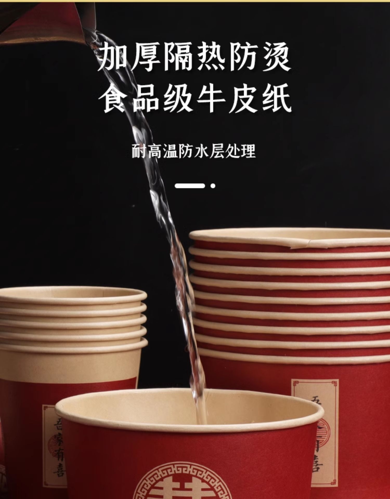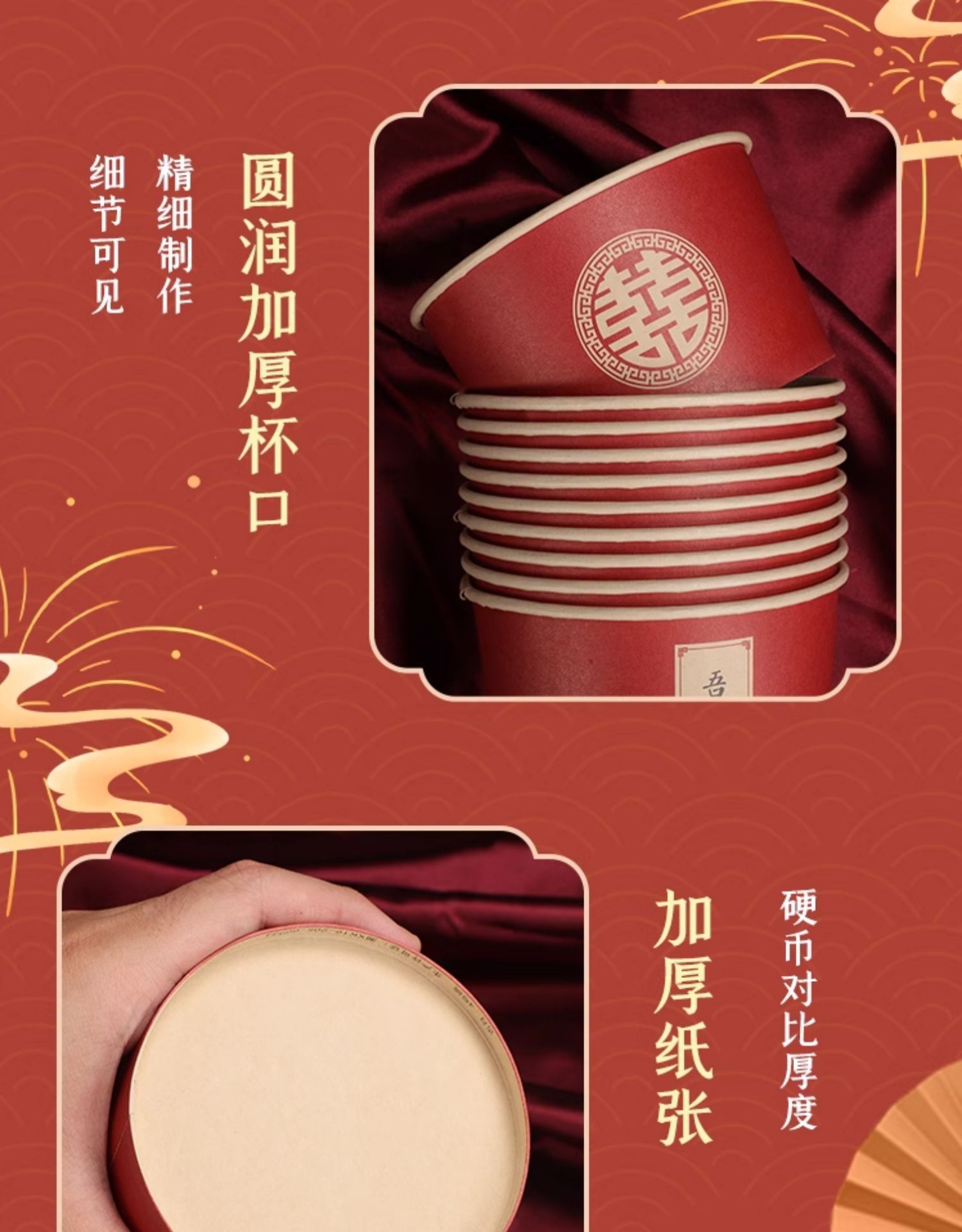 一次性碗结婚纸碗筷套装食品级餐具喜事红色喜碗婚宴婚礼加厚