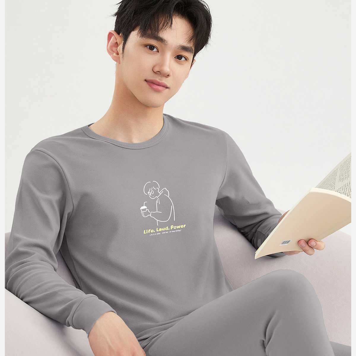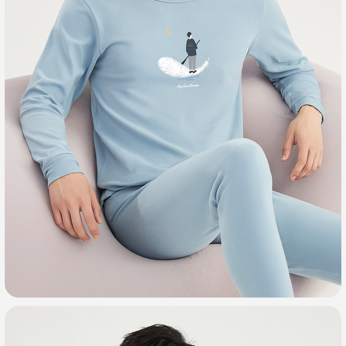 男士保暖内衣薄款全棉衬衣衬裤套装打底棉毛衫青年纯棉秋衣秋裤