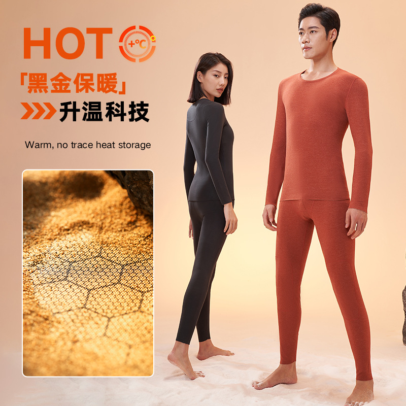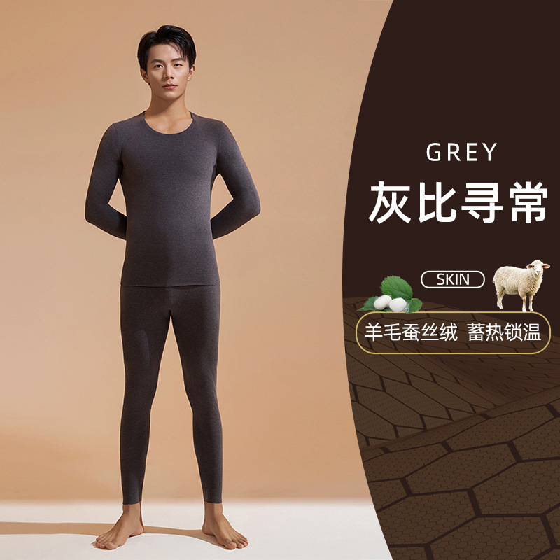 聚衣堂黑金羊绒蚕丝保暖内衣套装加厚秋衣秋裤高弹圆领保暖衣男士