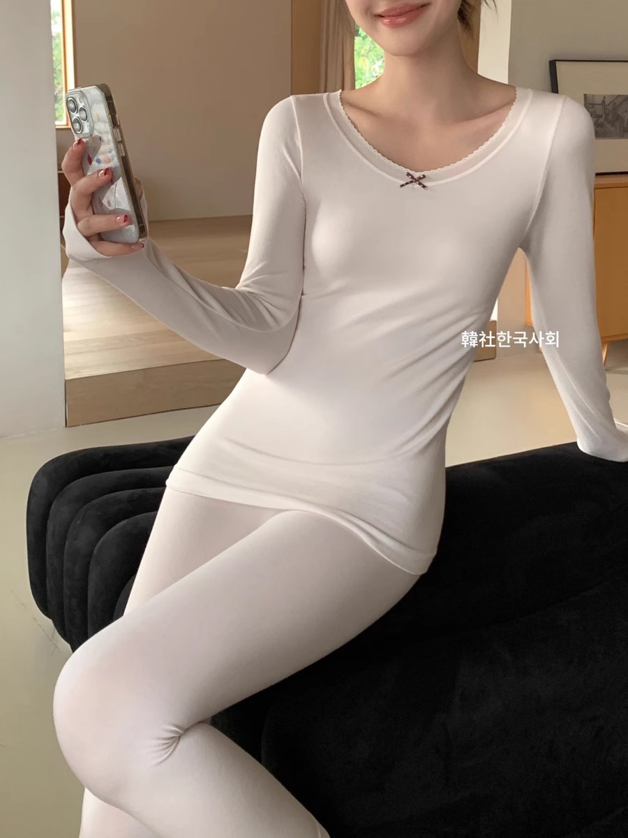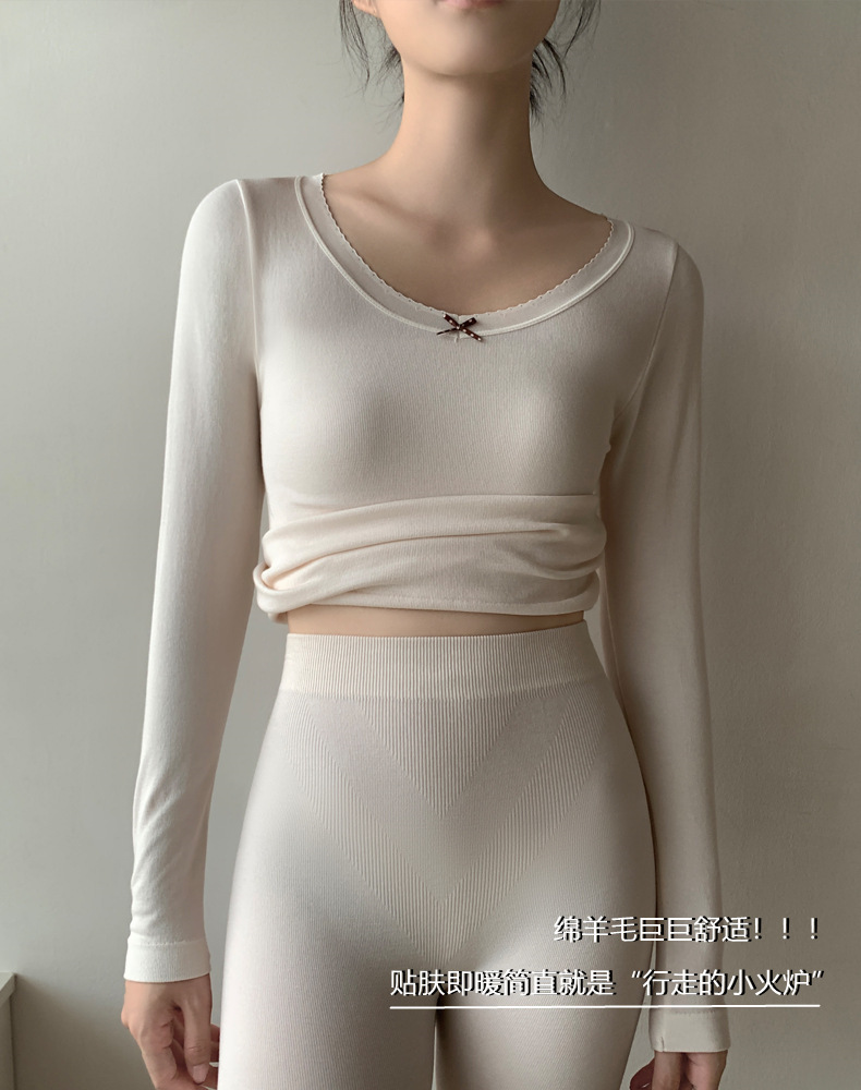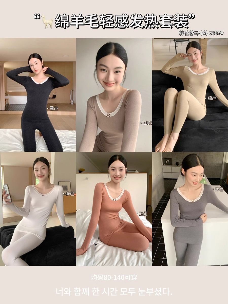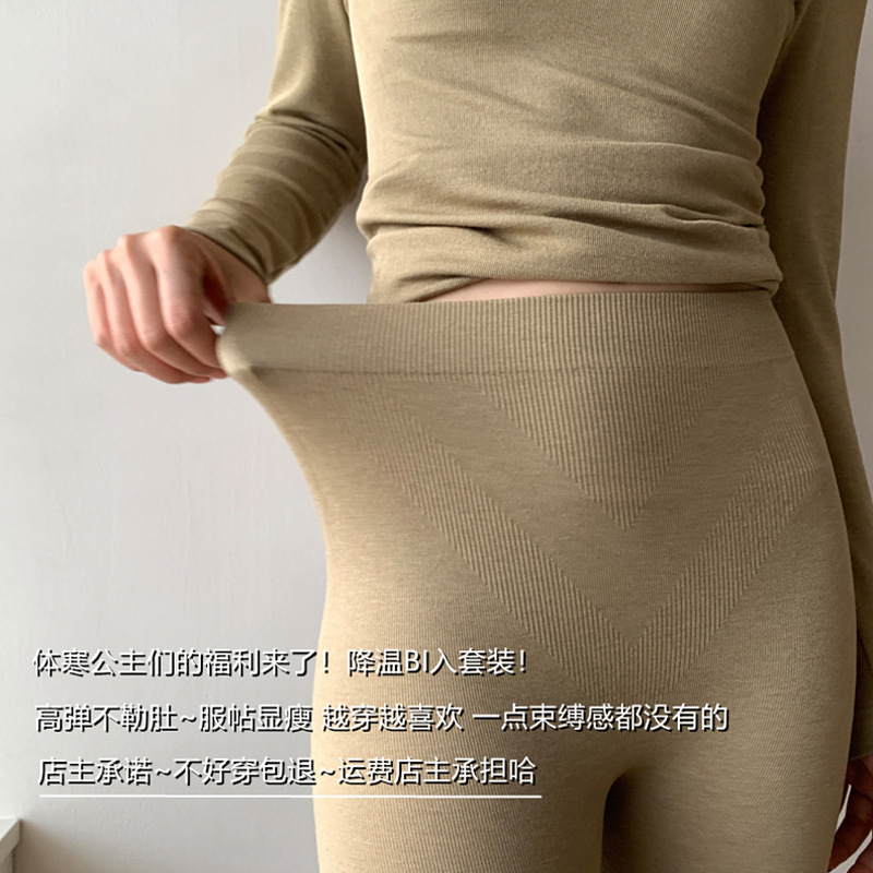 腈纶发热绵羊毛蚕丝保暖内衣套装女自发热无痕秋衣秋裤微塑肌底衣