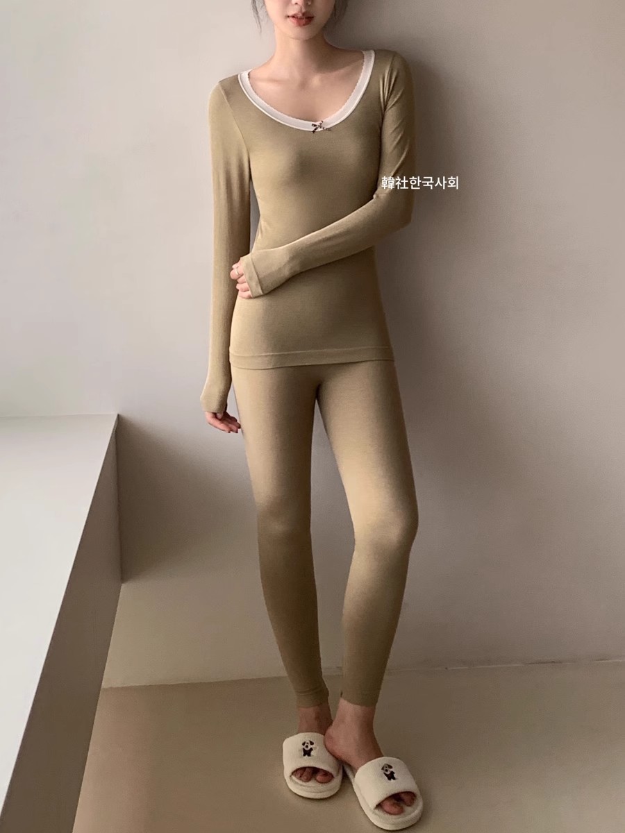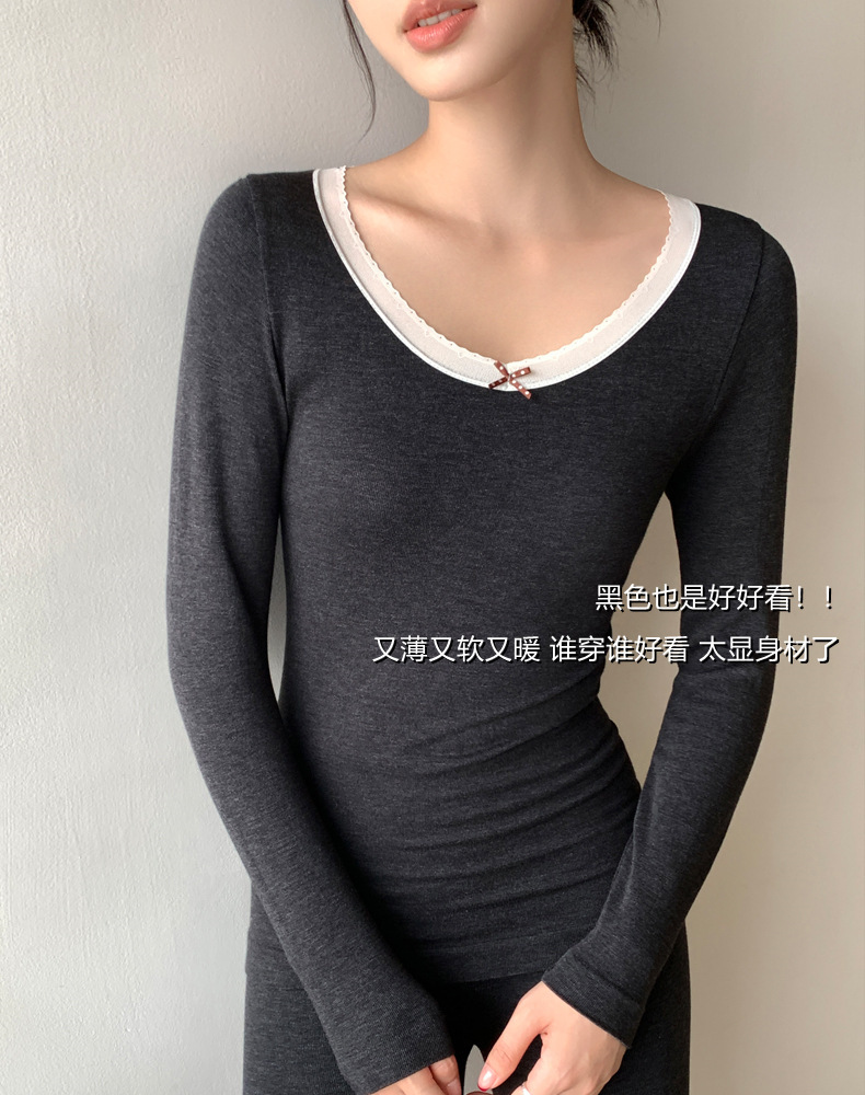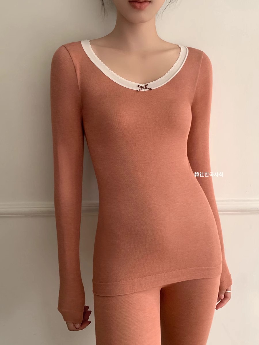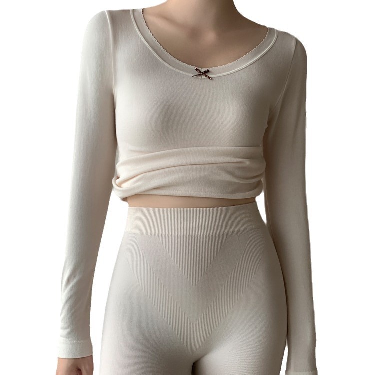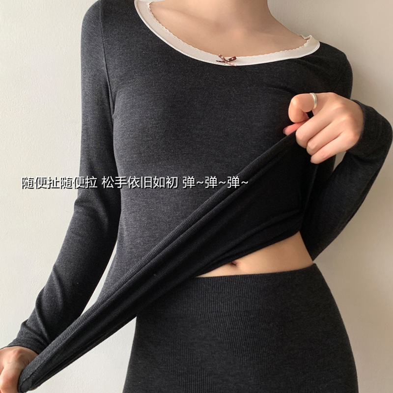 腈纶发热绵羊毛蚕丝保暖内衣套装女自发热无痕秋衣秋裤微塑肌底衣