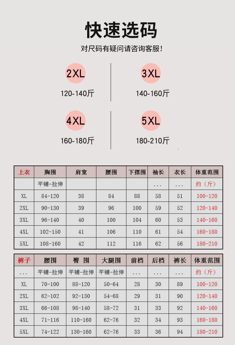 | 5xl (recommended 90.00 kg-105.00 kg(5XL(建议180-210斤)) | USD $3.64 | 87 piece available |