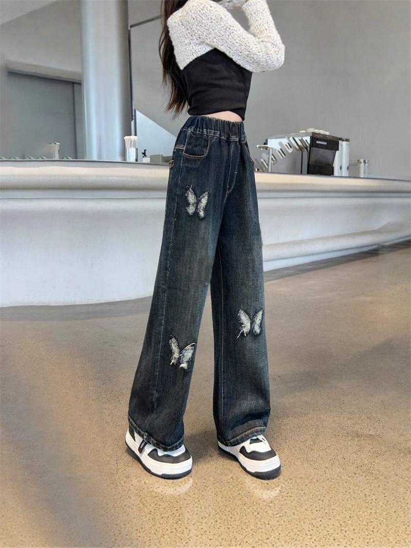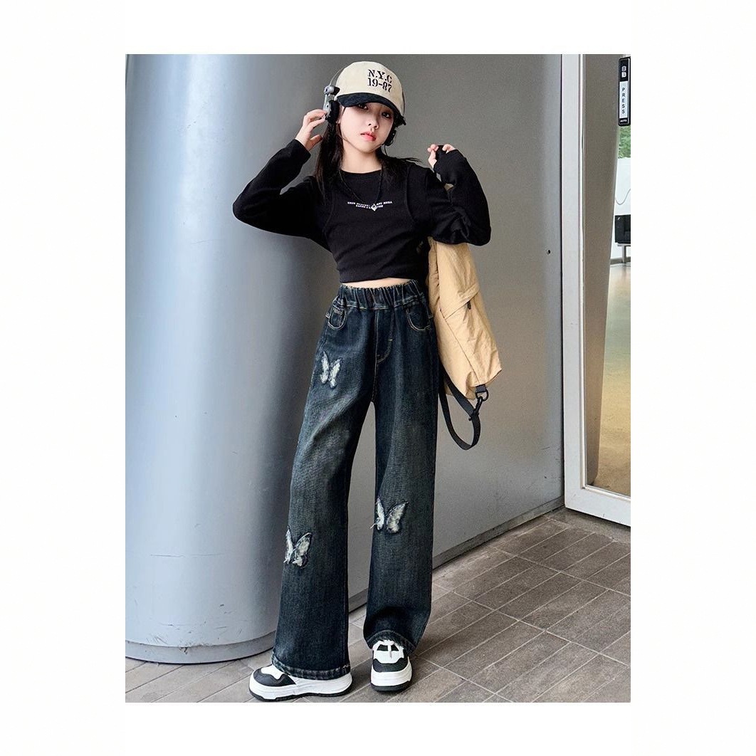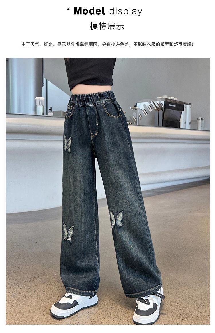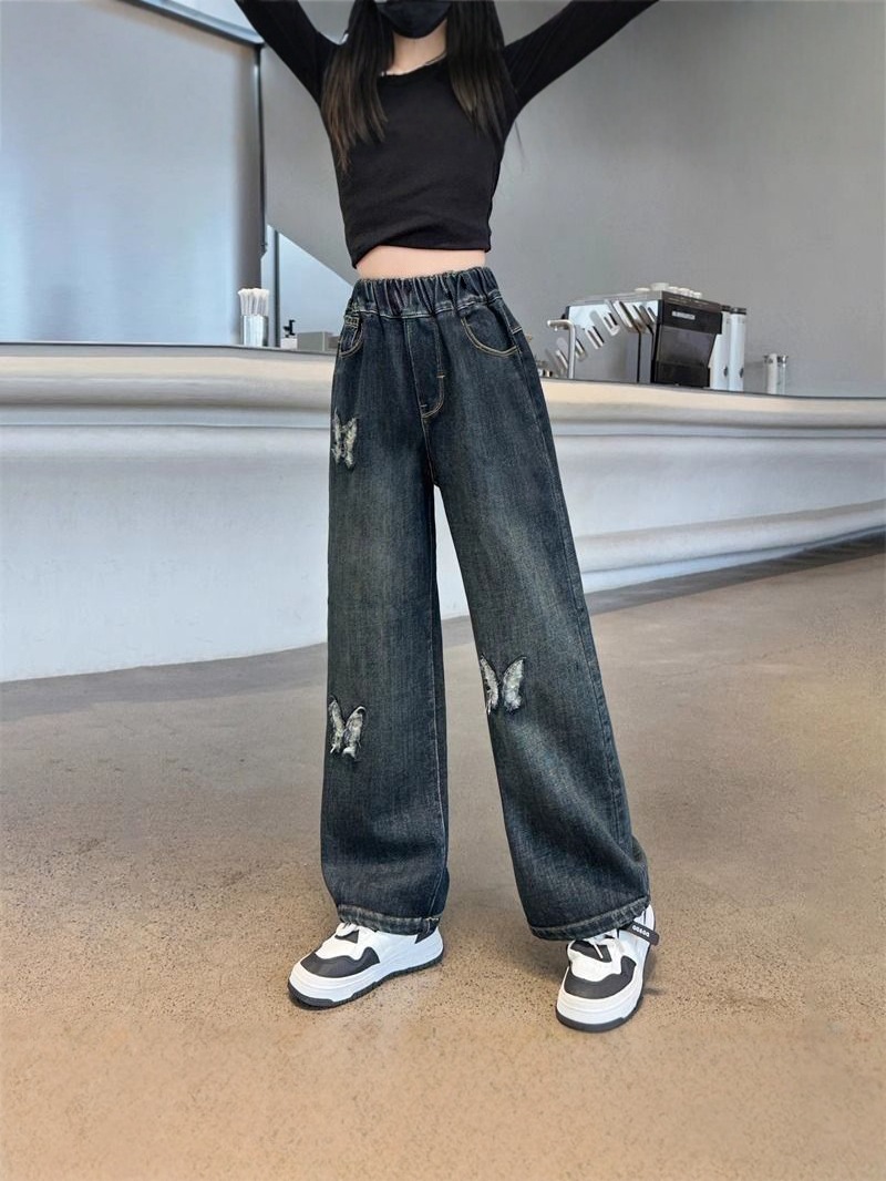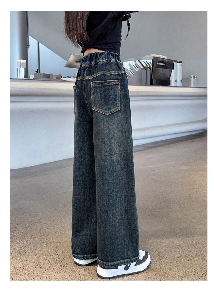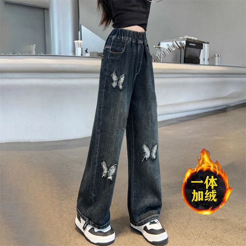 女童加绒牛仔阔腿裤2025新款高腰宽松冬季韩版百搭长裤