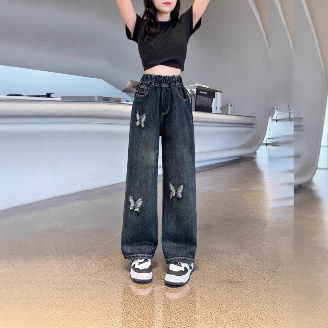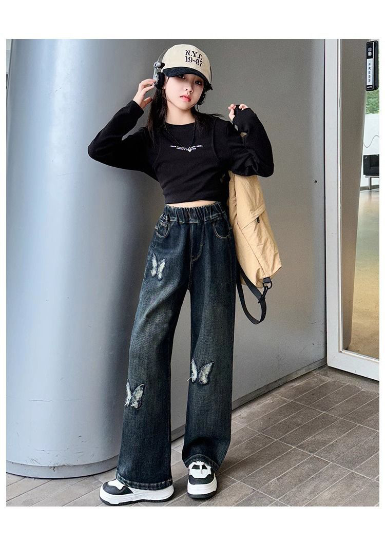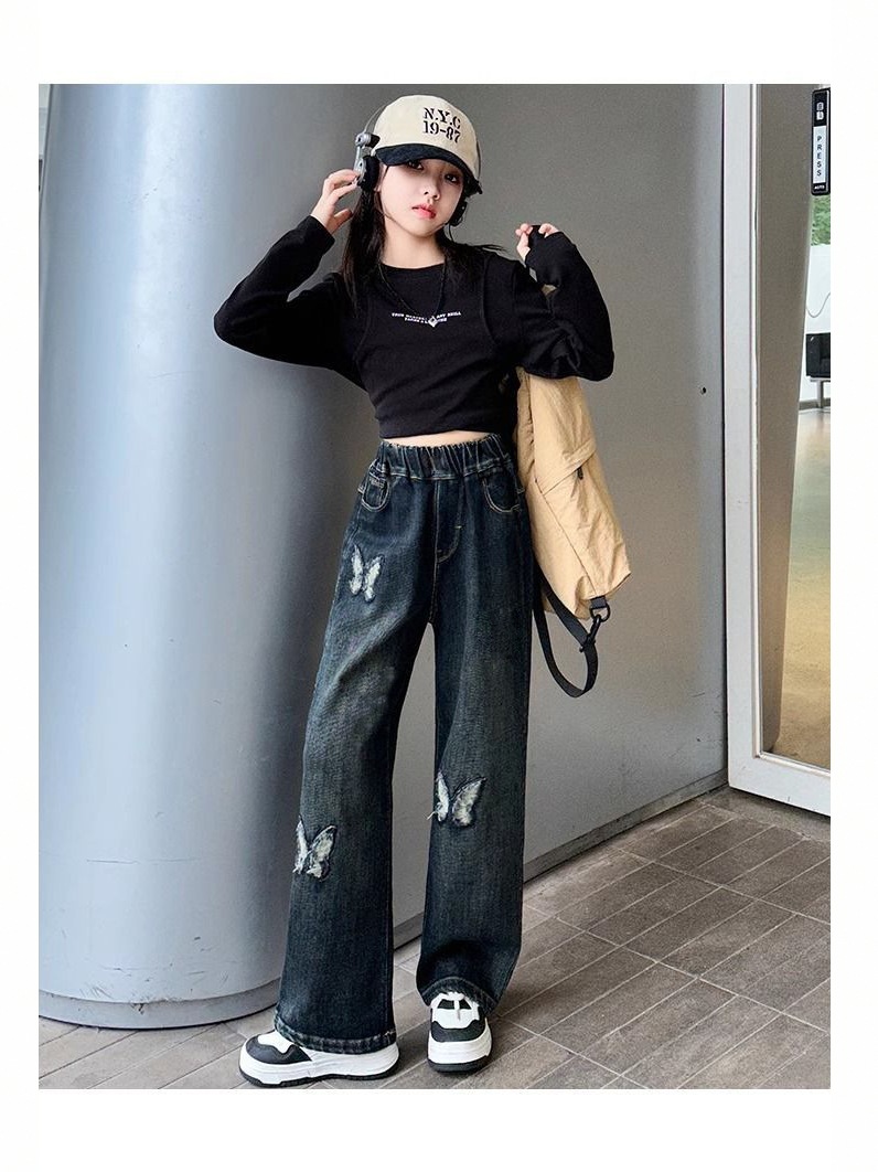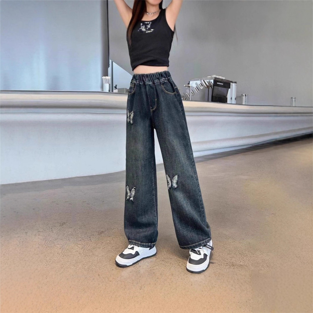 女童加绒牛仔阔腿裤2025新款高腰宽松冬季韩版百搭长裤