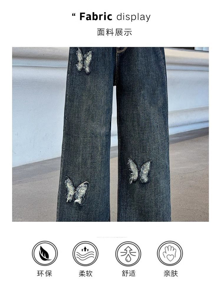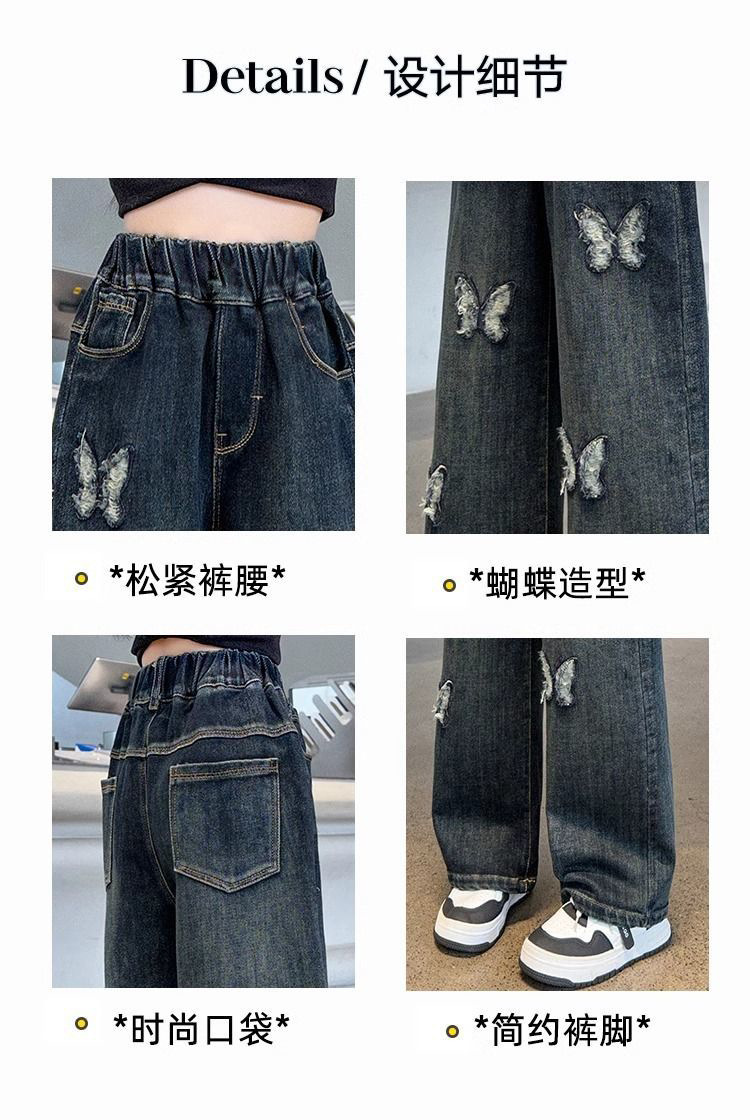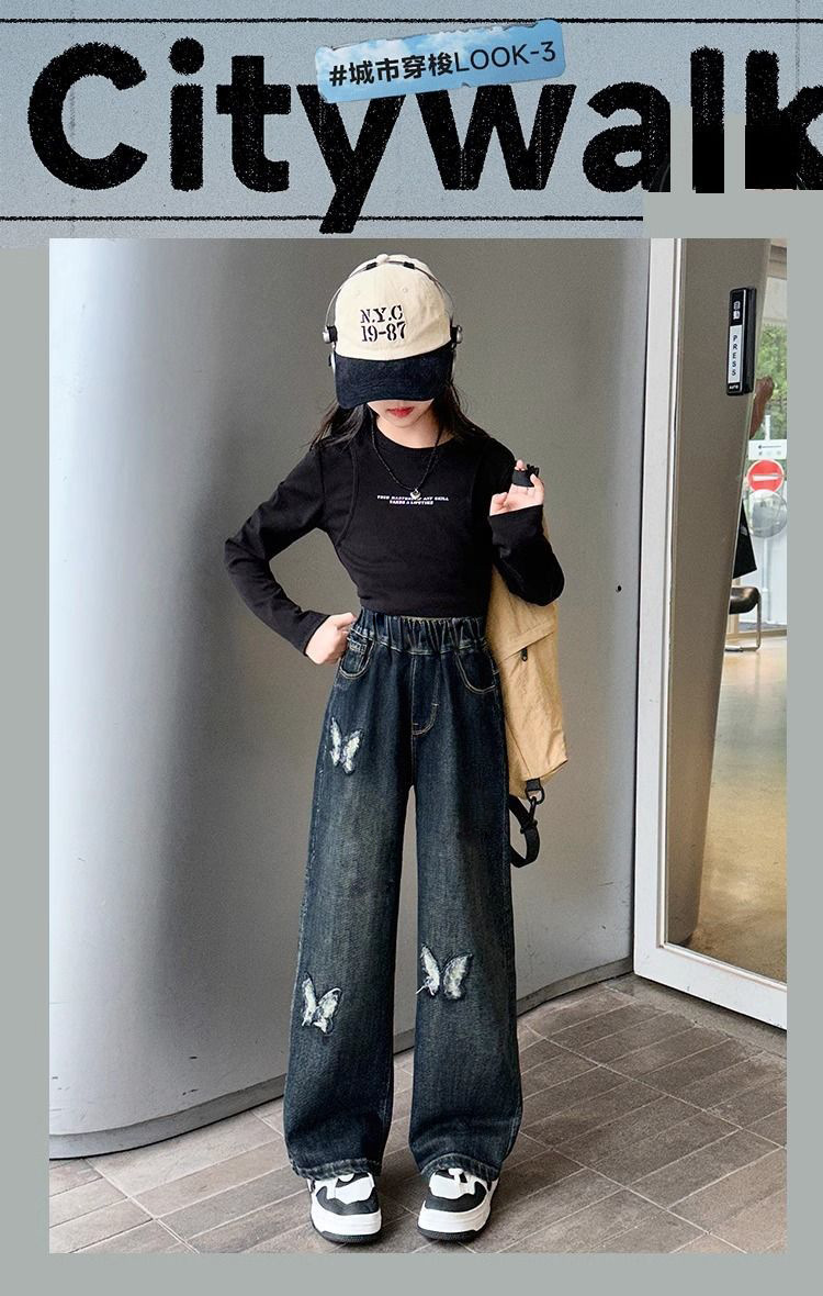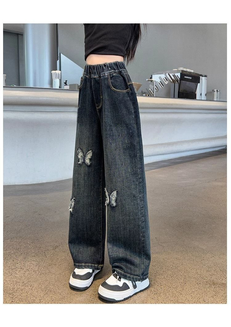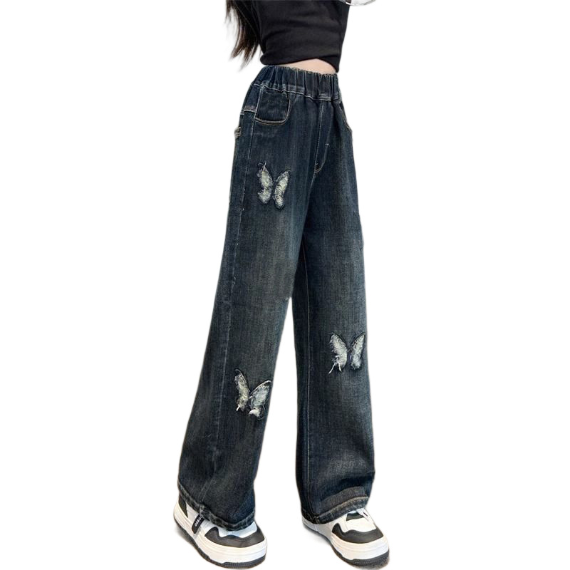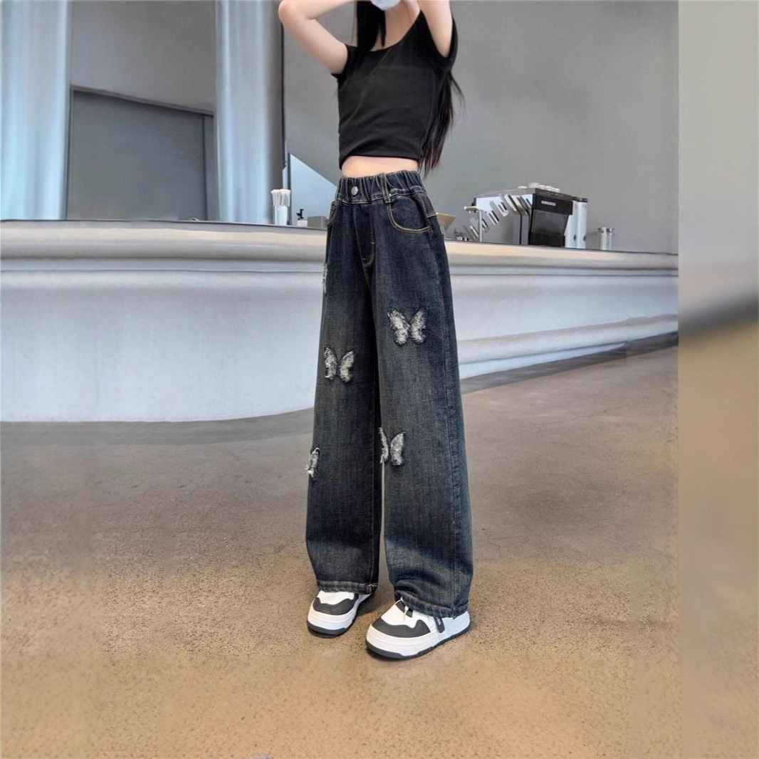 女童加绒牛仔阔腿裤2025新款高腰宽松冬季韩版百搭长裤