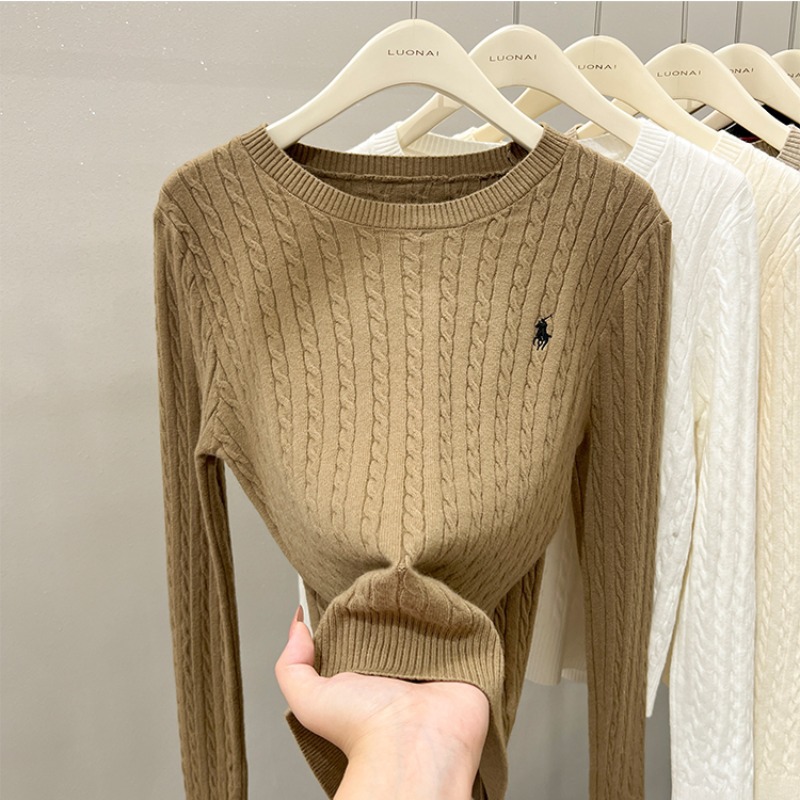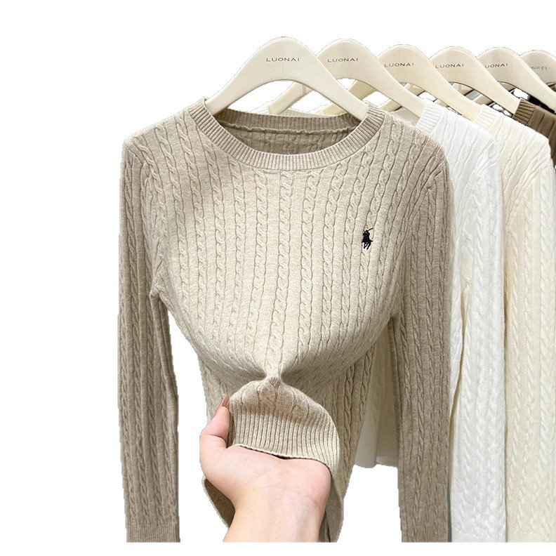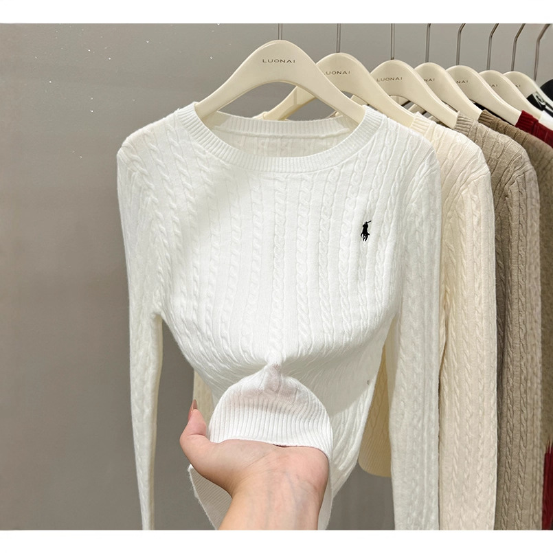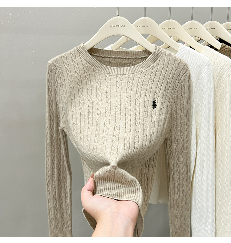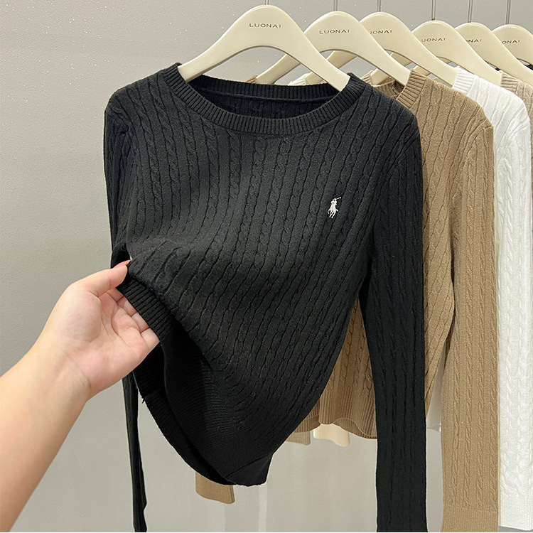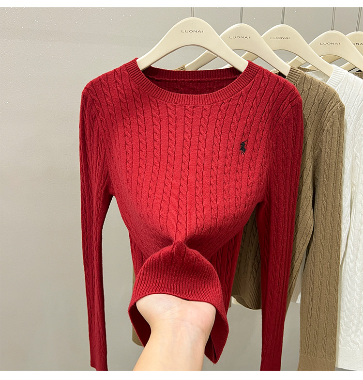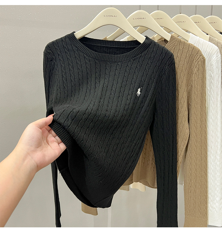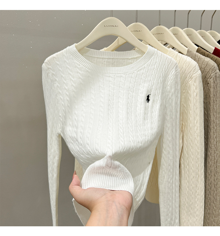 刺绣宽松针织打底衫女内搭秋冬新款2024洋气麻花长袖白色毛衣上衣