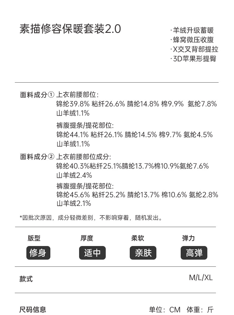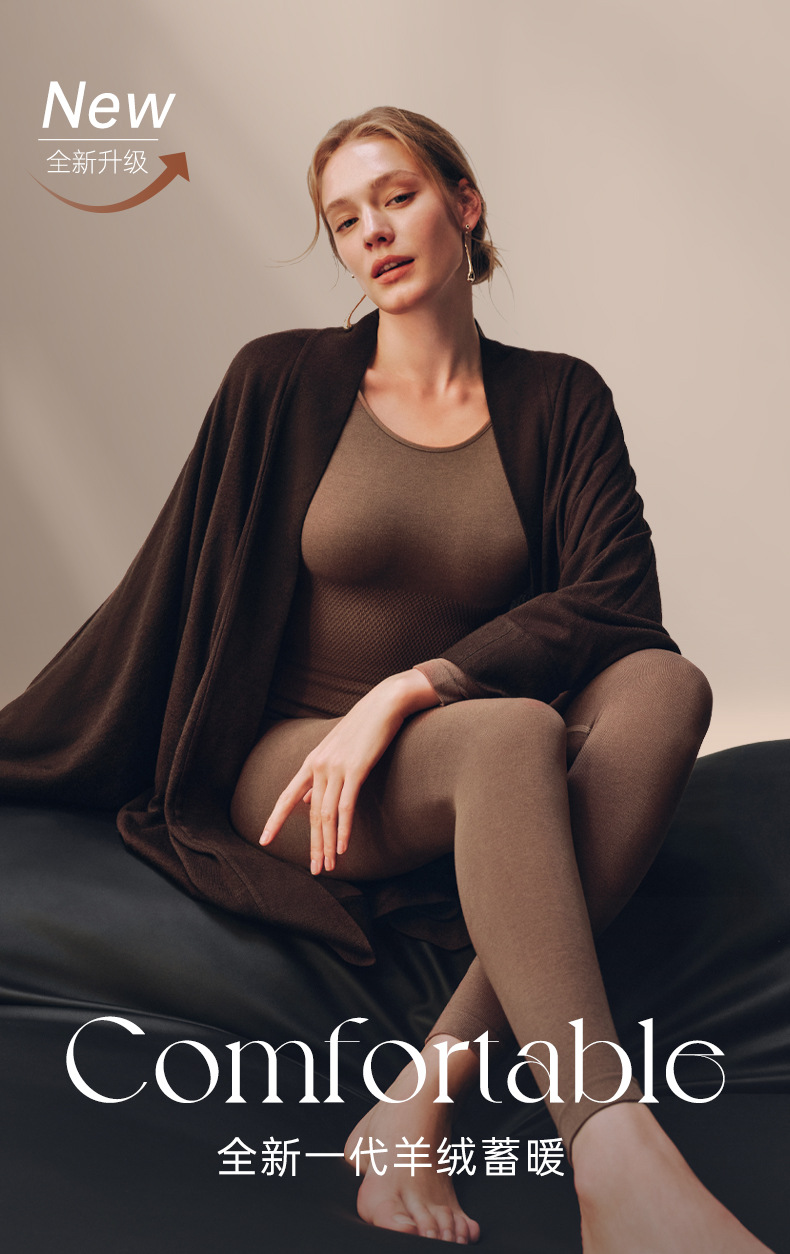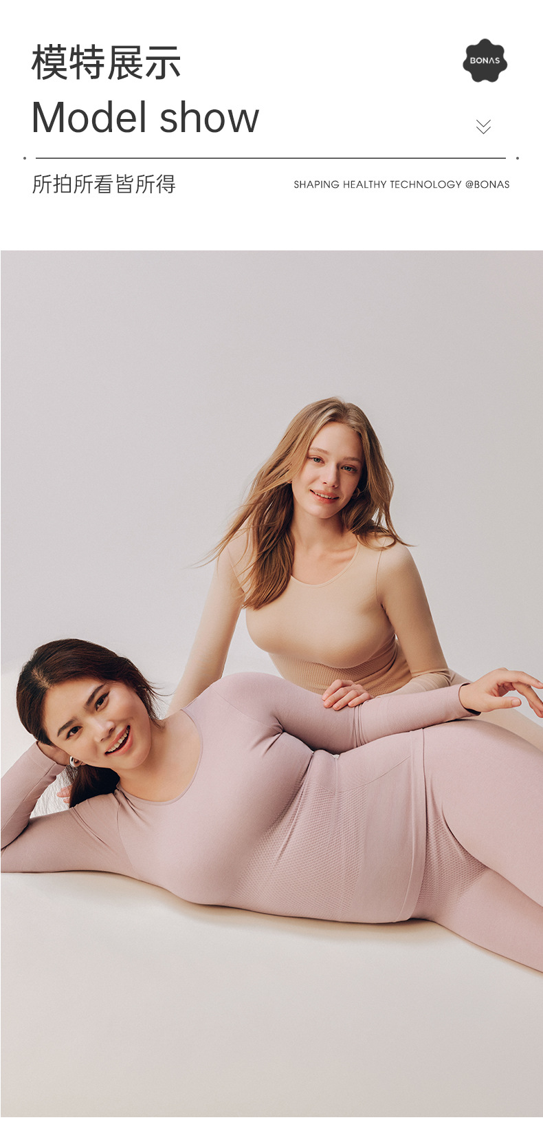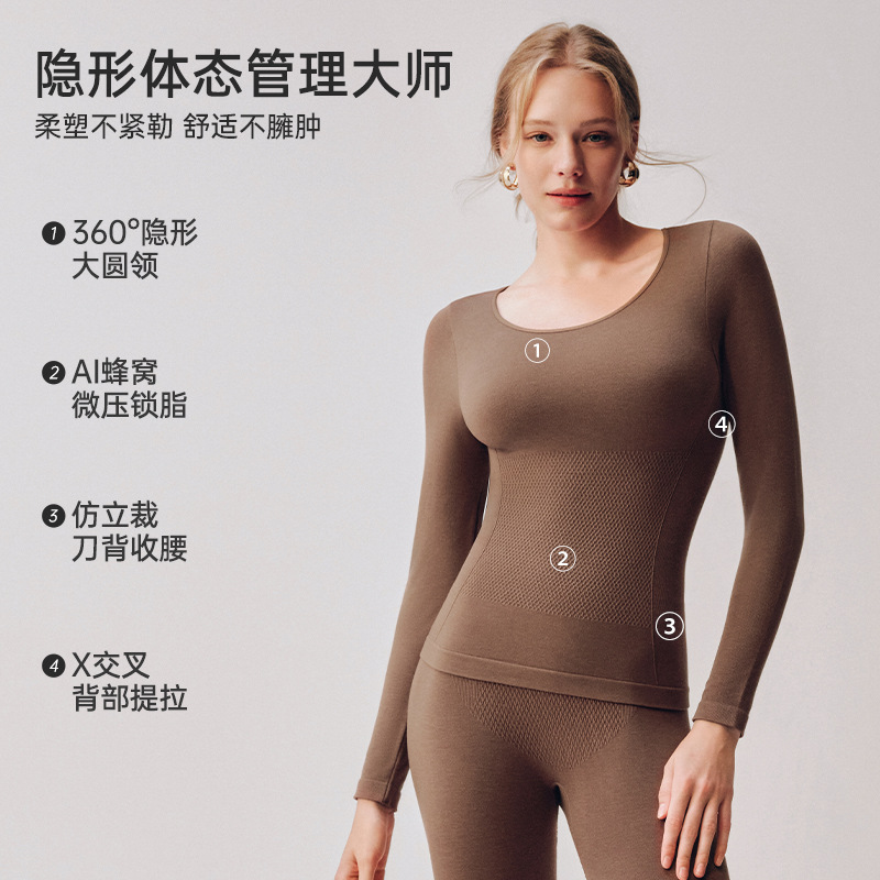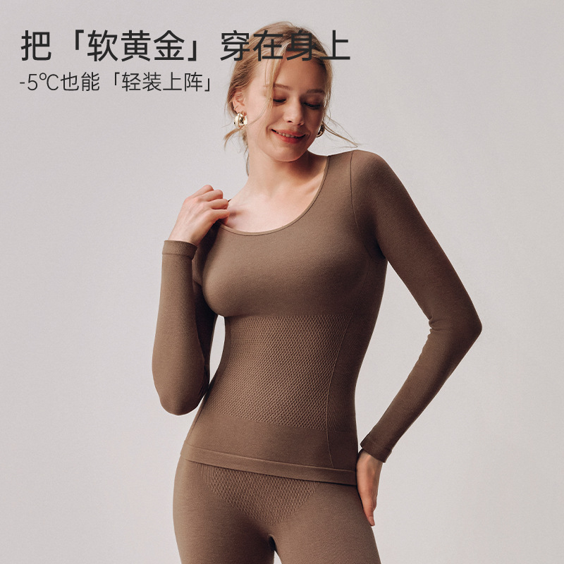 宝娜斯保暖套装女2.0山羊绒保暖内衣女塑身提臀琥珀流光秋衣秋裤