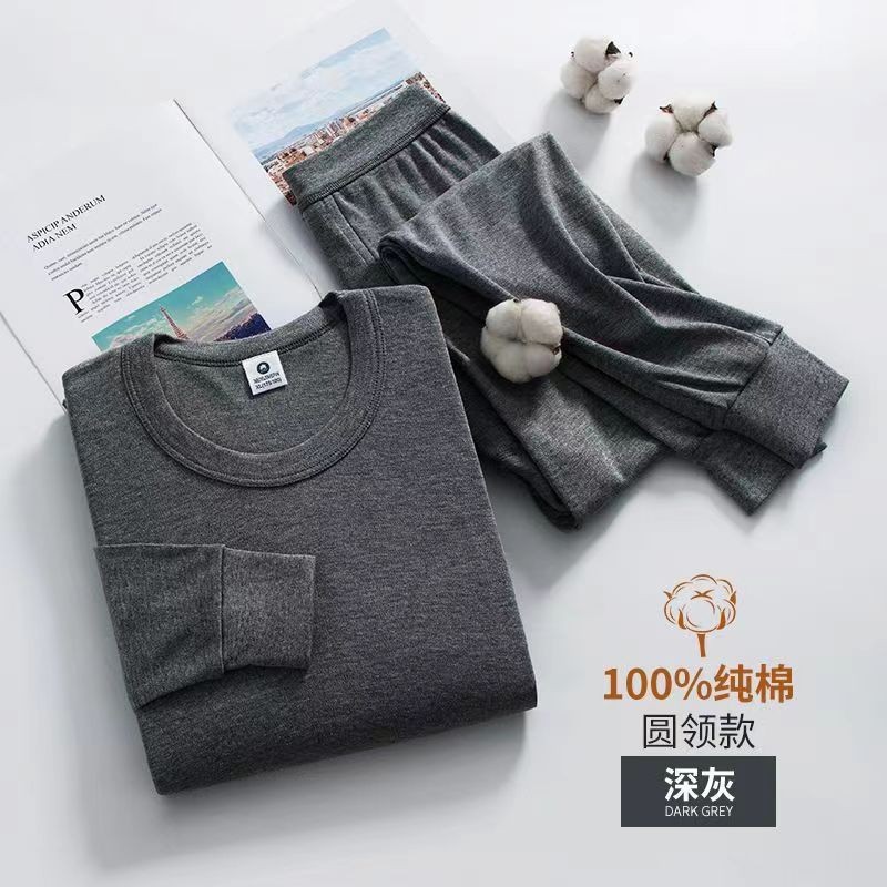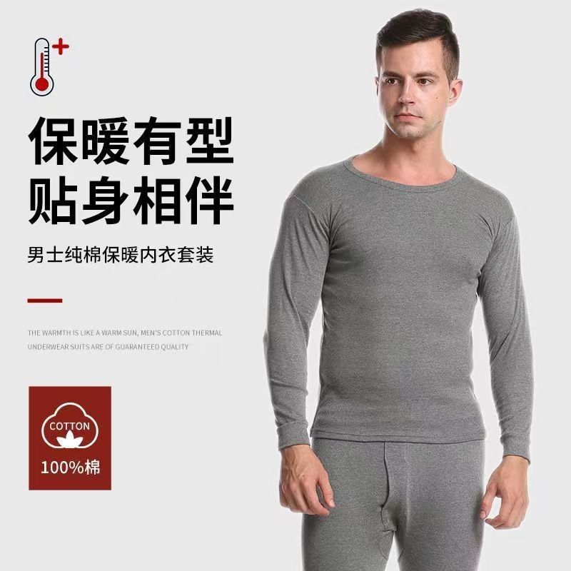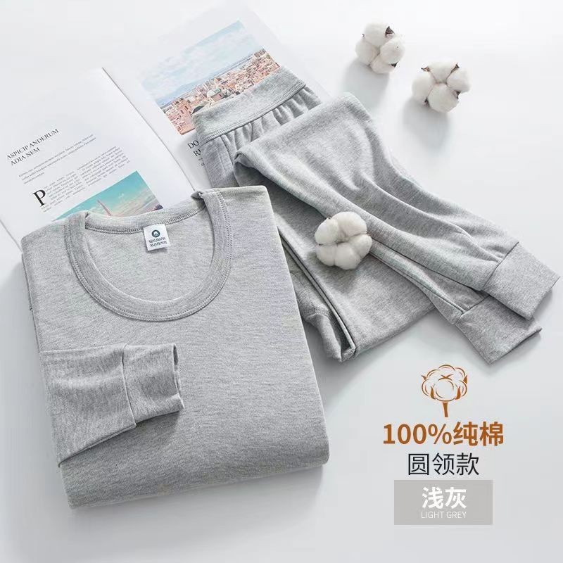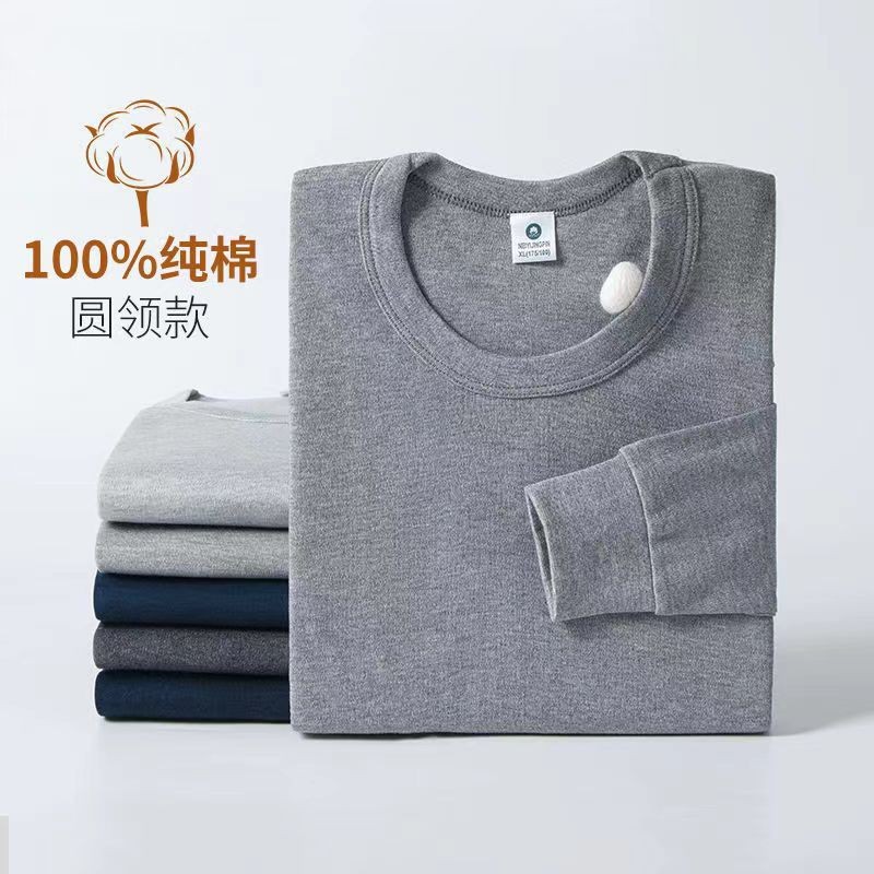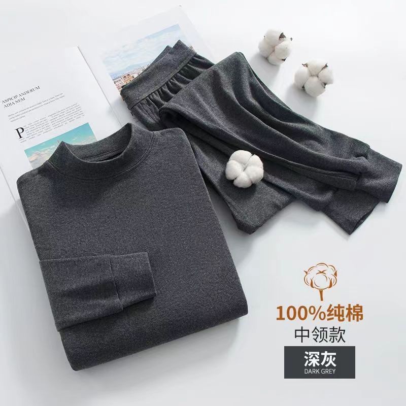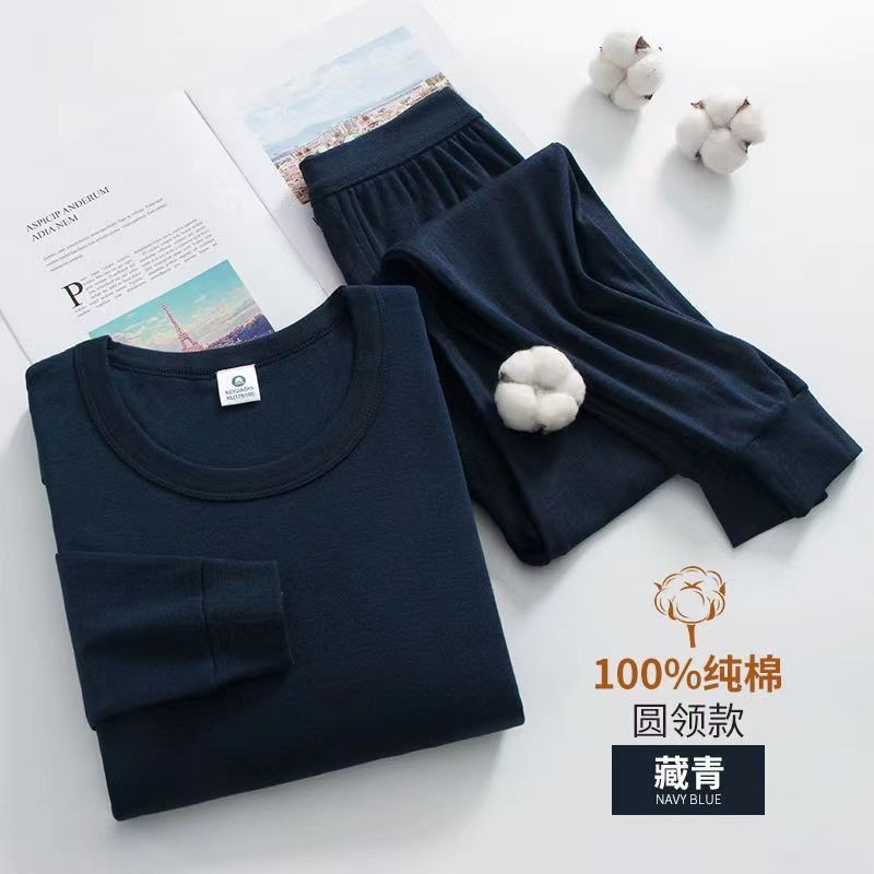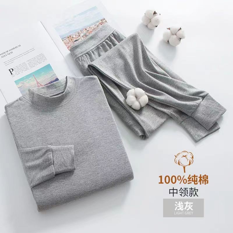 100%纯棉秋衣秋裤套装男款女款全棉男内衣保暖棉毛衫中高领秋冬季