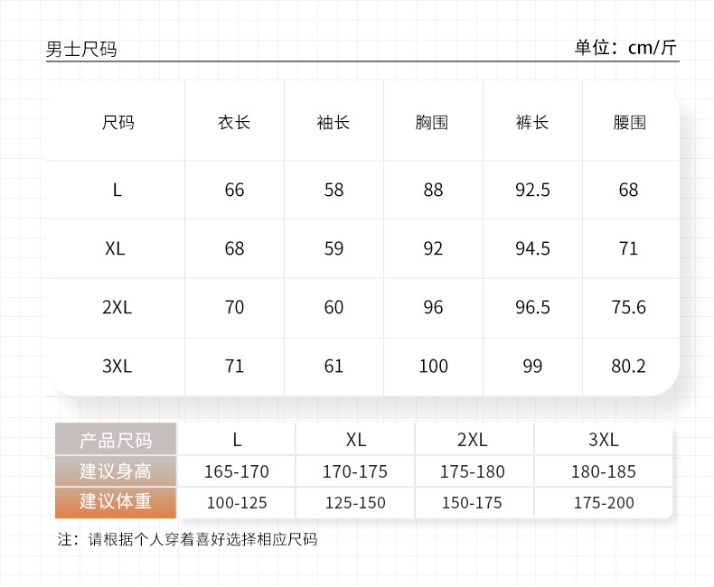 | men's 3xl (recommended 87.50 kg-100.00 kg(男士3XL(建议175-200斤)) | USD $18.17 | 68 set available |