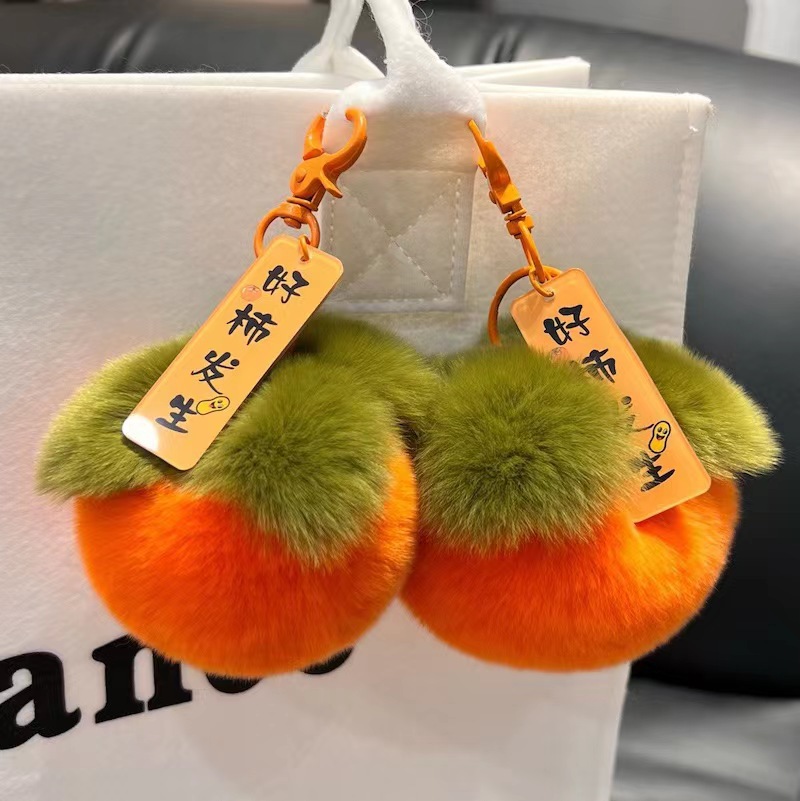 好柿发生挂饰钥匙扣仿獭兔毛小柿子汽车挂件可爱毛绒书包礼物批发