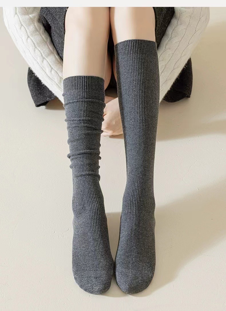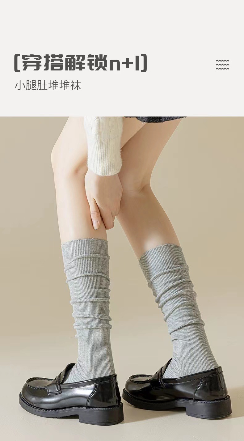 双针小腿袜女秋冬压力显瘦纯色jk全棉抽条纹百搭及膝学院风长筒袜