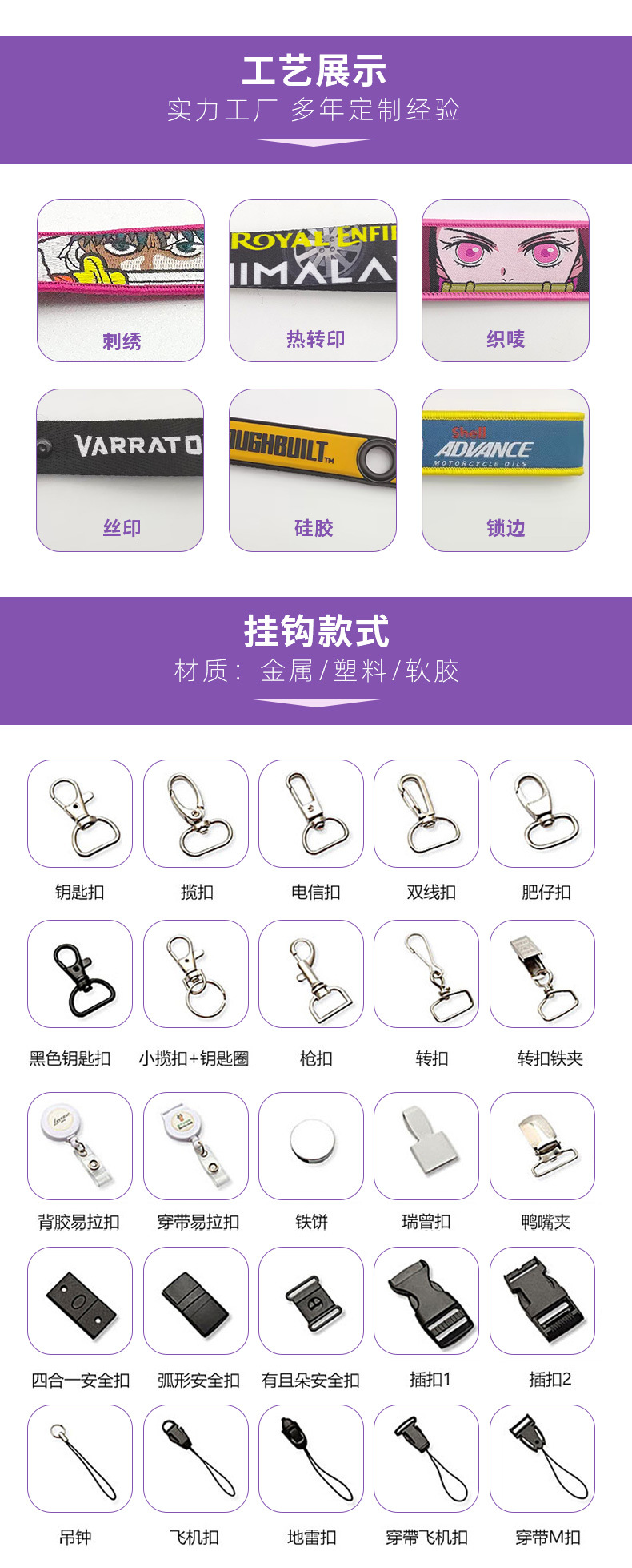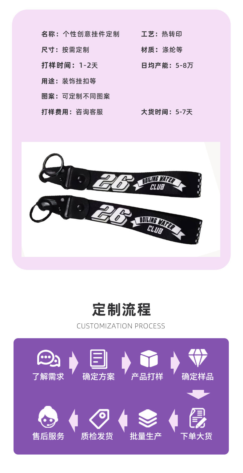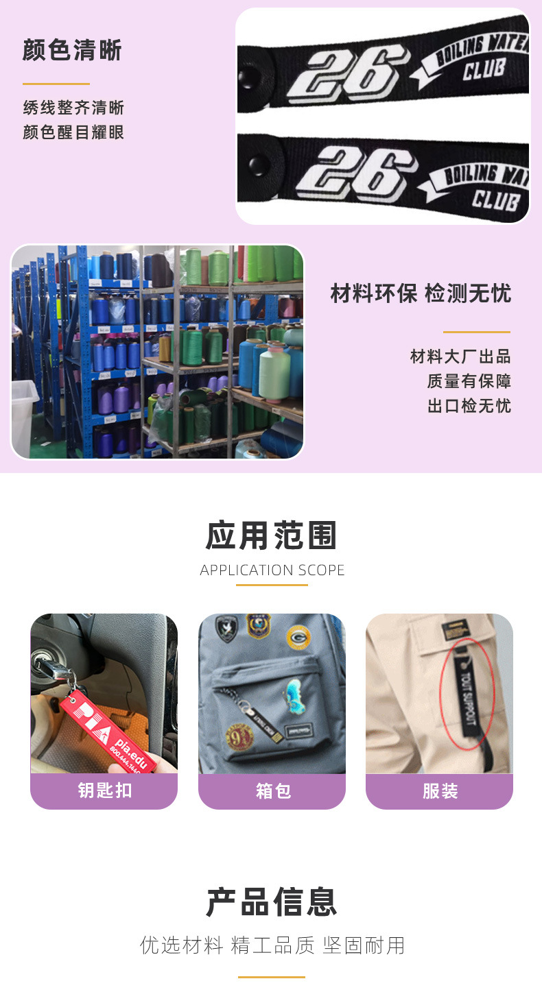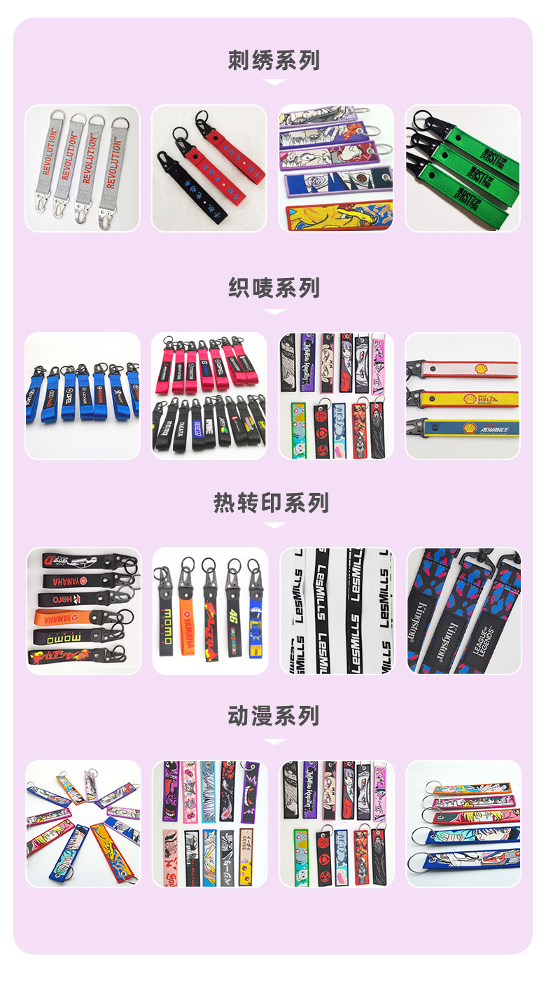 汽车摩托车热转印钥匙扣双面刺绣手腕带挂饰布艺鹰嘴扣钥匙扣挂件