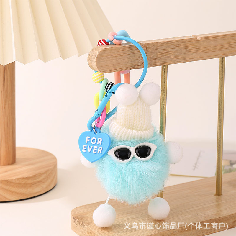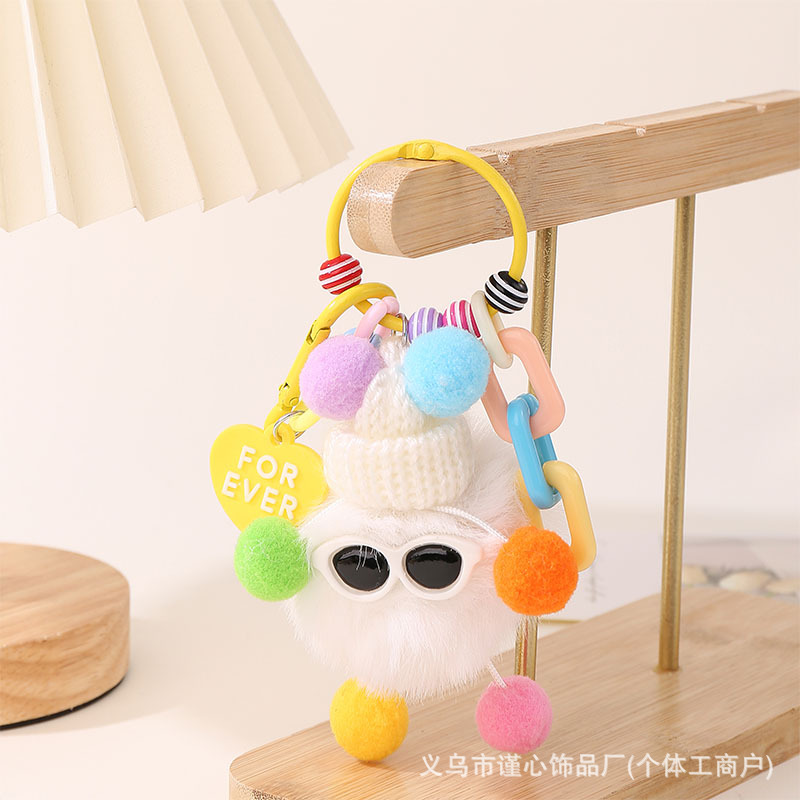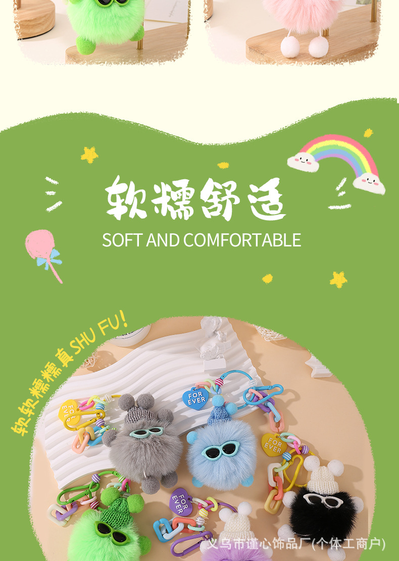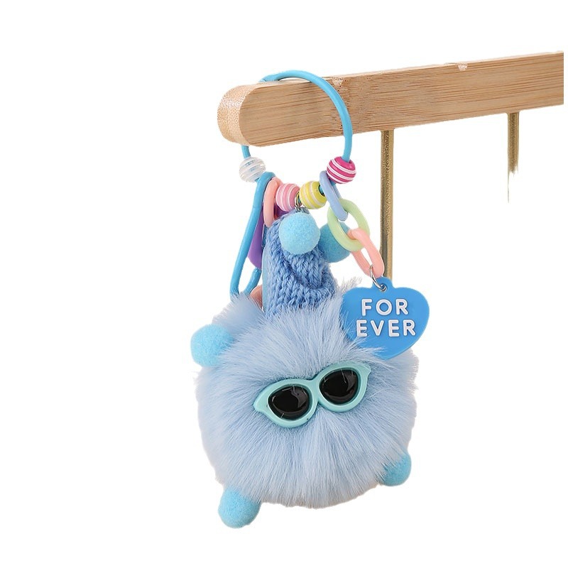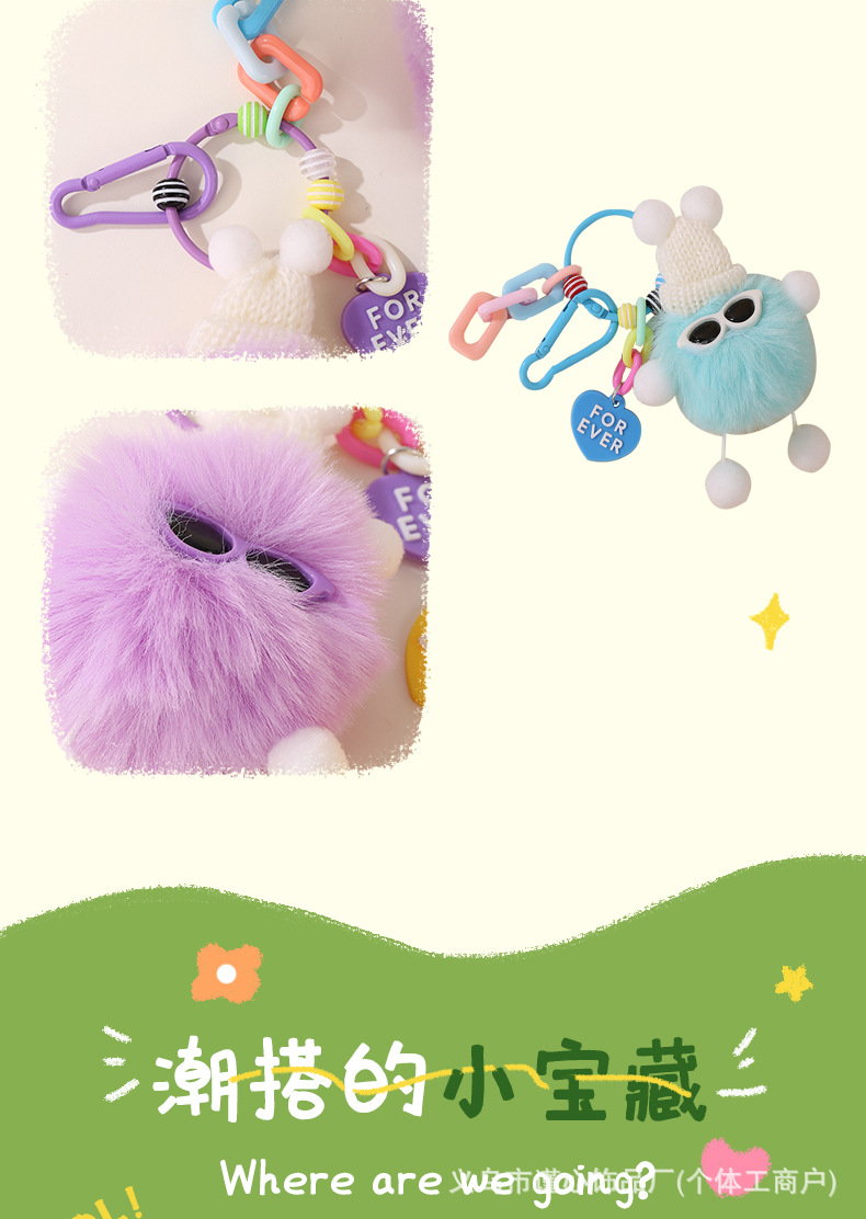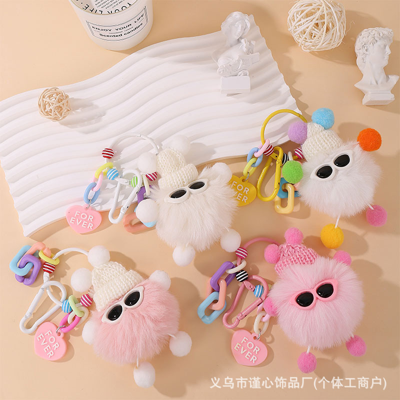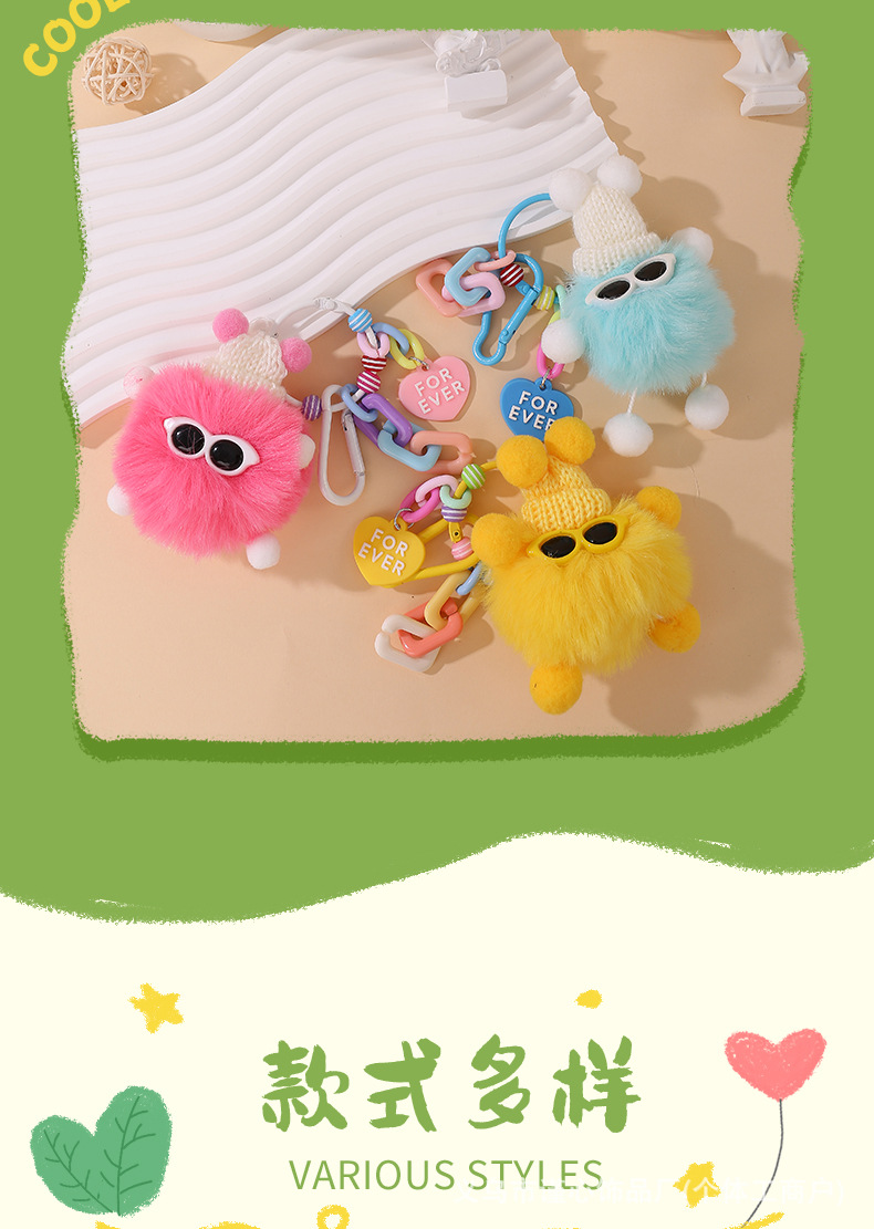 亚马逊爆款可爱精灵彩扣小煤球挂饰獭兔毛书包汽车钥匙扣毛绒挂件