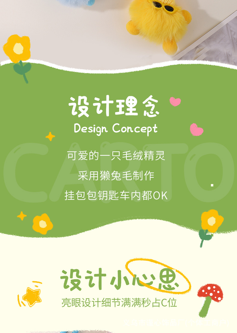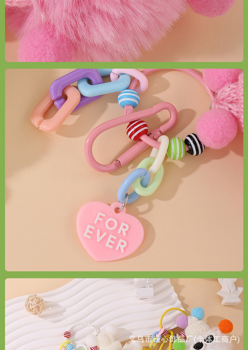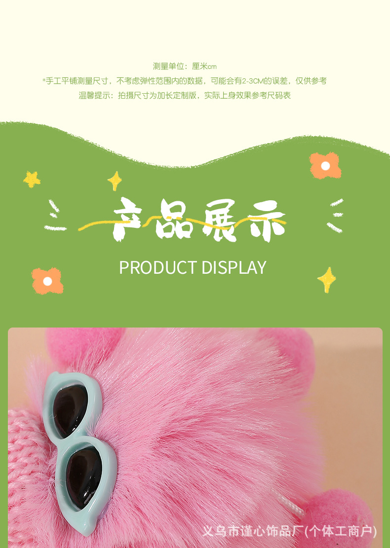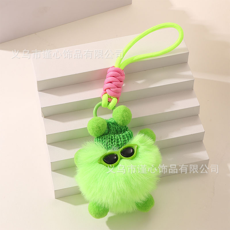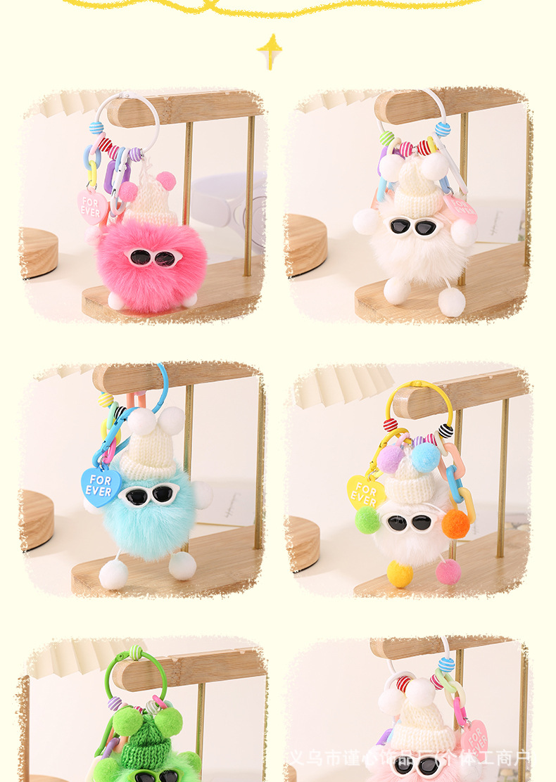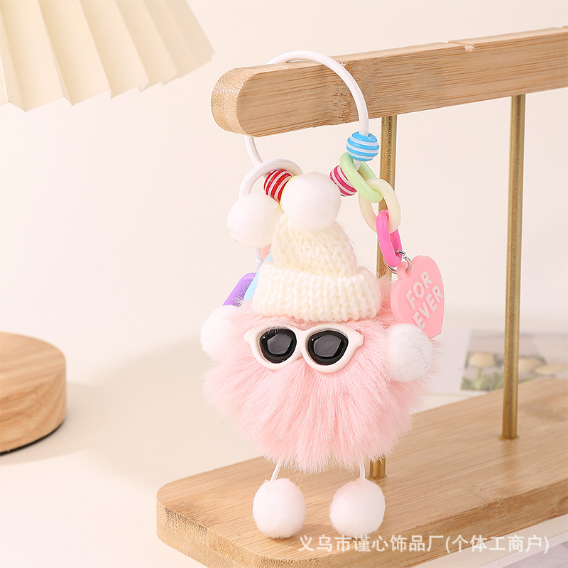 亚马逊爆款可爱精灵彩扣小煤球挂饰獭兔毛书包汽车钥匙扣毛绒挂件