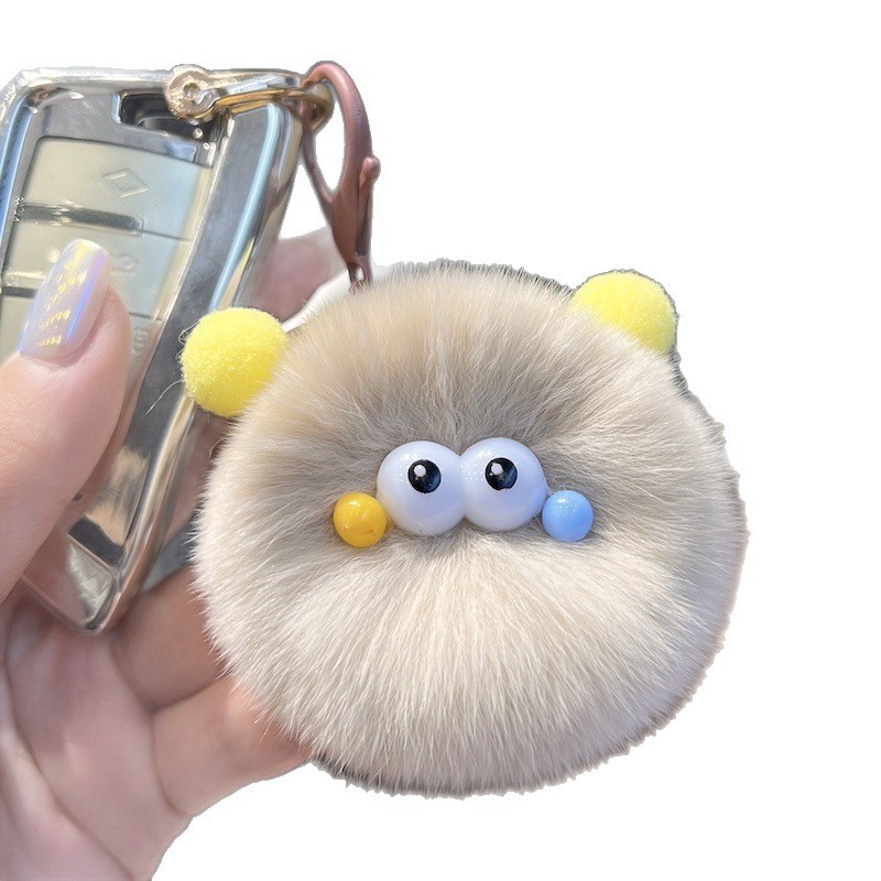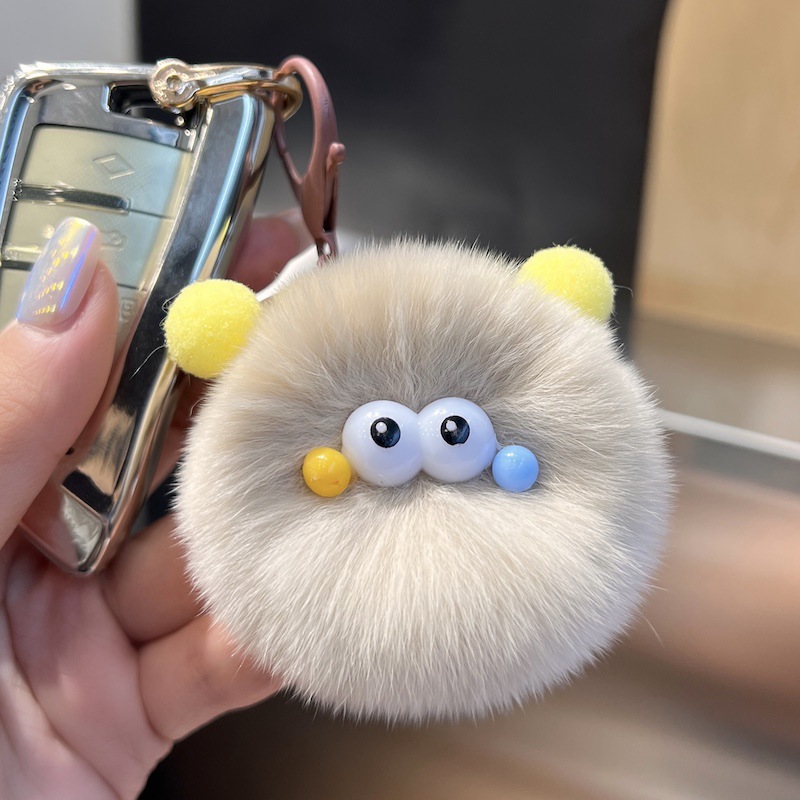 可爱仿獭兔毛小煤球毛绒书包包挂饰汽车钥匙扣挂件公仔玩偶小礼物