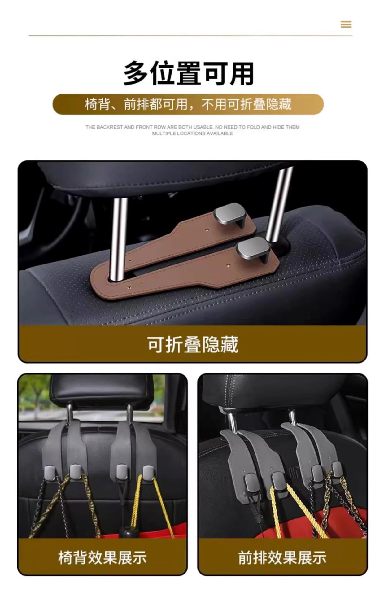 车载后座置物小挂钩汽车座椅背车内多功能隐藏翻毛皮收纳隐藏式