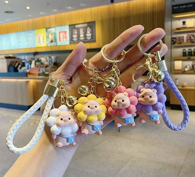 向阳花猪钥匙扣精致女汽车钥匙挂件可爱男女生书包挂饰钥匙链