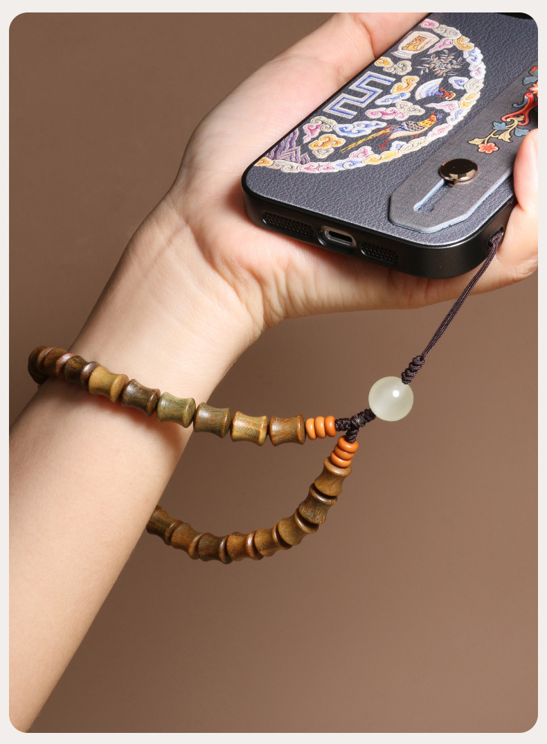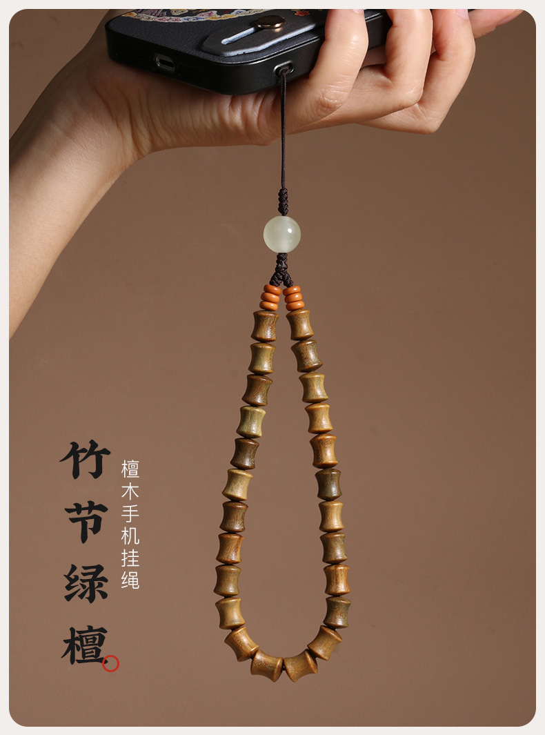 天然绿檀木挂绳汽车钥匙扣平安防摔手机链个性创意防丢钥匙扣男女