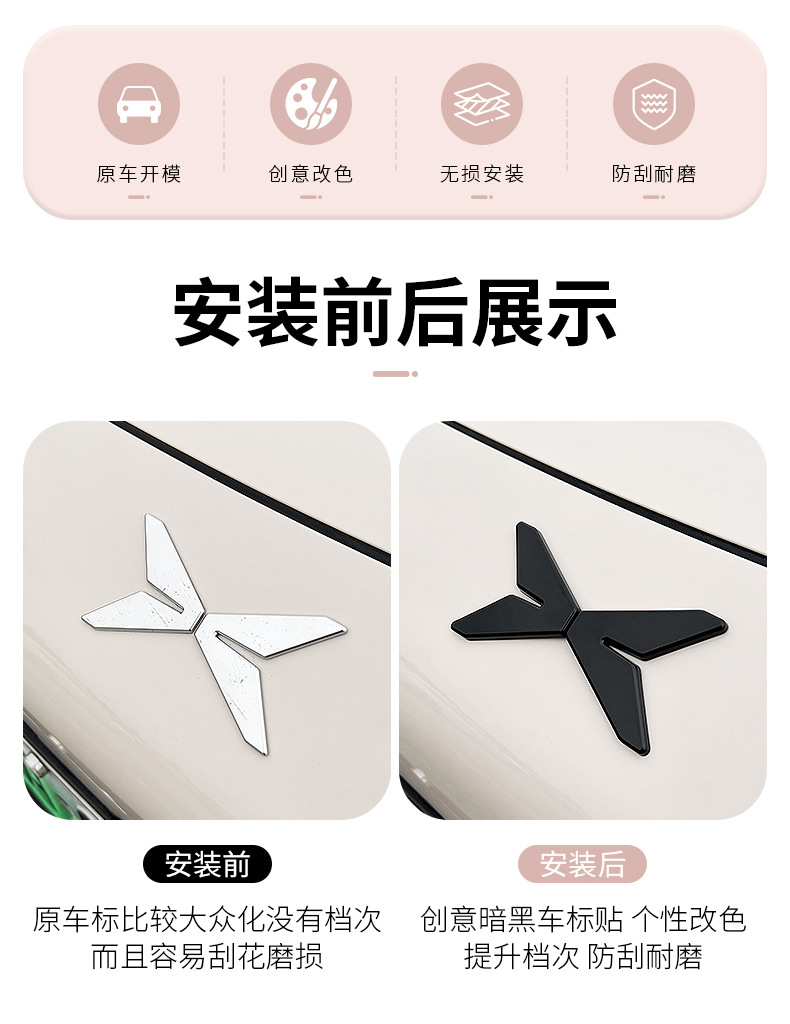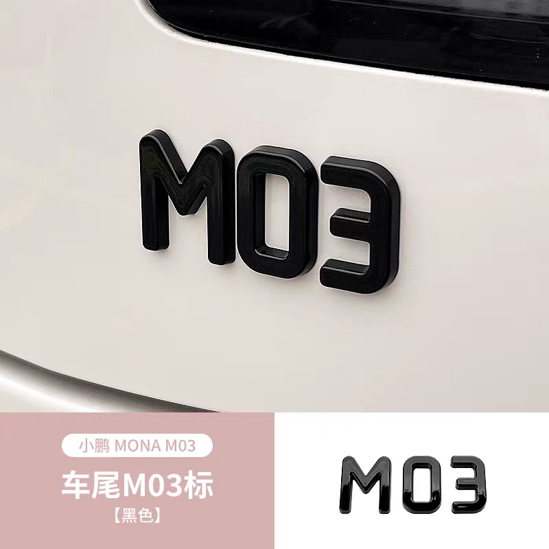 适用于小鹏MONA M03覆盖黑化车标黑标亮黑车标个性前后标改装配件