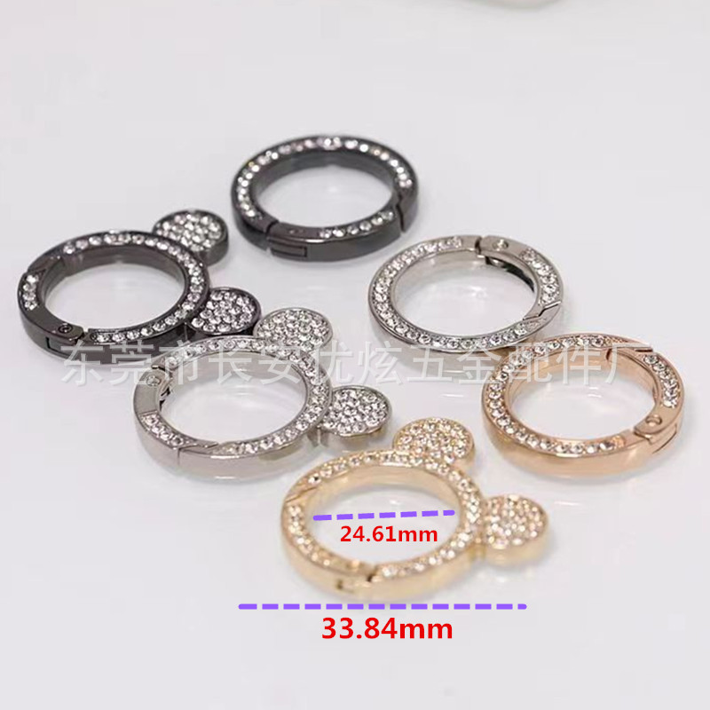 时尚带钻汽车钥匙扣圆圈钥匙链女神款带钻米奇弹簧扣镶钻弹簧圈