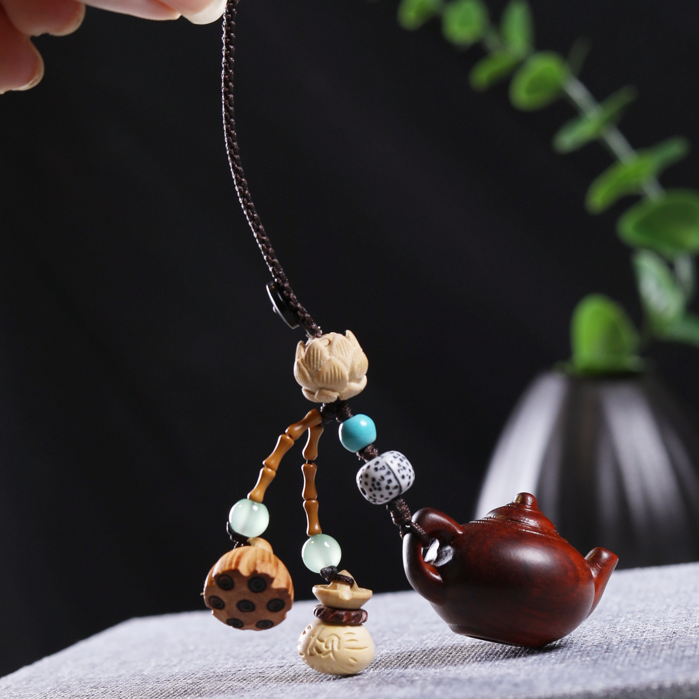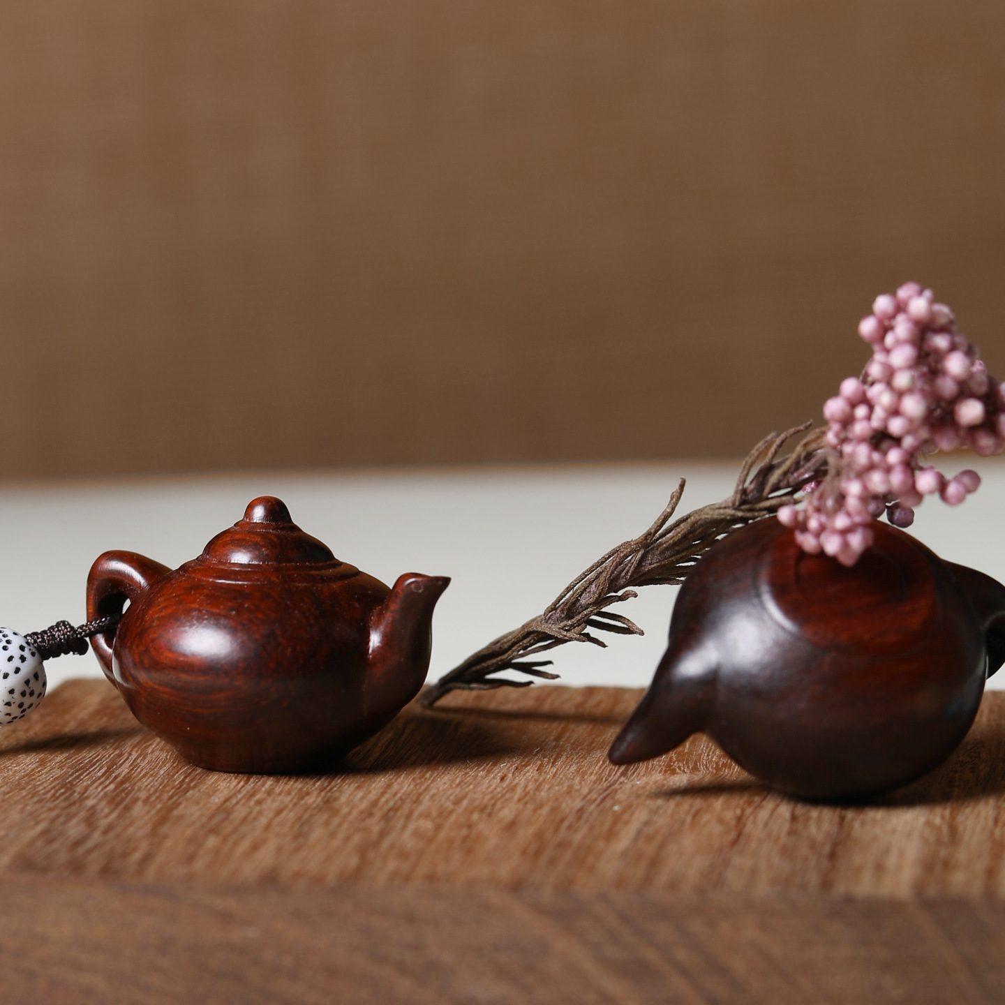 紫檀木把把壶汽车钥匙扣挂件精致小茶壶情侣手机链包包吊坠挂饰