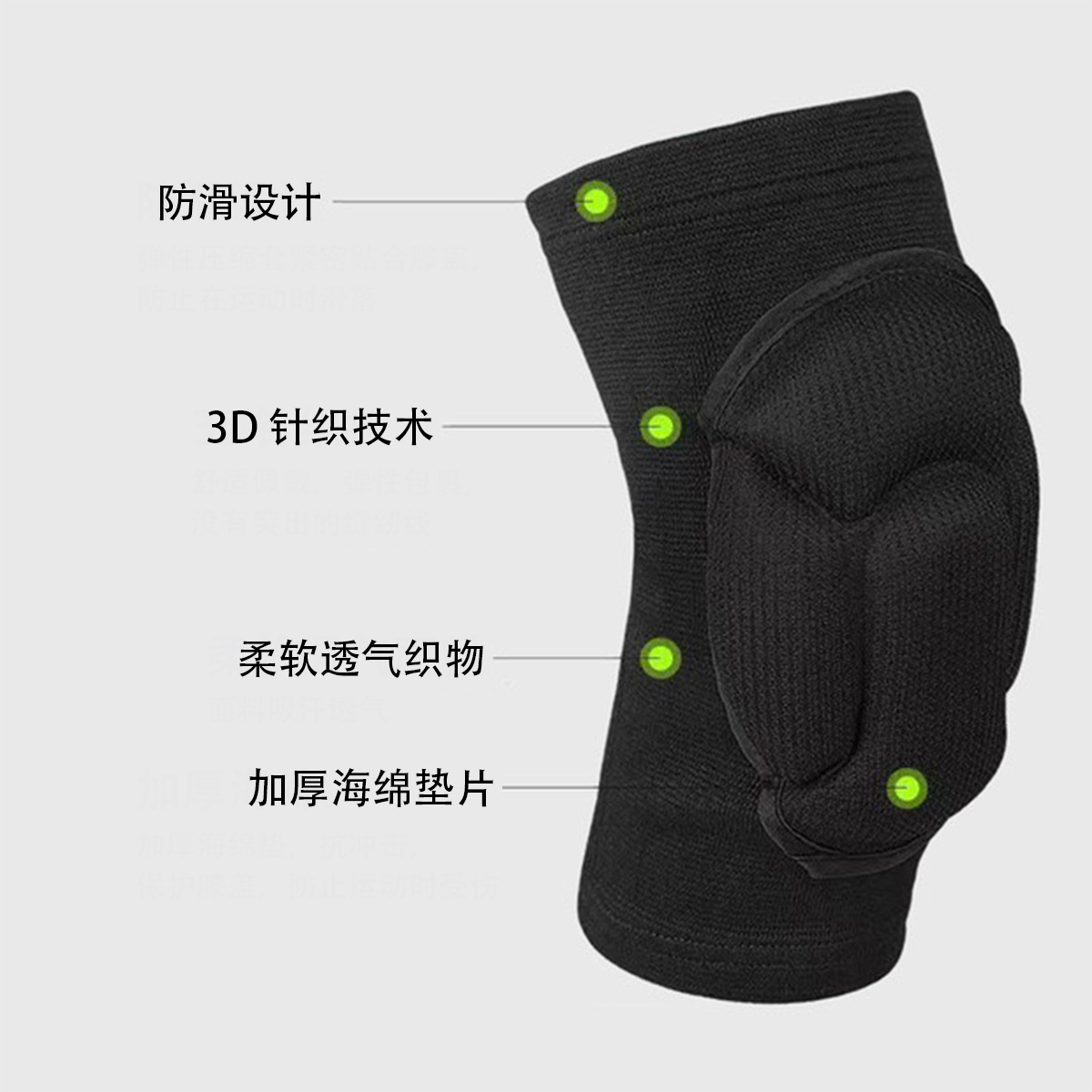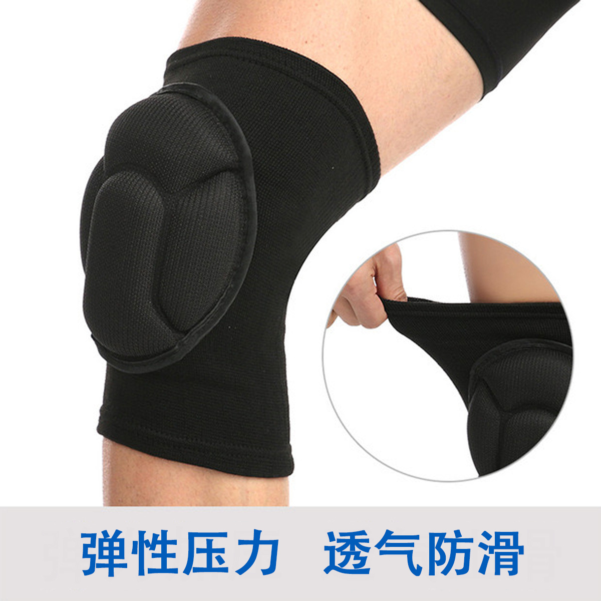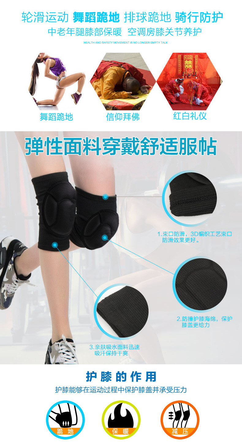 一对装加厚高密度海绵防摔防撞护膝 黑色运动护膝 弹性面料护腿