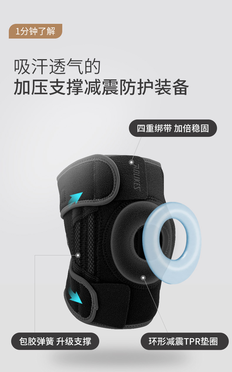 AOLIKES运动护膝登山骑行弹簧支撑男女深蹲半月板膝盖篮球护腿防