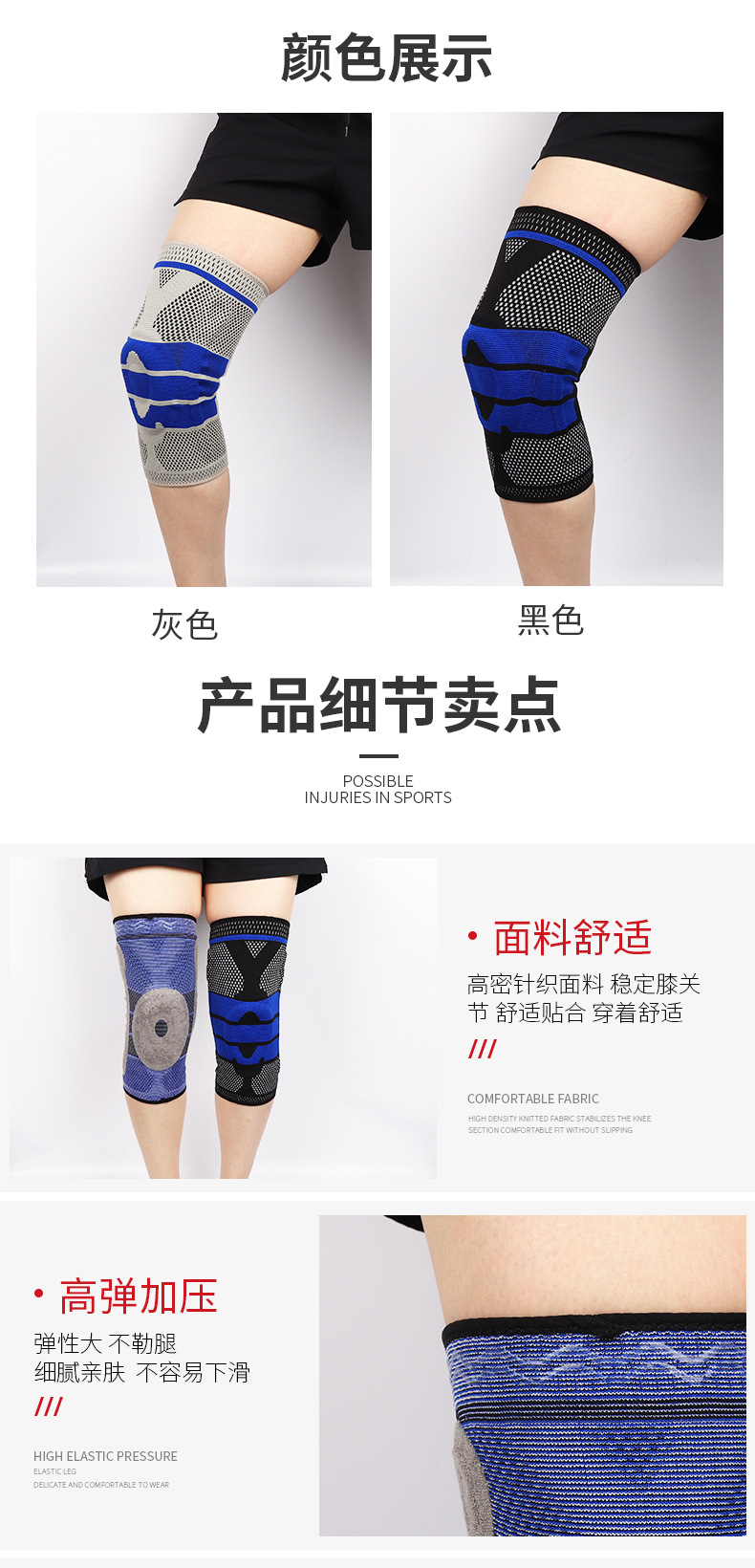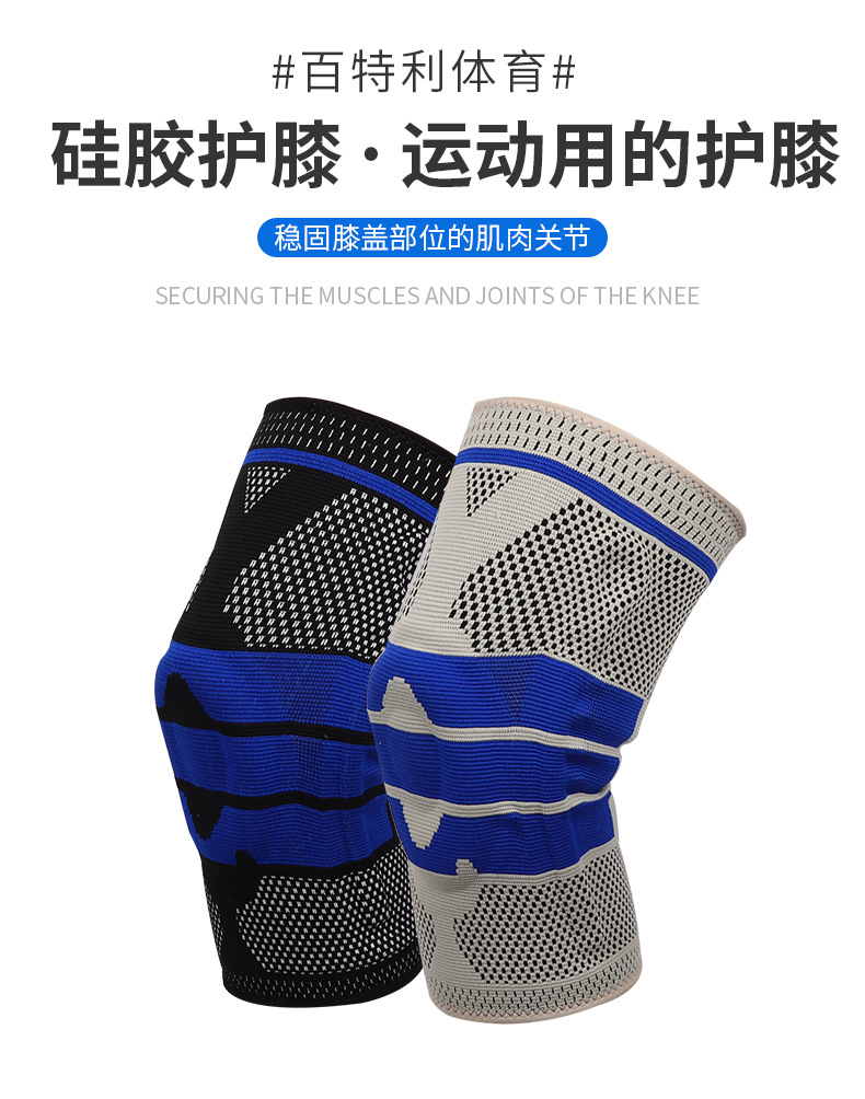 保暖护膝健身跑步骑行髌骨弹簧硅运动胶护膝针织运动硅胶护膝