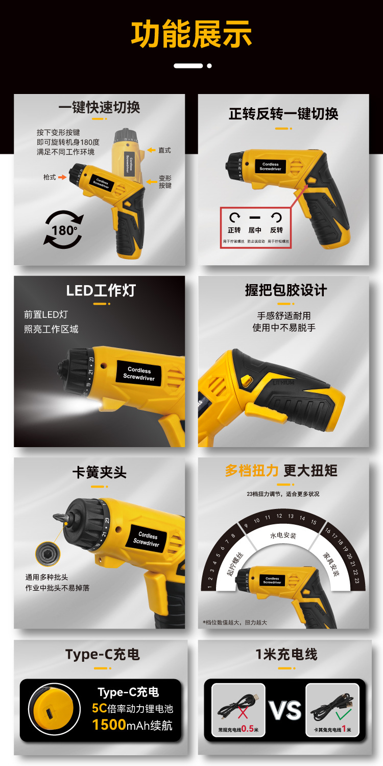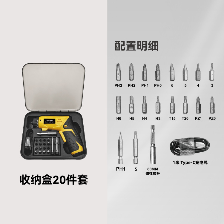 2024新款锂电螺丝刀 多功能磨砂收纳盒家装DIY螺丝批扭矩调节