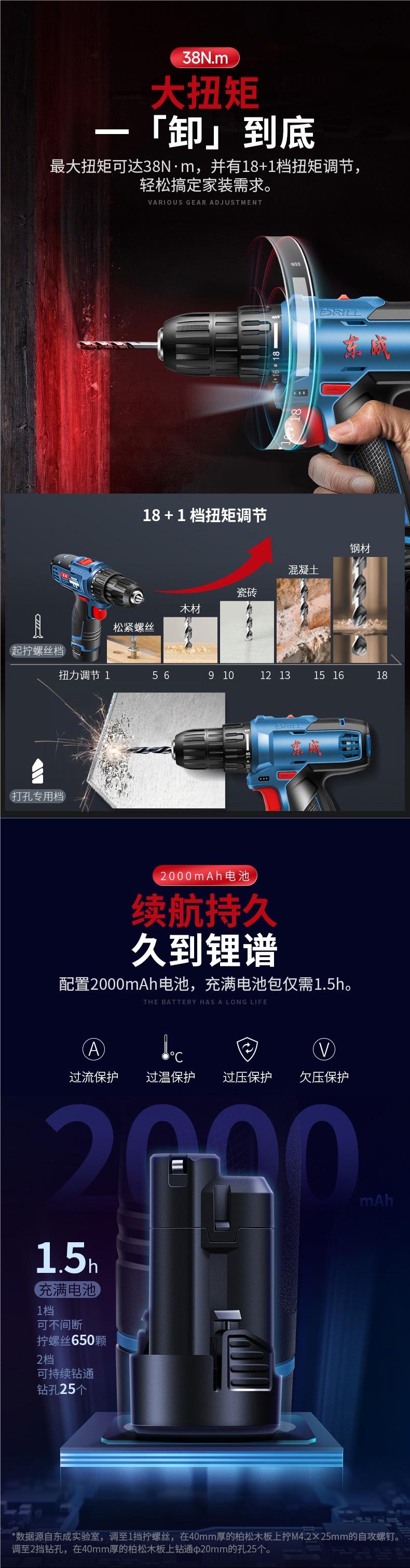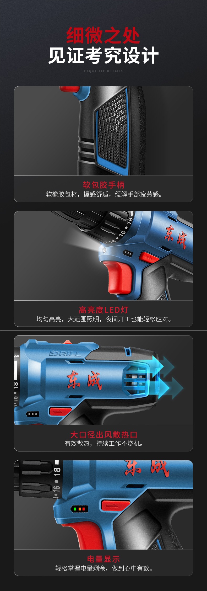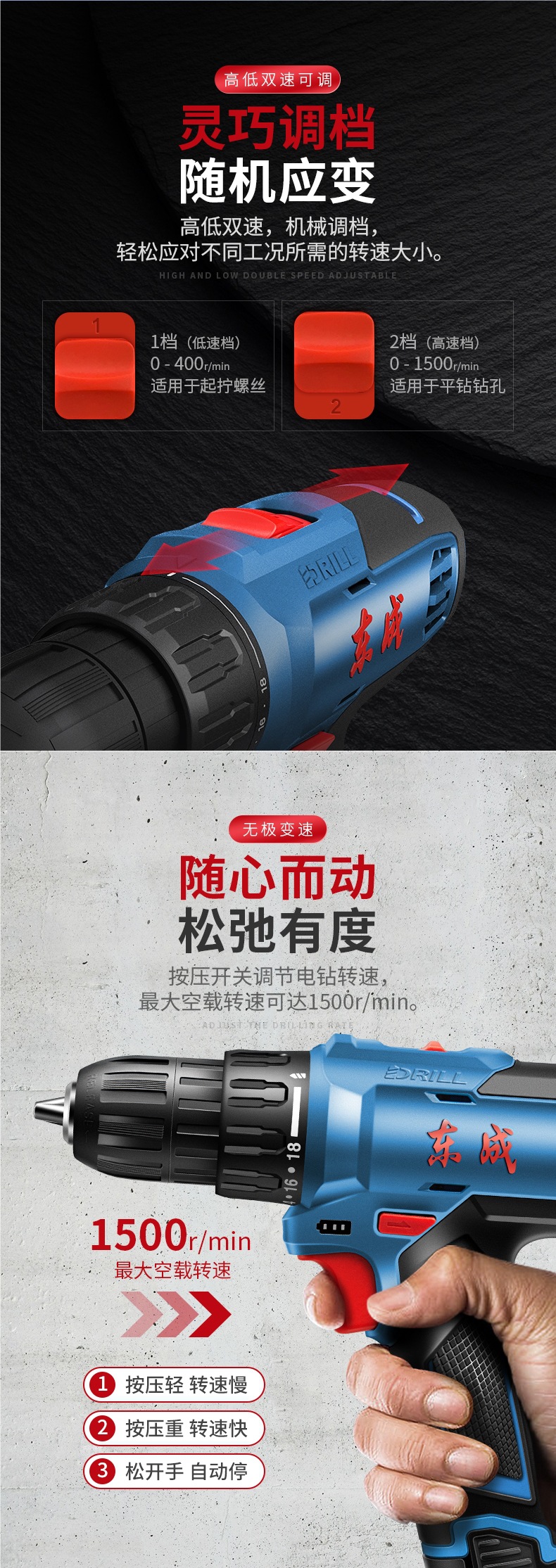 东成电钻电动螺丝刀家用冲击钻电转手枪钻东城无刷锂电充电手电钻