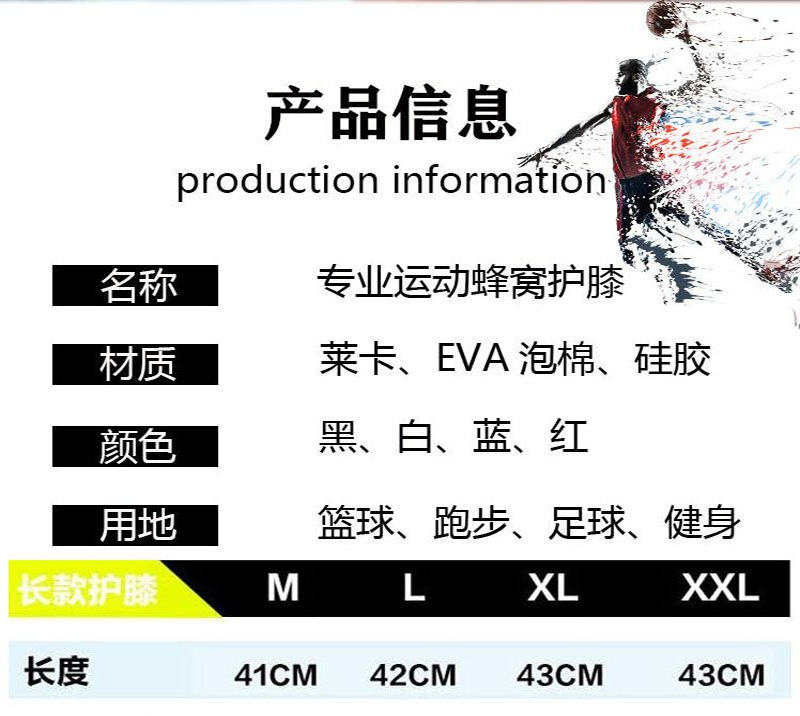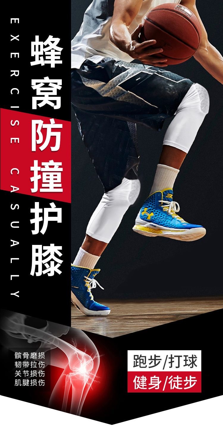 运动蜂窝防撞护膝篮球足球莱卡透气长款护腿户外跑步骑行登山护具