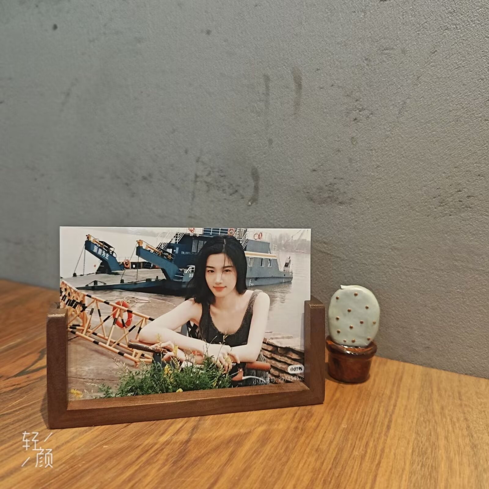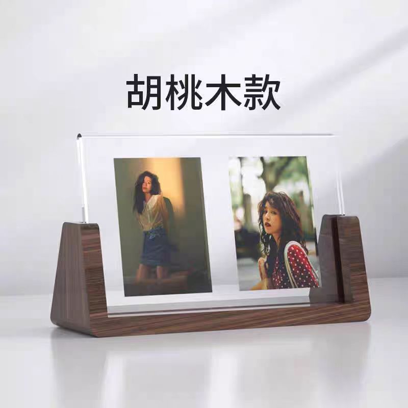 源头工厂 U型相框 榉木 胡桃木 桌面摆件 亚克力画框 实木底座