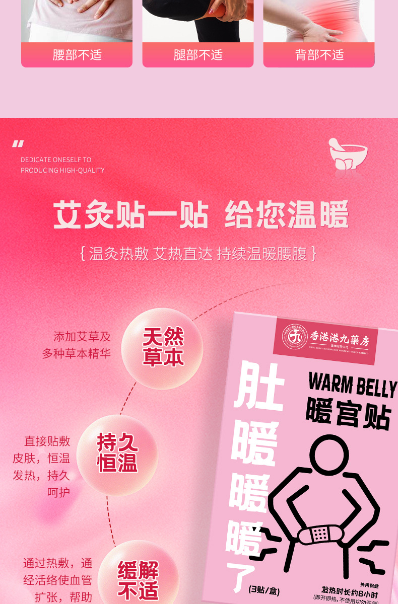 艾草宫暖贴经期暖肚贴肚子贴膝盖暖颈贴护颈热敷暖腹艾灸贴草本