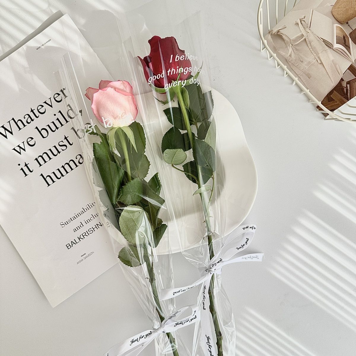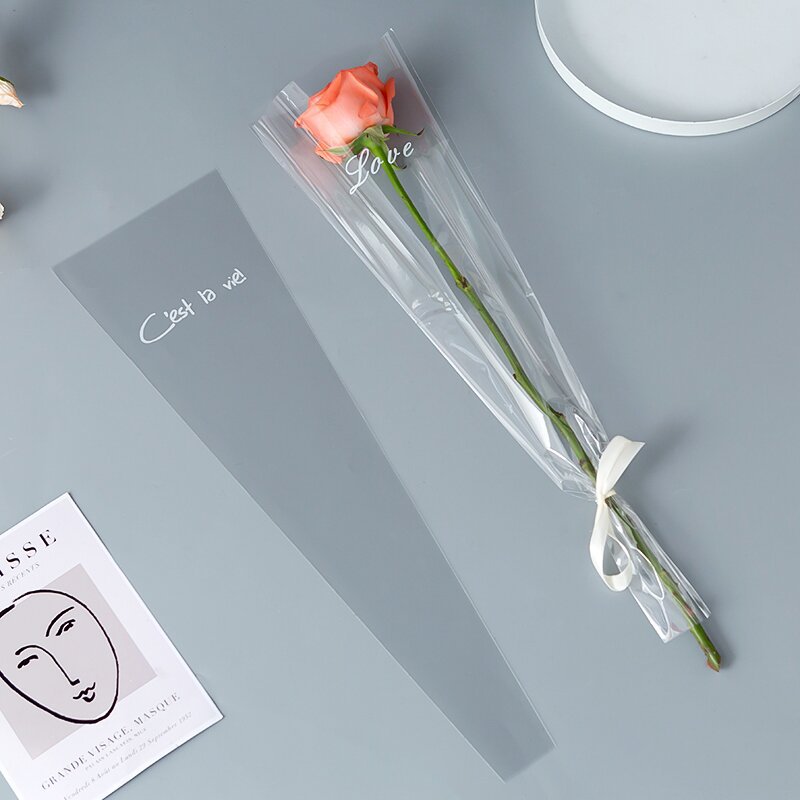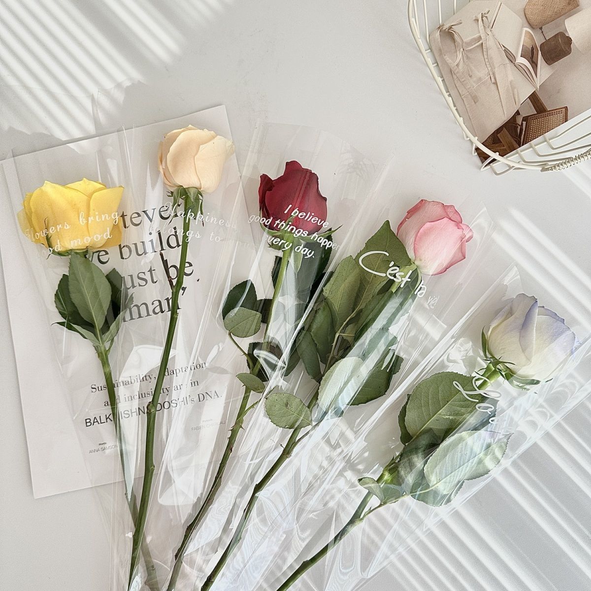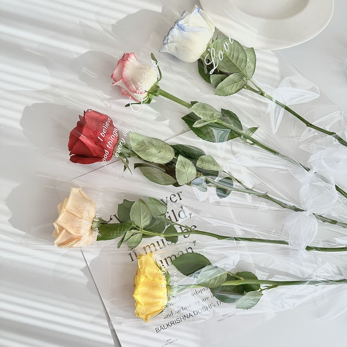 现货情人节鲜花包装单支袋简约防水玫瑰花包装opp英文透明包装袋