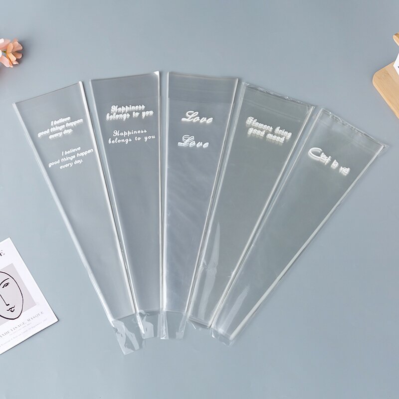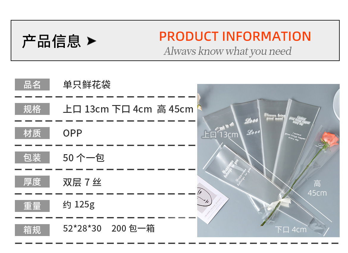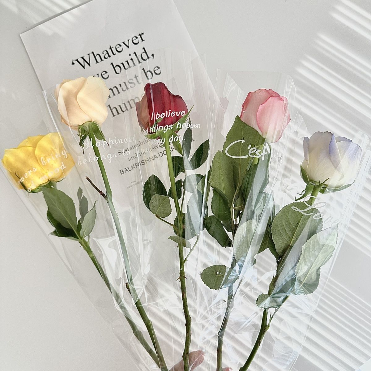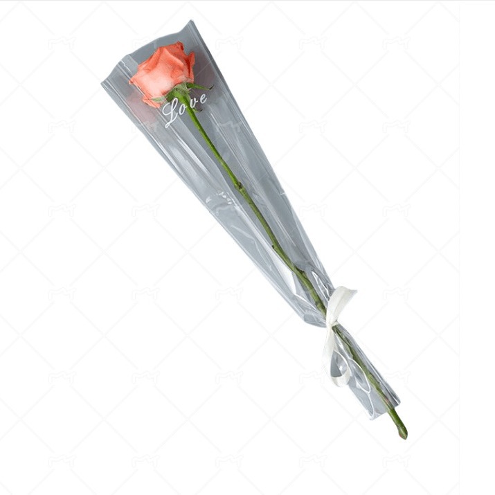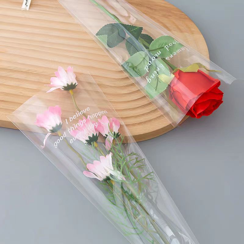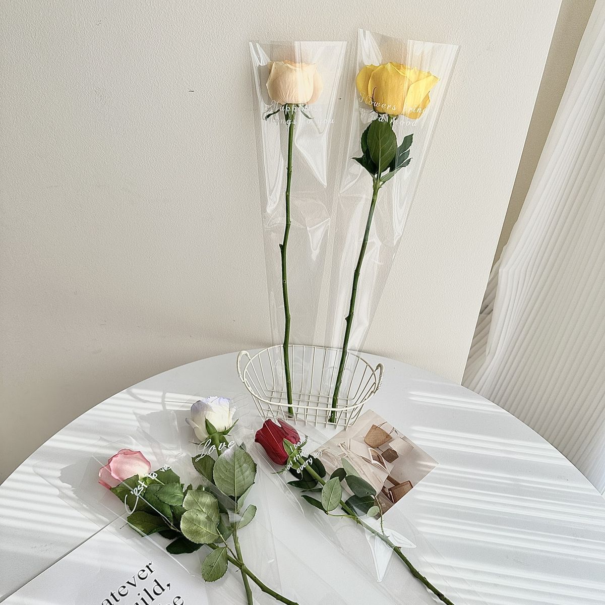 现货情人节鲜花包装单支袋简约防水玫瑰花包装opp英文透明包装袋