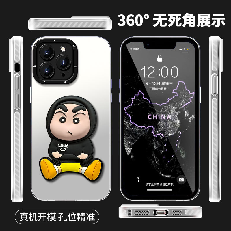 蜡笔小新适用iphone16promax苹果手机壳15支架14可爱13元气11小众