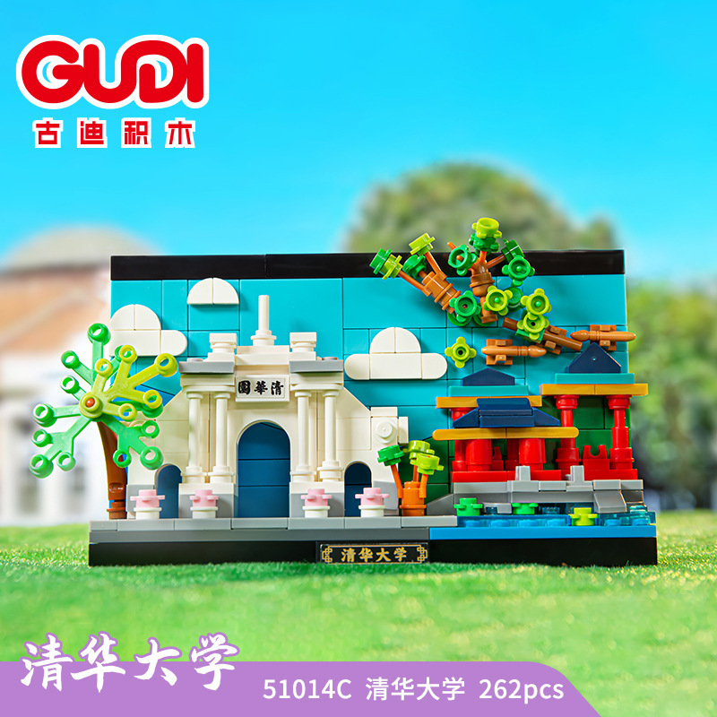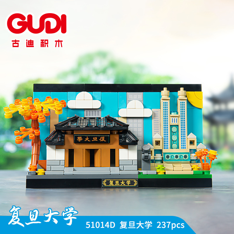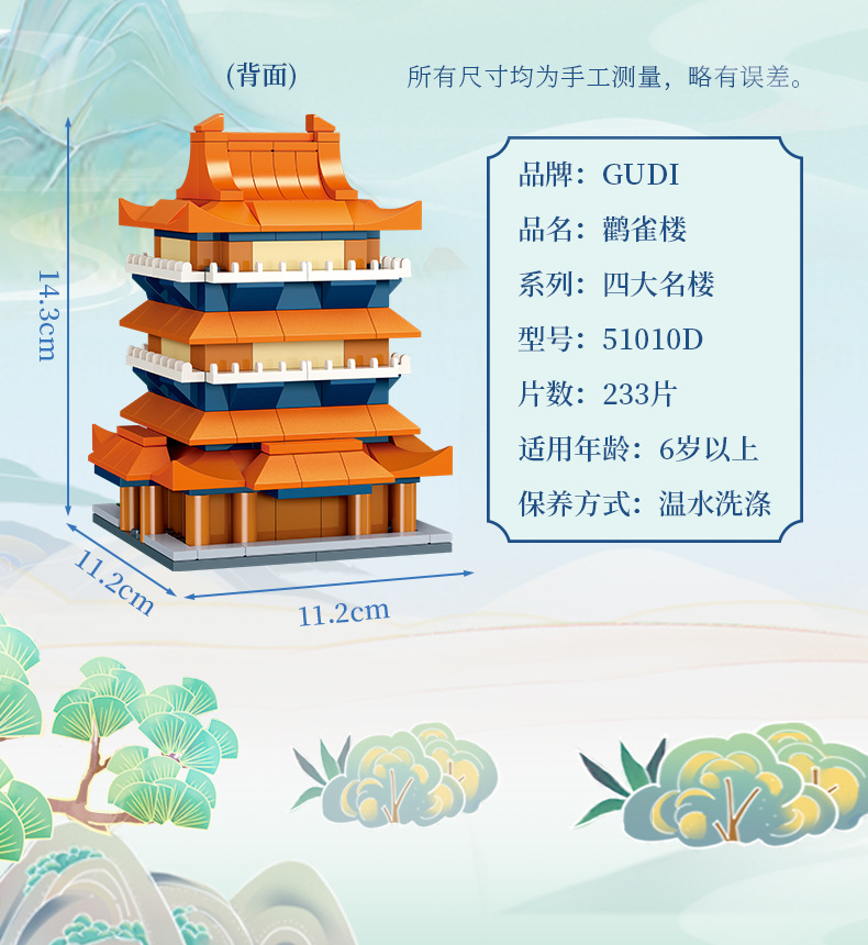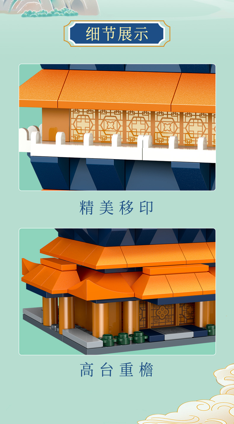 古迪积木兼容乐高街景玩具儿童益智拼装中国风古建筑模型创意摆件